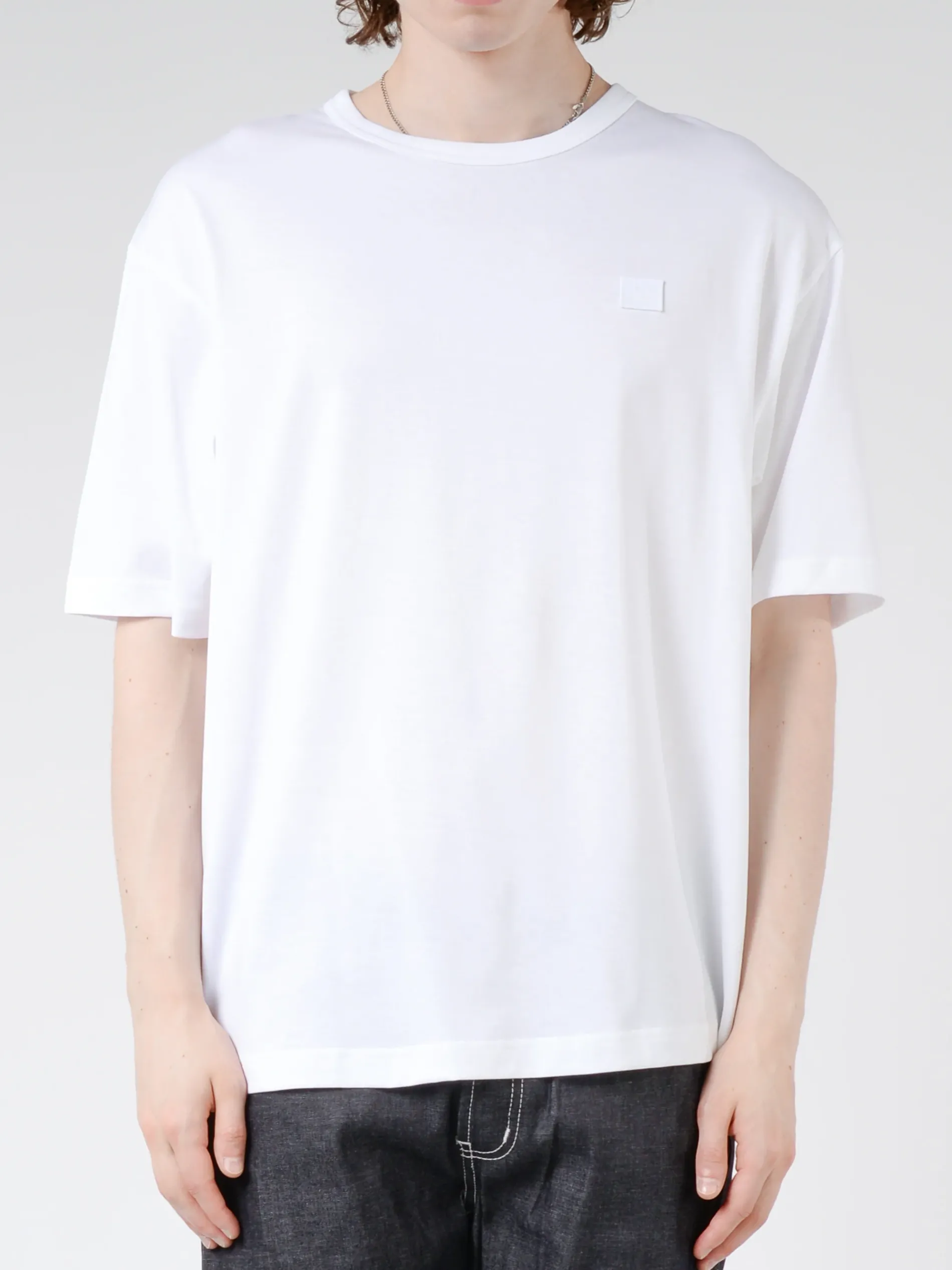 Acne Studios organic cotton t-shirt features an embroidered face patch on the chest.