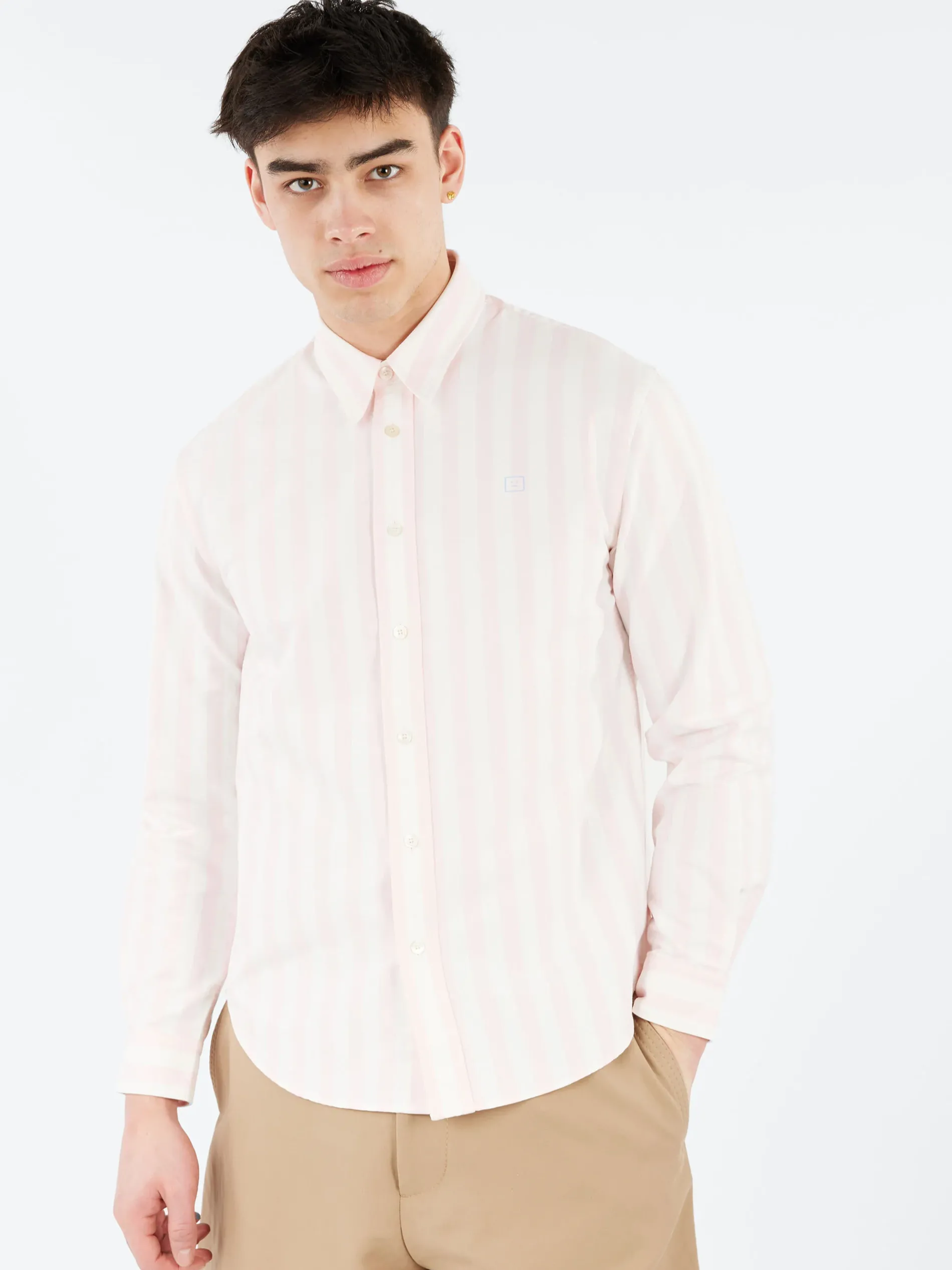 Striped Shirt from Acne Studios made from high-quality cotton, it features a classic cut, long sleeves, and a subtle embroidered face logo. The pink and white stripes offer a fresh, refined look, making it versatile for both formal and casual styles.