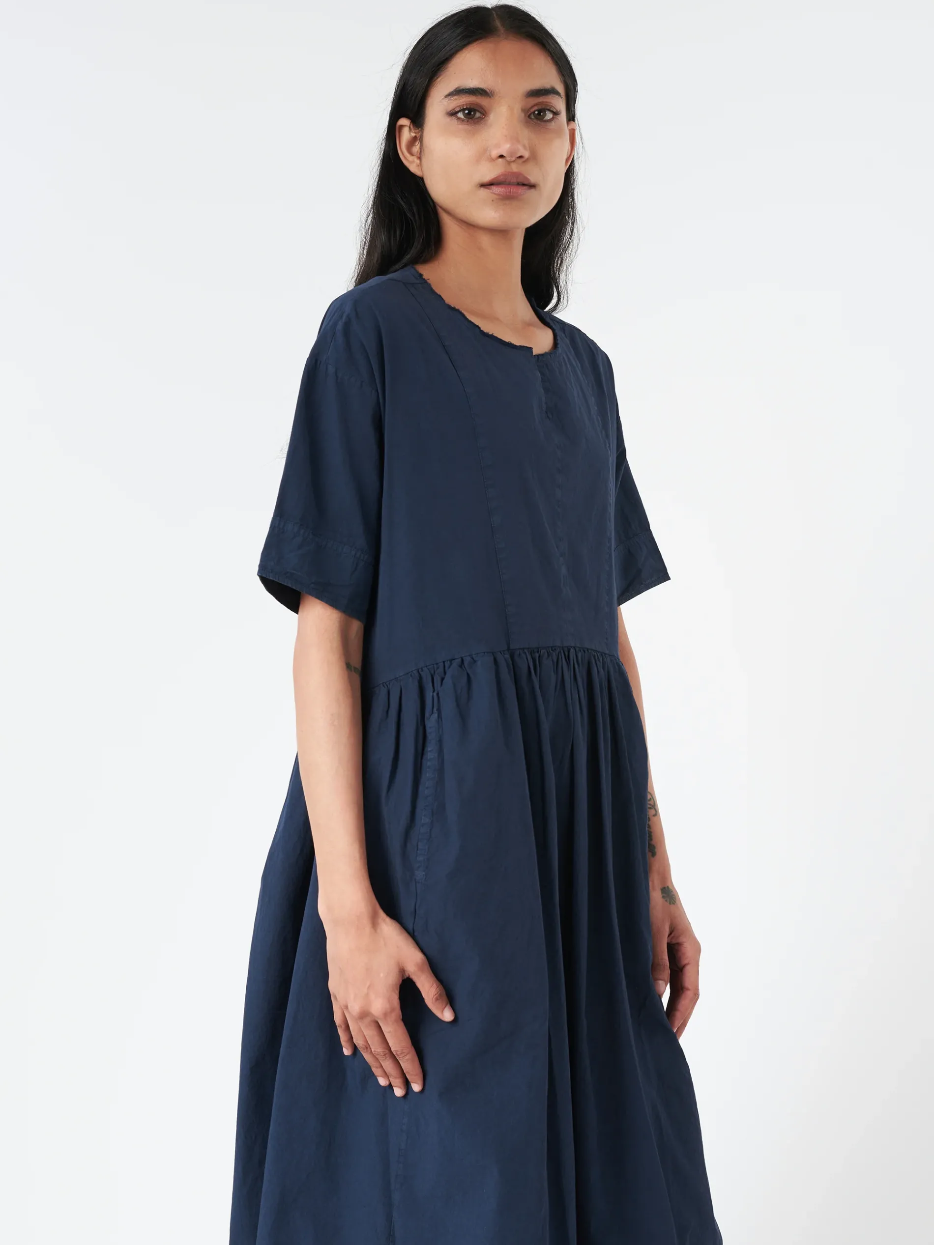 Crafted from cotton poplin, Aequamente’s Pullover Dress offers an easy fit with short sleeves and a notched front.