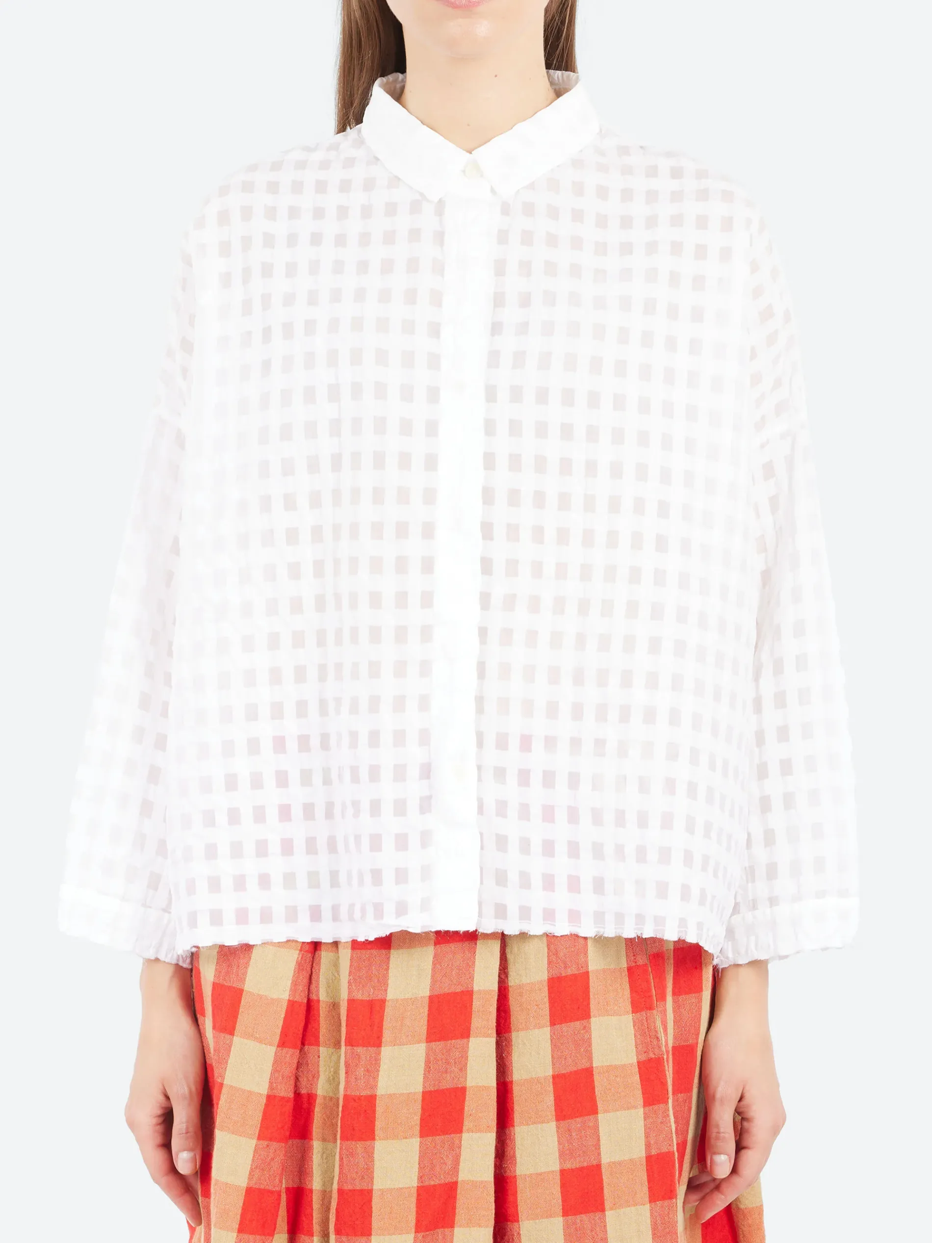 The Aequamente Seersucker Shirt is thoughtfully crafted with a loose-fitting design, offering a relaxed, airy feel that allows for greater freedom of movement and a more laid-back, effortless look. Featuring a classic collar, button-up front, and long sleeves, this shirt is made from self-check cotton and silk seersucker fabric for a timeless, refined look.