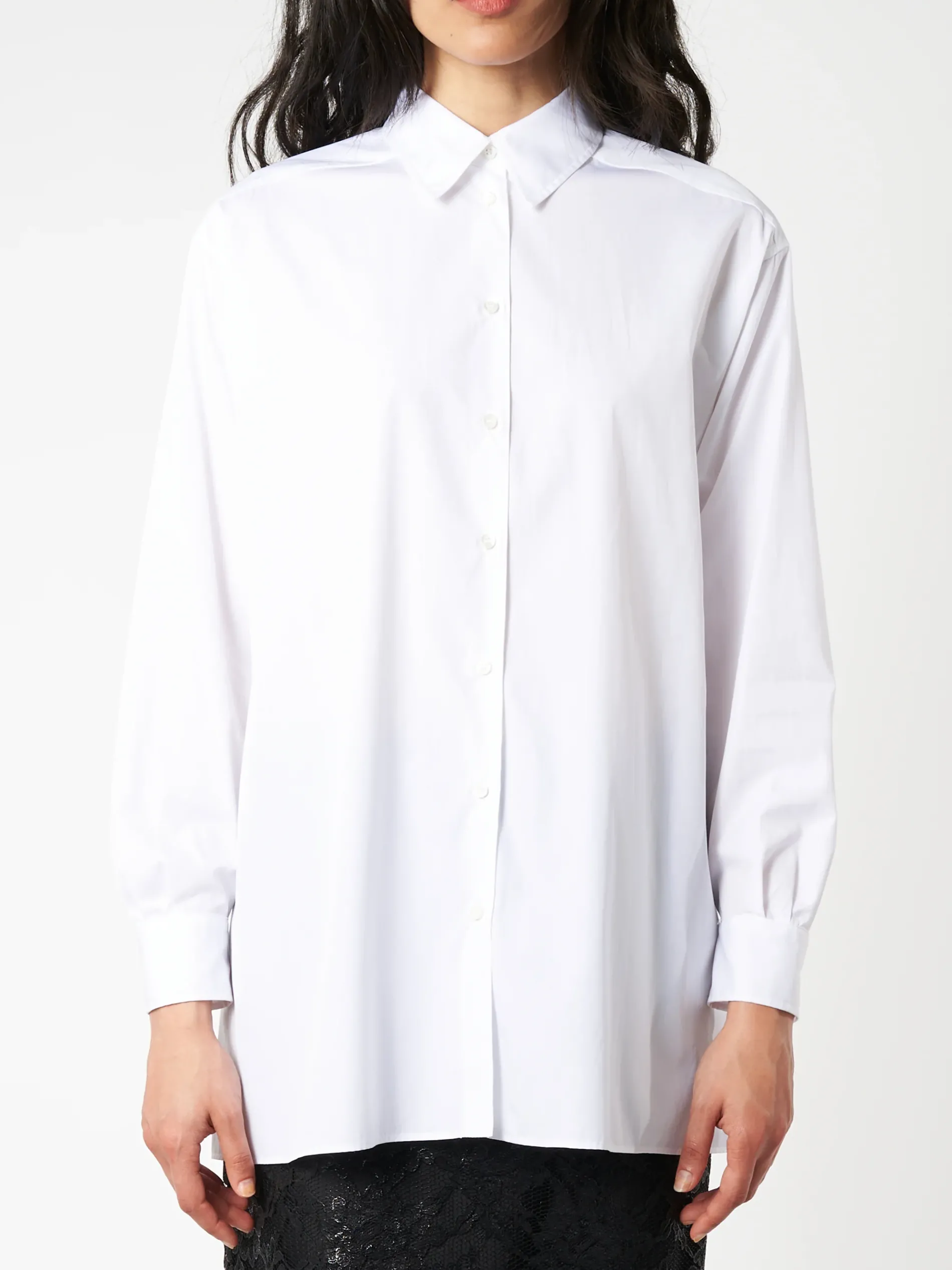 Aspesi cotton poplin shirt is ideal for layering under knits and jackets. Cut for a loose fit.