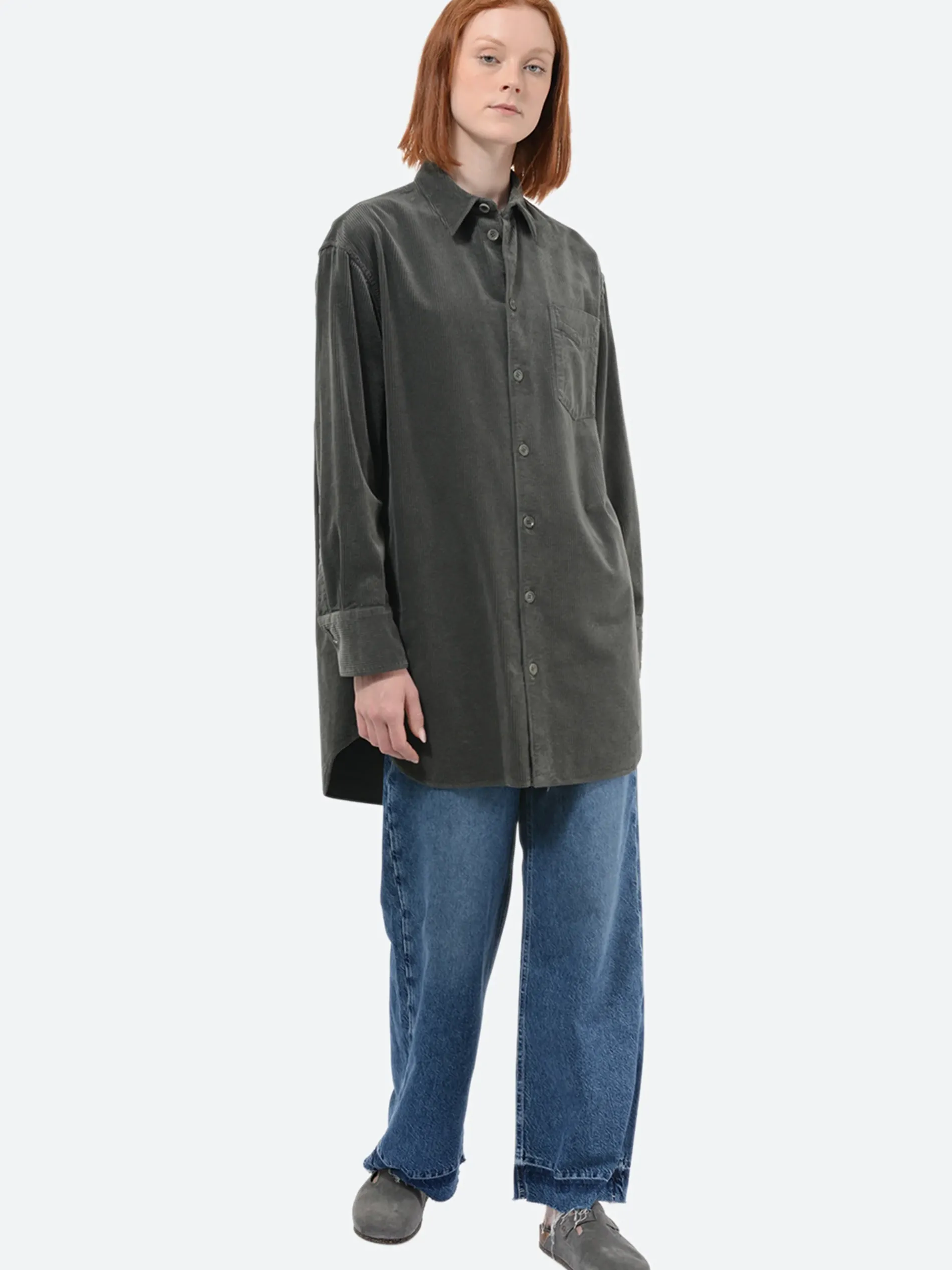 Aspesi’s garment-dyed, 500-line cotton corduroy shirt is a unisex style and cut for a wide fit.