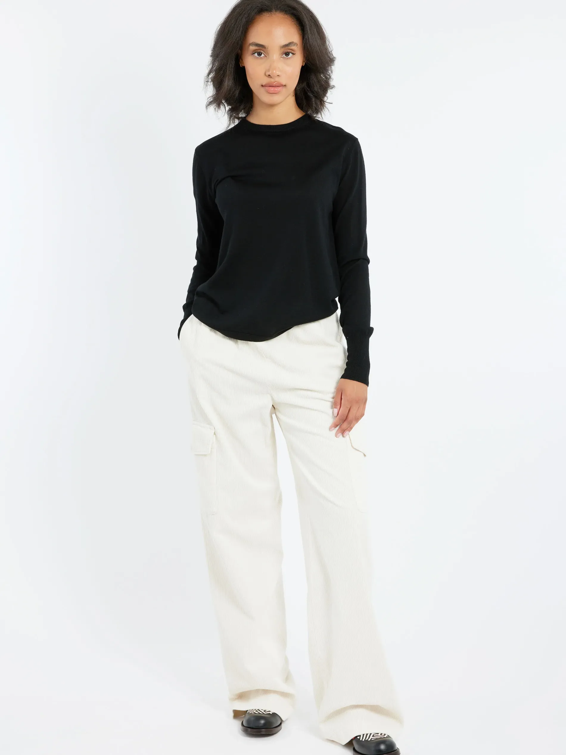 - Ribbed neck, cuffs and hem