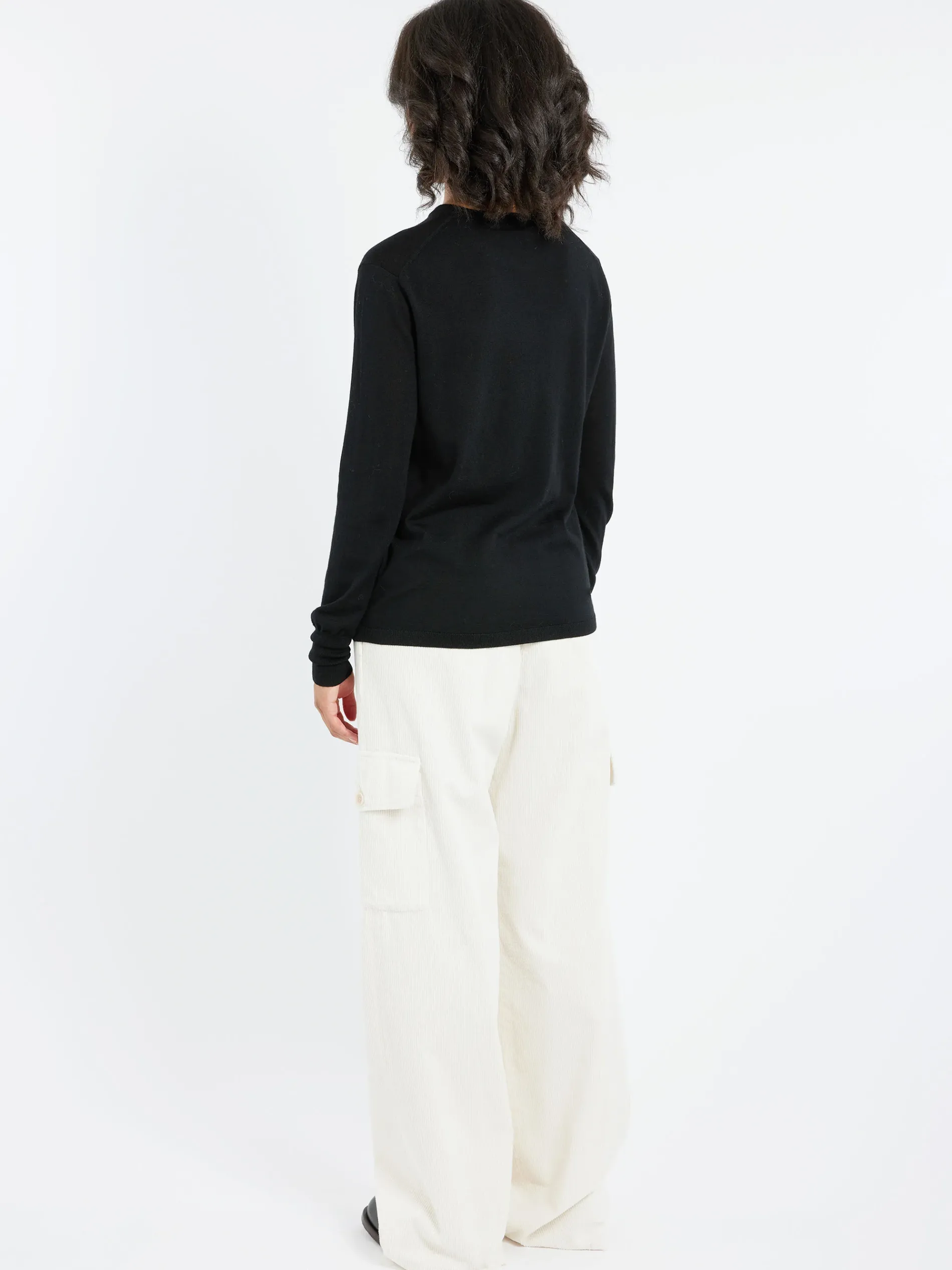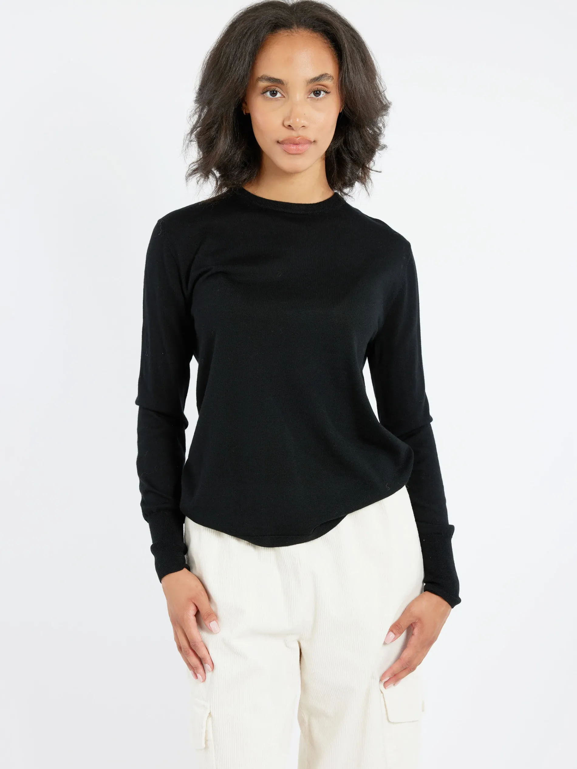 Long-sleeved crew-neck jumper made of pure merino wool.