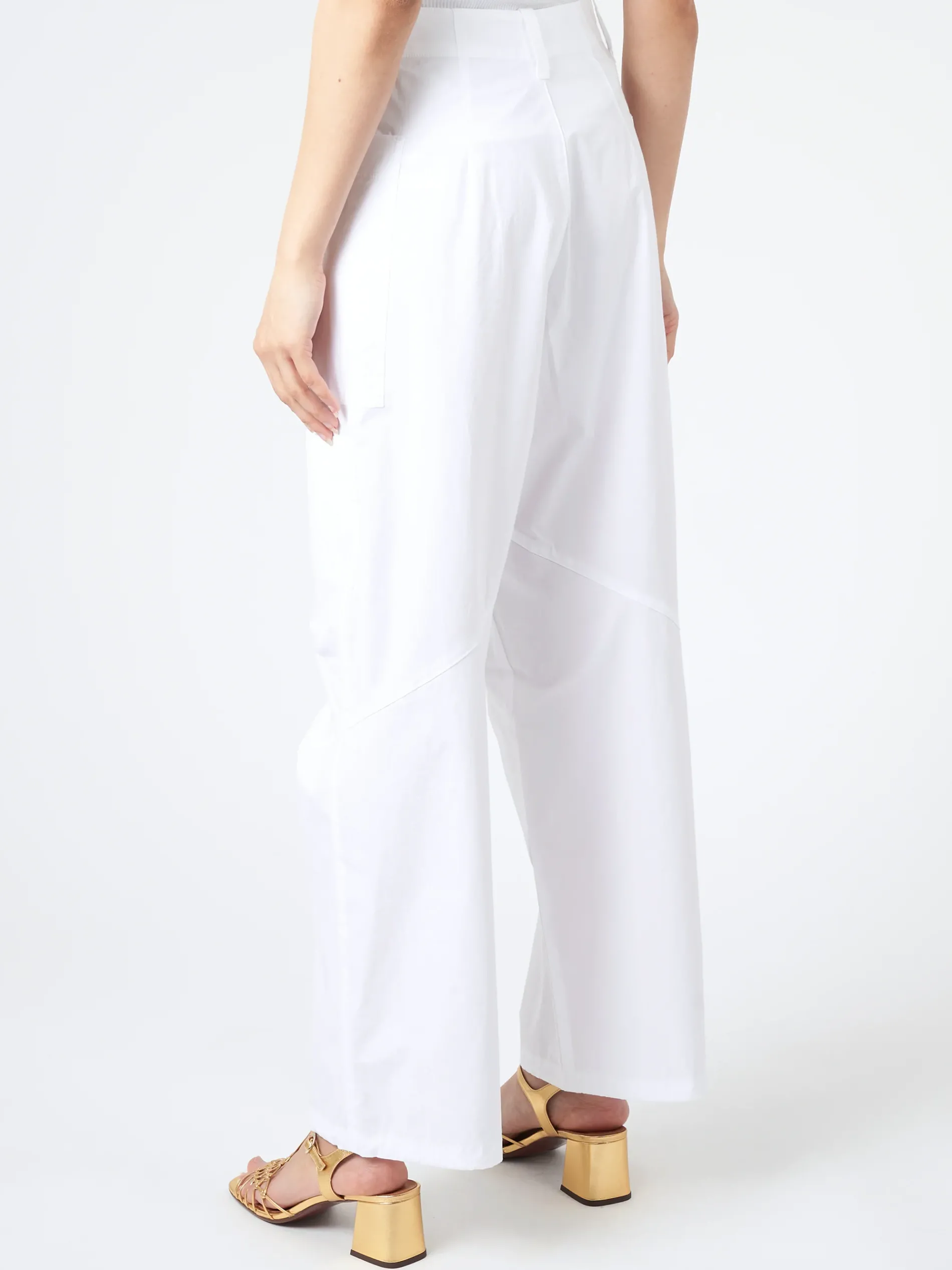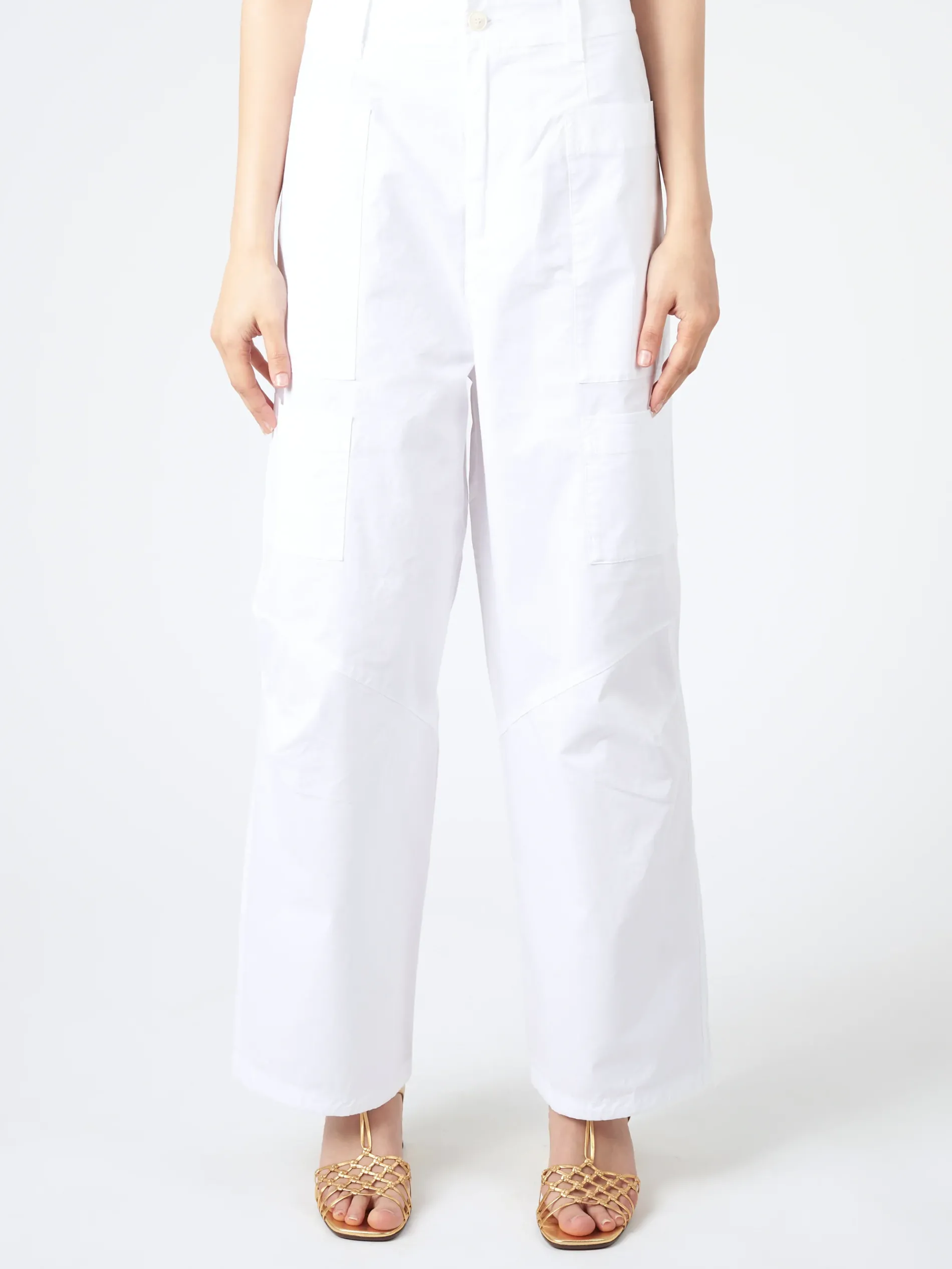 Utilize the side patch pockets and adjustable bottom drawstring on these wide leg pants for functionality. Constructed from parachute stretch cotton poplin.