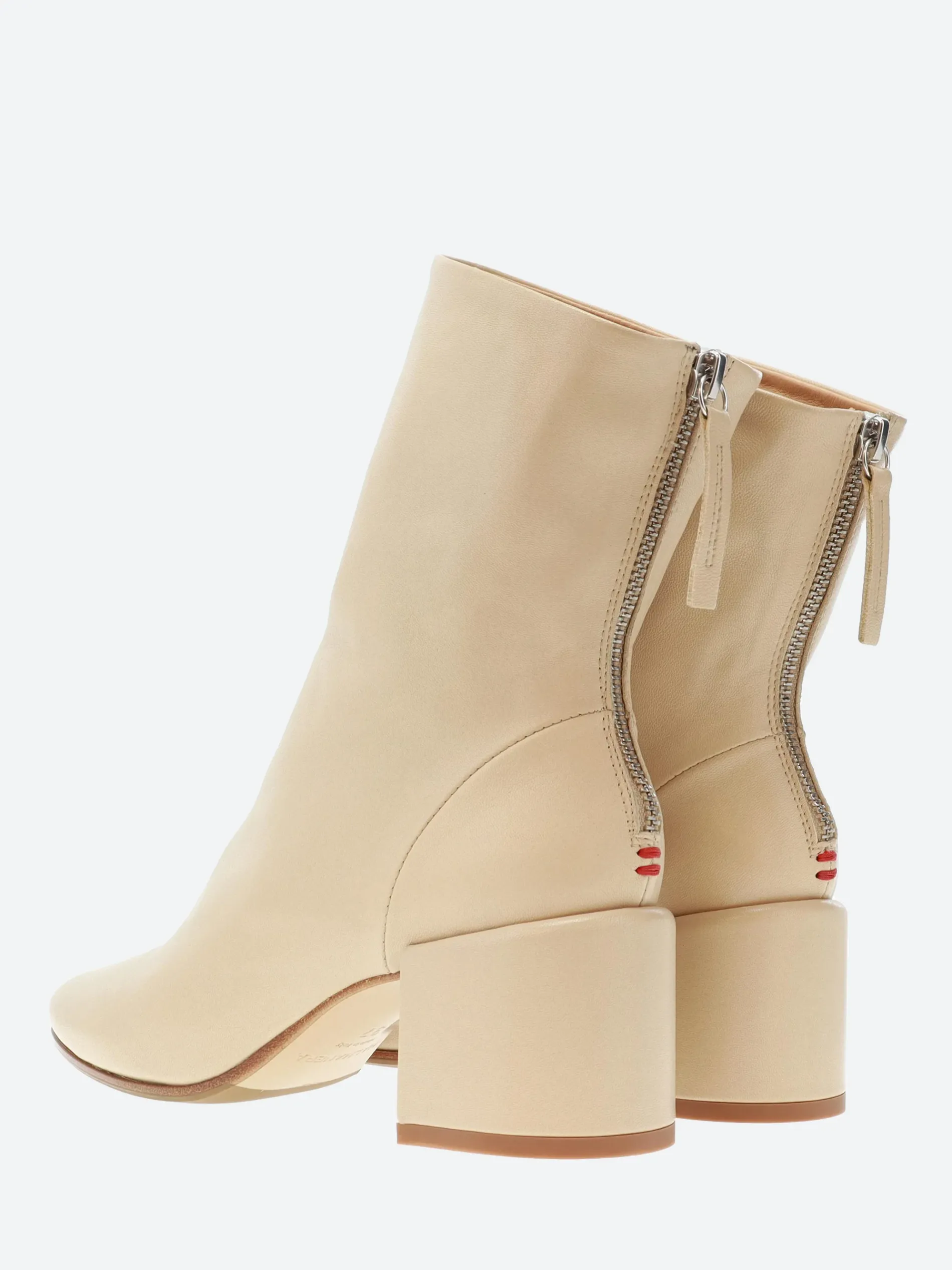 Halmanera heeled boot in leather. A slip-on style for easy on and off. Finished with a high heel.