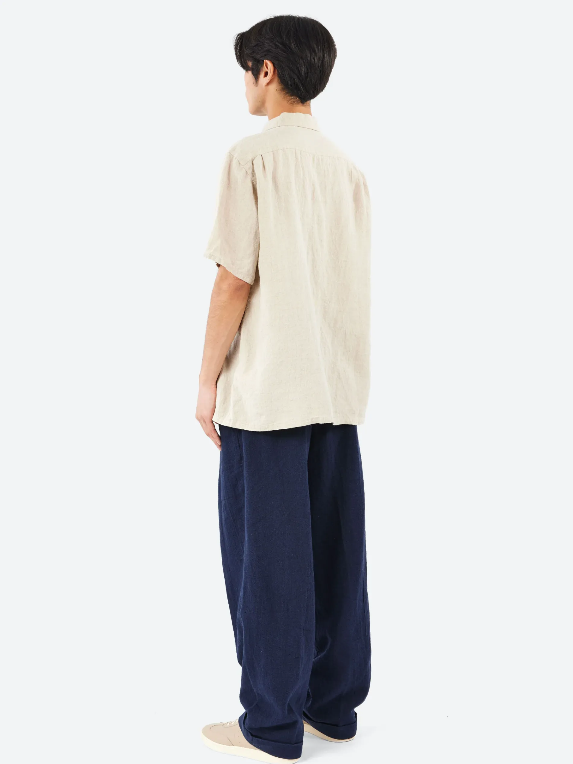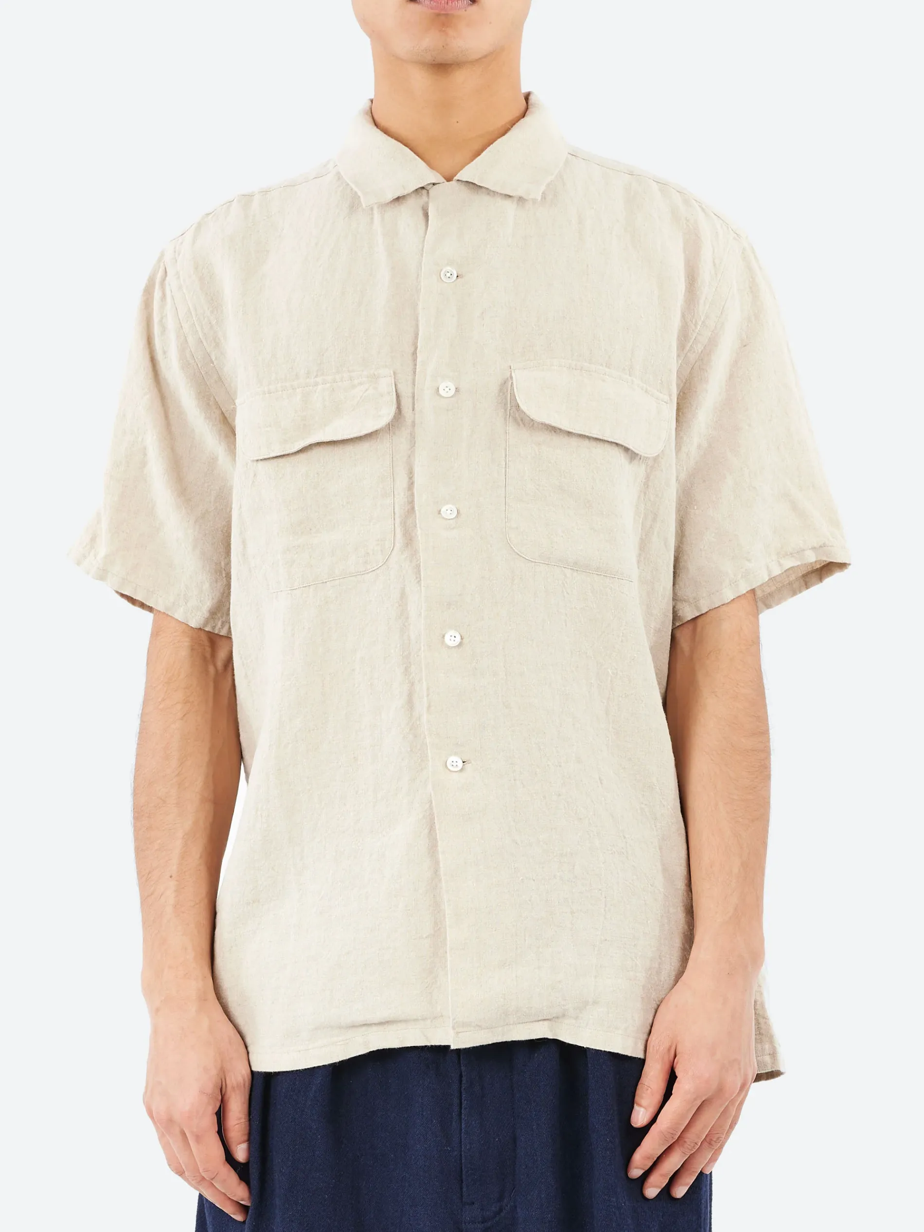 This BEAMS PLUS shirt is designed with a slightly boxy silhouette, reminiscent of American shirts from the ’40s. Made from lightweight linen, this summer essential features a camp-style collar and two chest pockets, adding a signature touch to its vintage-inspired look.