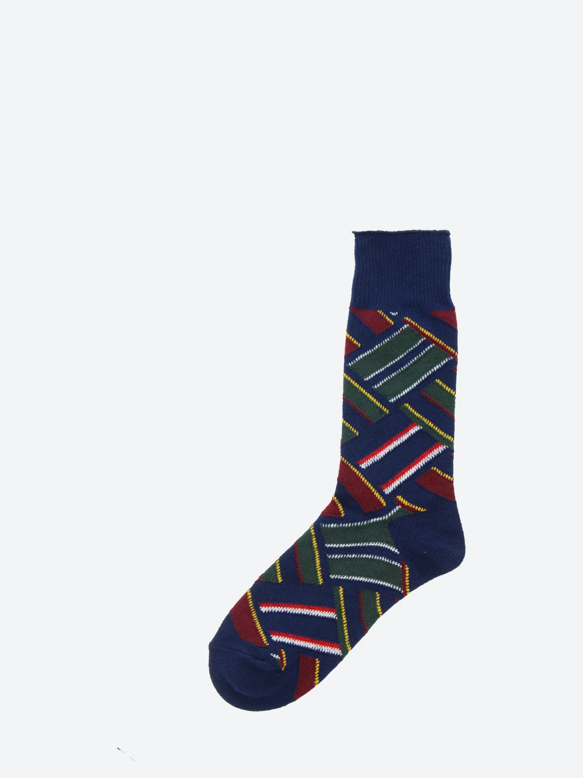 BEAMS PLUS socks featuring a design studded with regimental patterns. The classic yet playful design is perfect for accenting your style.
