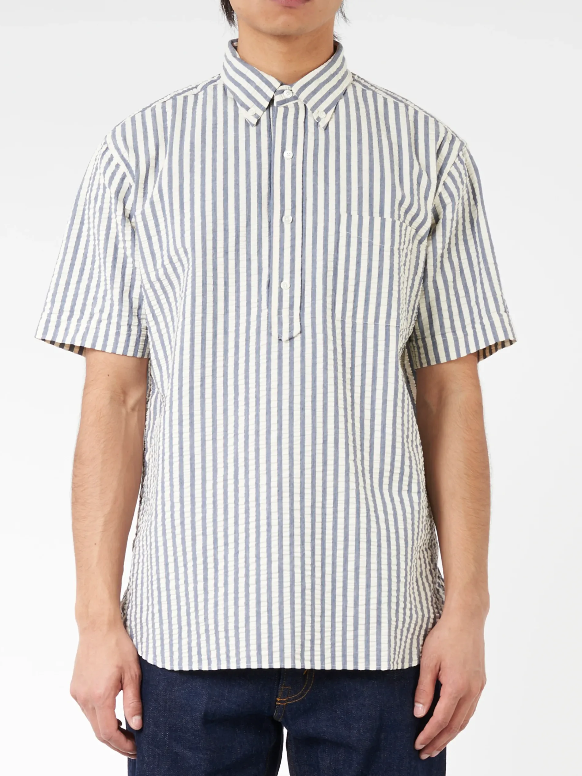 This popover short sleeve button-down style from BEAMS PLUS is constructed from striped seersucker. Embellished with mother-of-pearl buttons for a sophisticated finish.
