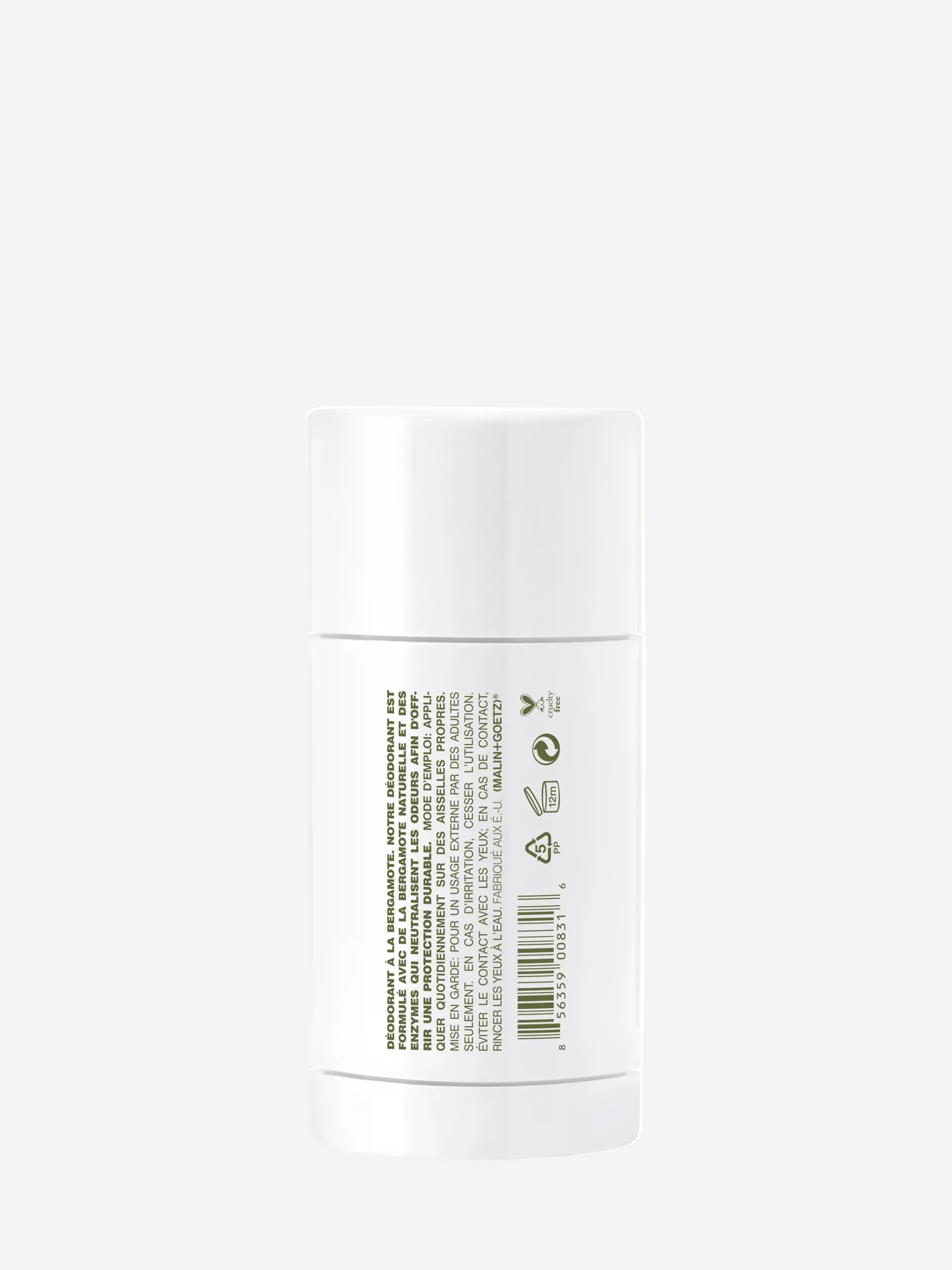 Malin+Goetz bergamot deodorant offers clean and effective protection from underarm odor without the use of aluminum, alcohol, baking soda, parabens or synthetic fragrance.