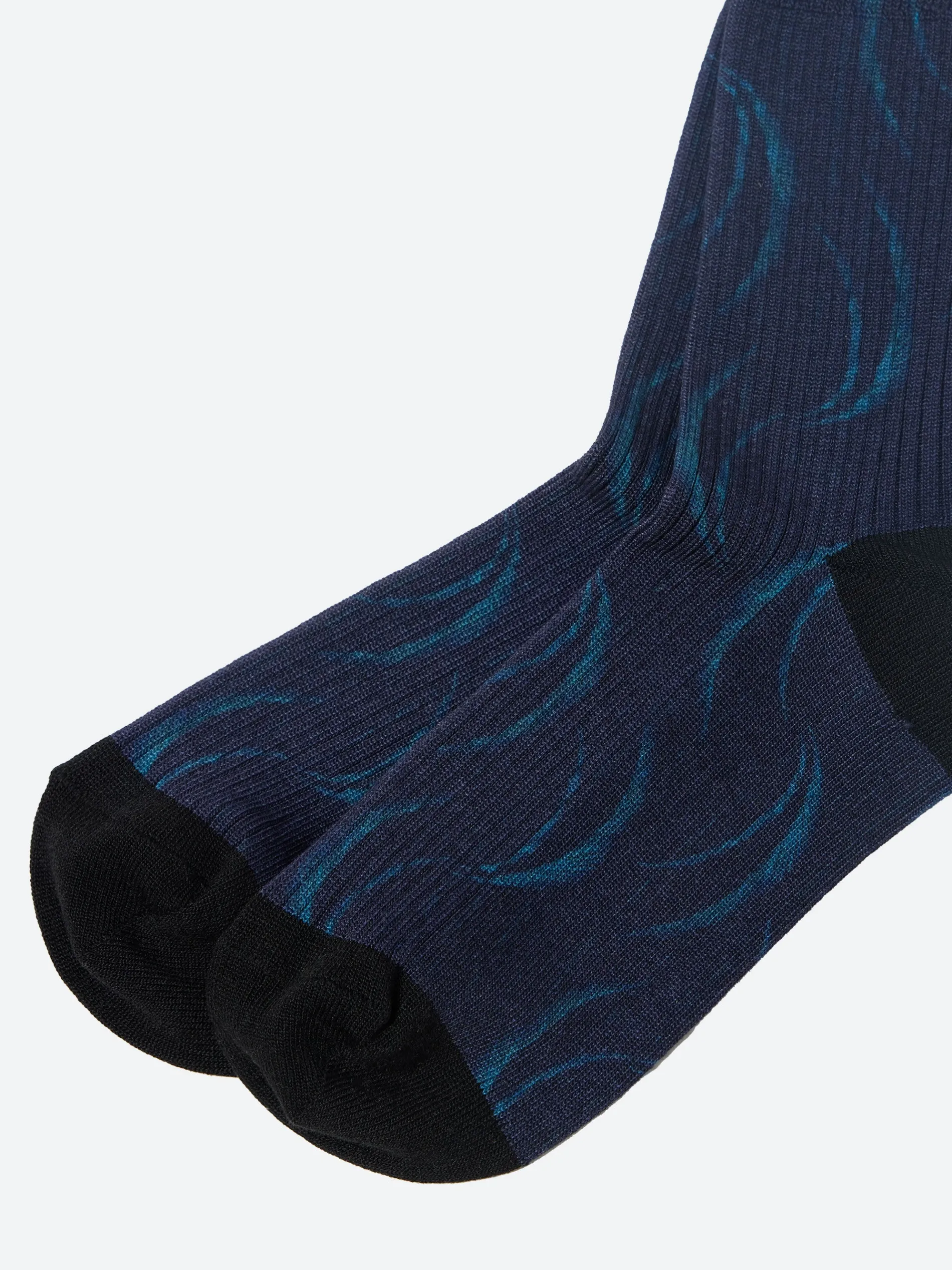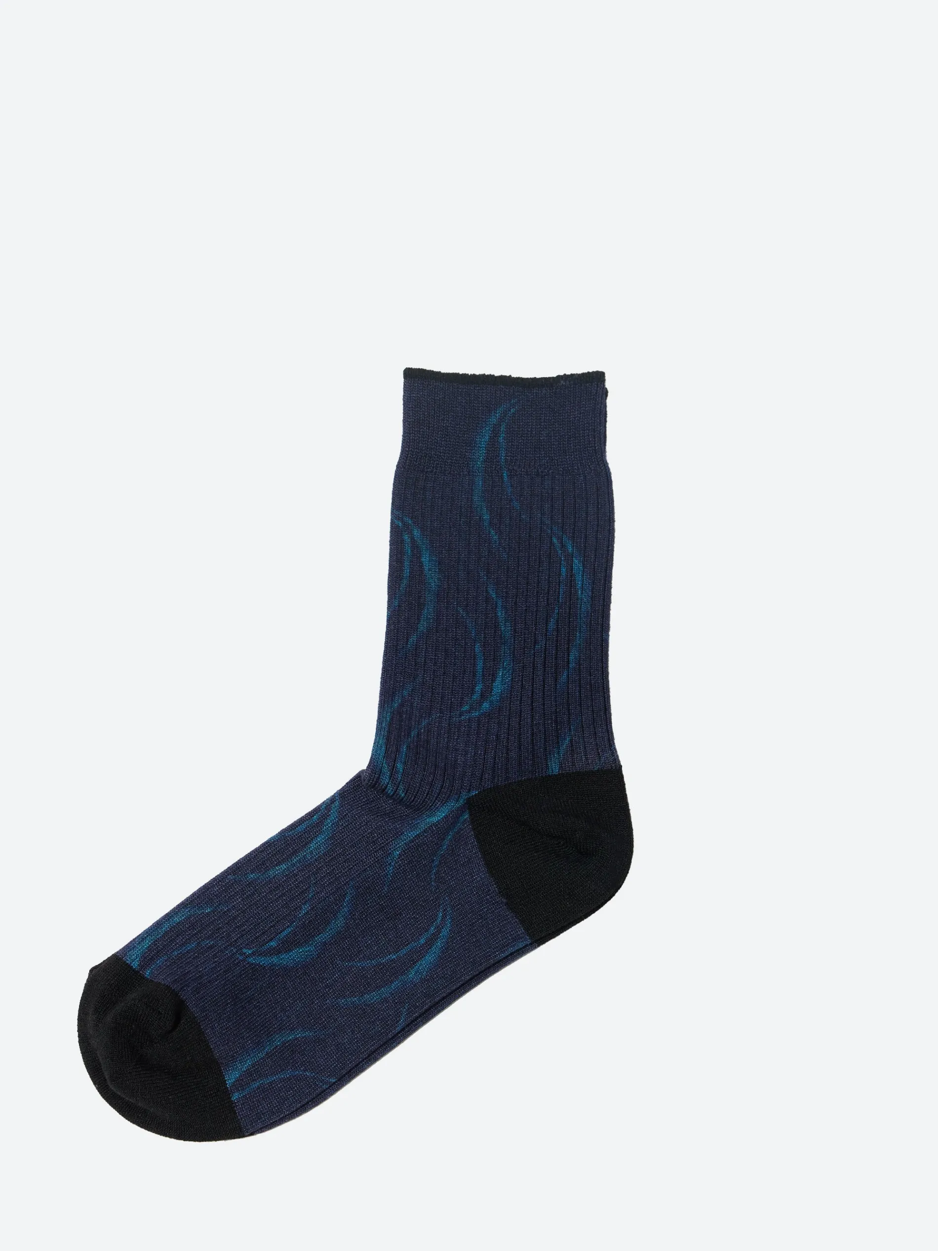 The Blue Blue Japan Knitted Mebuki Printed Socks feature a soft ribbed texture that ensures a cozy fit. The all-over Mebuki print adds a distinctive charm to any ensemble.