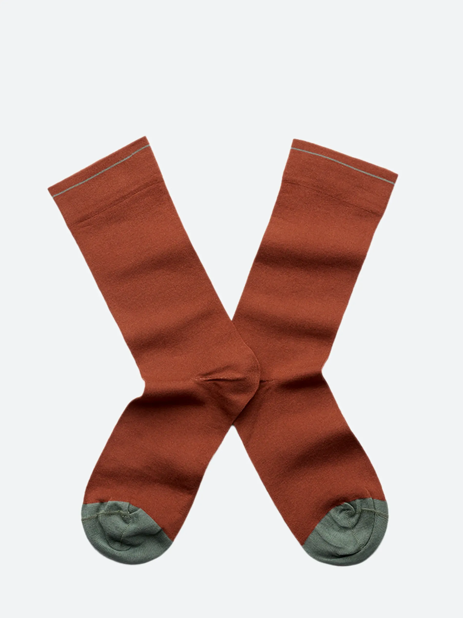 - Sepia brown sock with cedar green toe and edging
