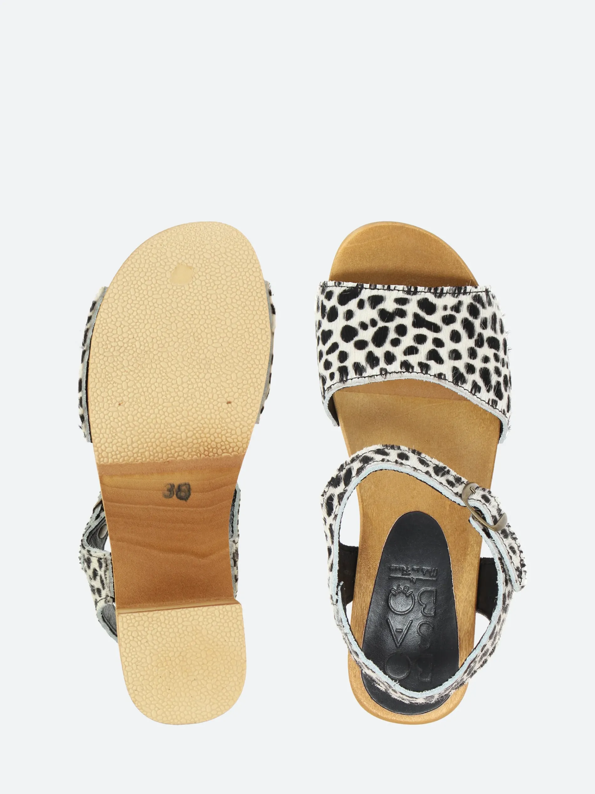 This elegant Bosabo sandal will accompany you to all your summer events. Its adjustable ankle strap and minimal front strap dress the foot, as the flexible wooden sole with an intermediate heel provides comfort while keeping a feminine look.