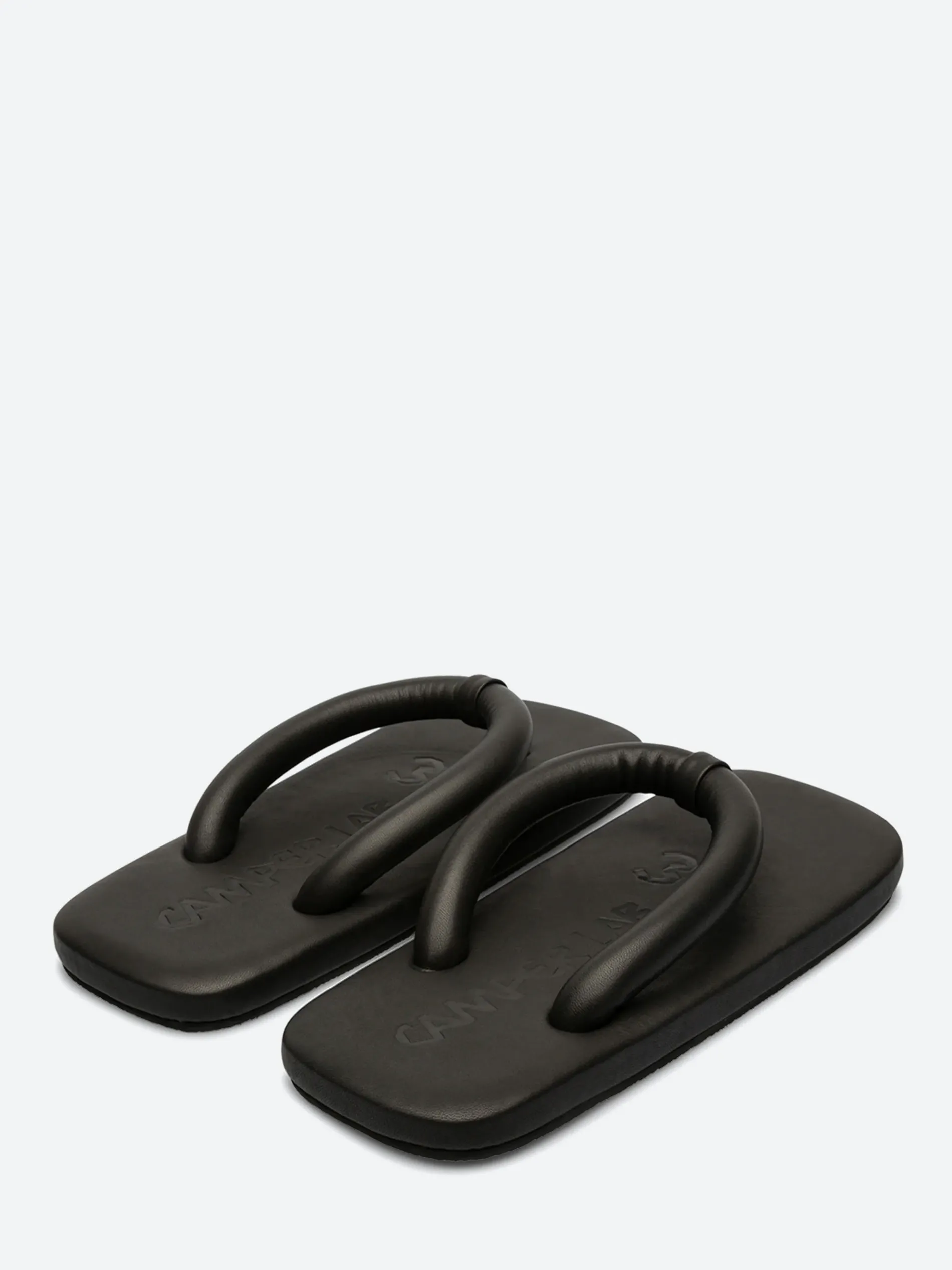 Leather flip-flop sandals with squared design and memory foam footbed. Comes with split-toe tabi socks made of embossed organic cotton in matching colour.