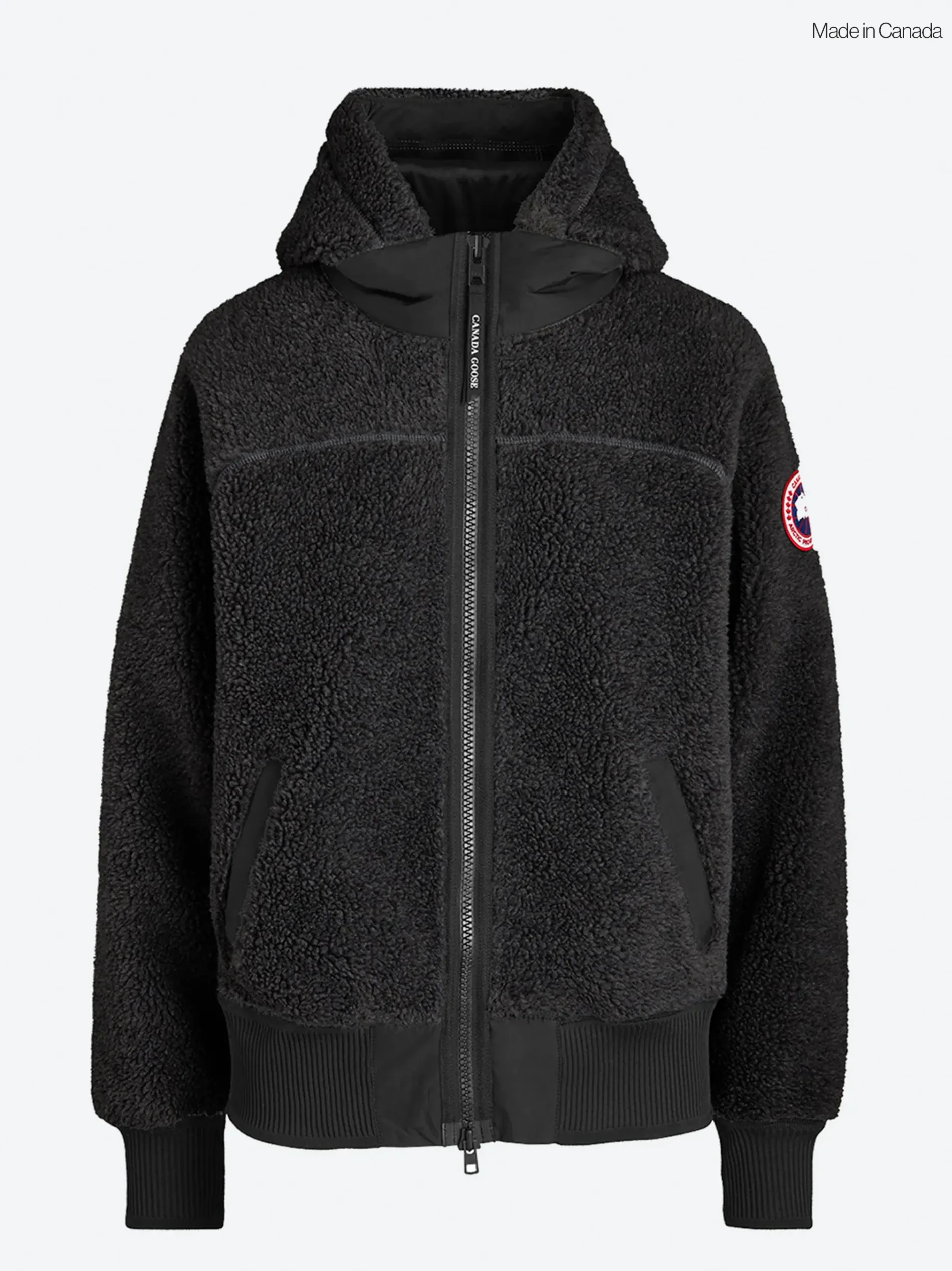 Canada Goose Simcoe hoodie in high-pile fleece. Finished with their signature double stripe reflective at the back of the collar for added visibility in low-light conditions.