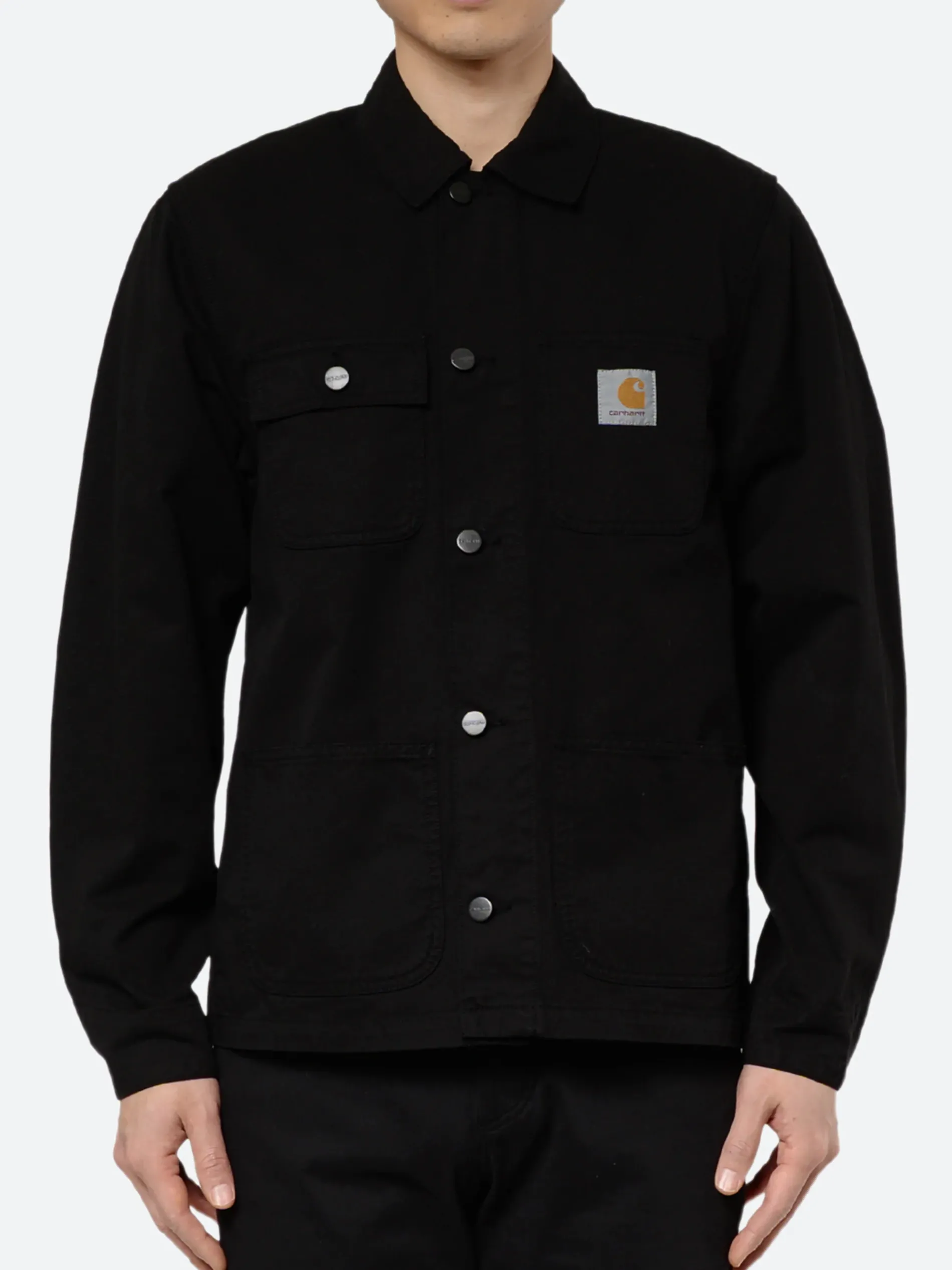 The Michigan Chore Coat is created from a midweight Newcomb cotton drill fabric. Contrast button and rivet detailing which draws from a classic workwear aesthetic.