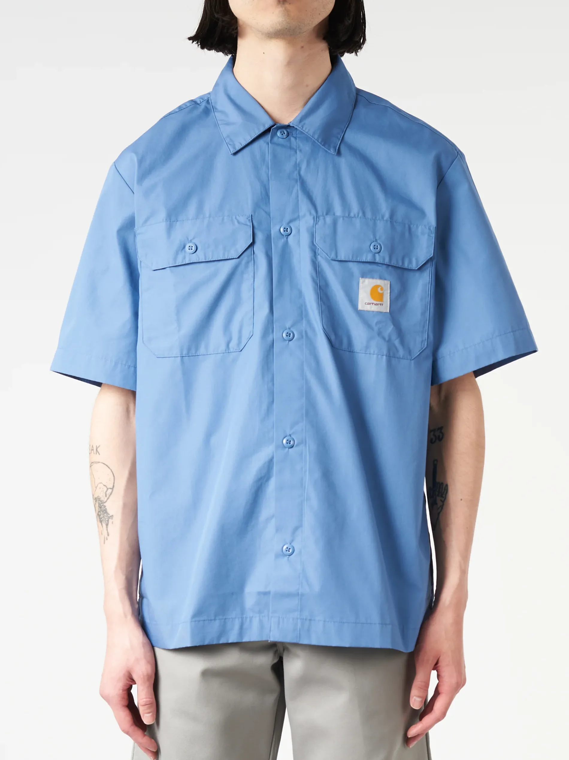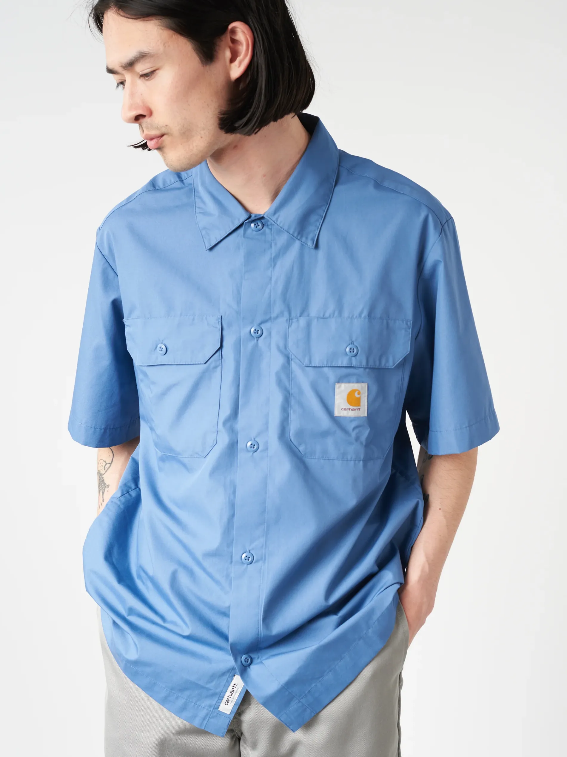 The S/S Craft Shirt is made from lightweight polycotton poplin and features a back pleat, which accentuates the item’s loose fit.