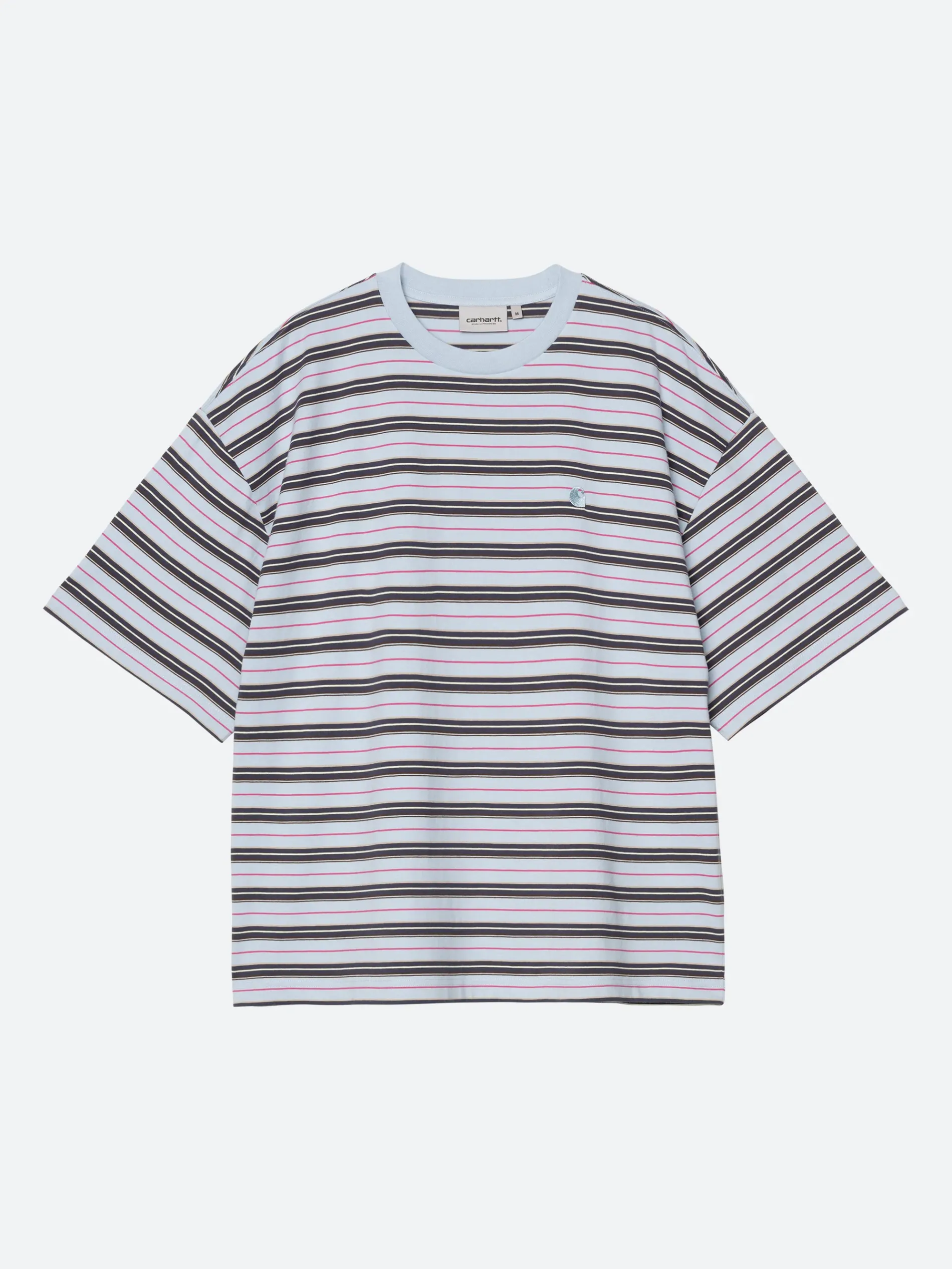 Carhartt WIP S/S Nathan T-Shirt is designed with a loose fit for a relaxed and comfortable feel. It is made from 100% cotton single jersey fabric ensuring durability and softness. The shirt features a stylish stripe design and is yarn-dyed for vibrant, long-lasting color.