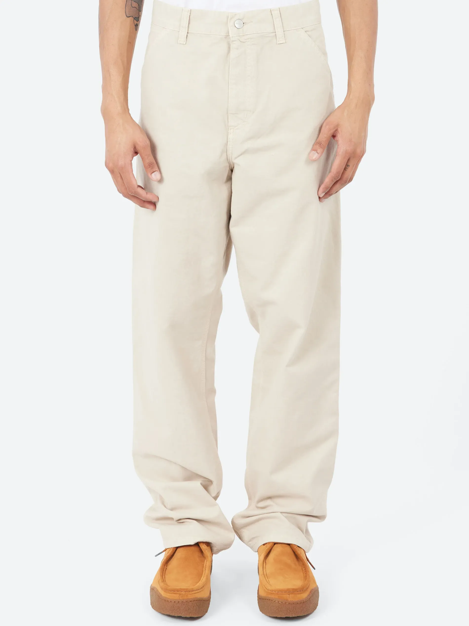 The Single Knee Pant draws inspiration from classic work pant silhouettes and is constructed in Newcomb drill weave, which is a midweight cotton fabric. These undergone a garment-dye treatment for more complex color configurations. This style is cut in a relaxed straight fit, featuring a regular waist. Bartack stitching at vital stress points make the pant more robust. Tool pockets and a hammer loop are further nods to the style’s utilitarian influences.
