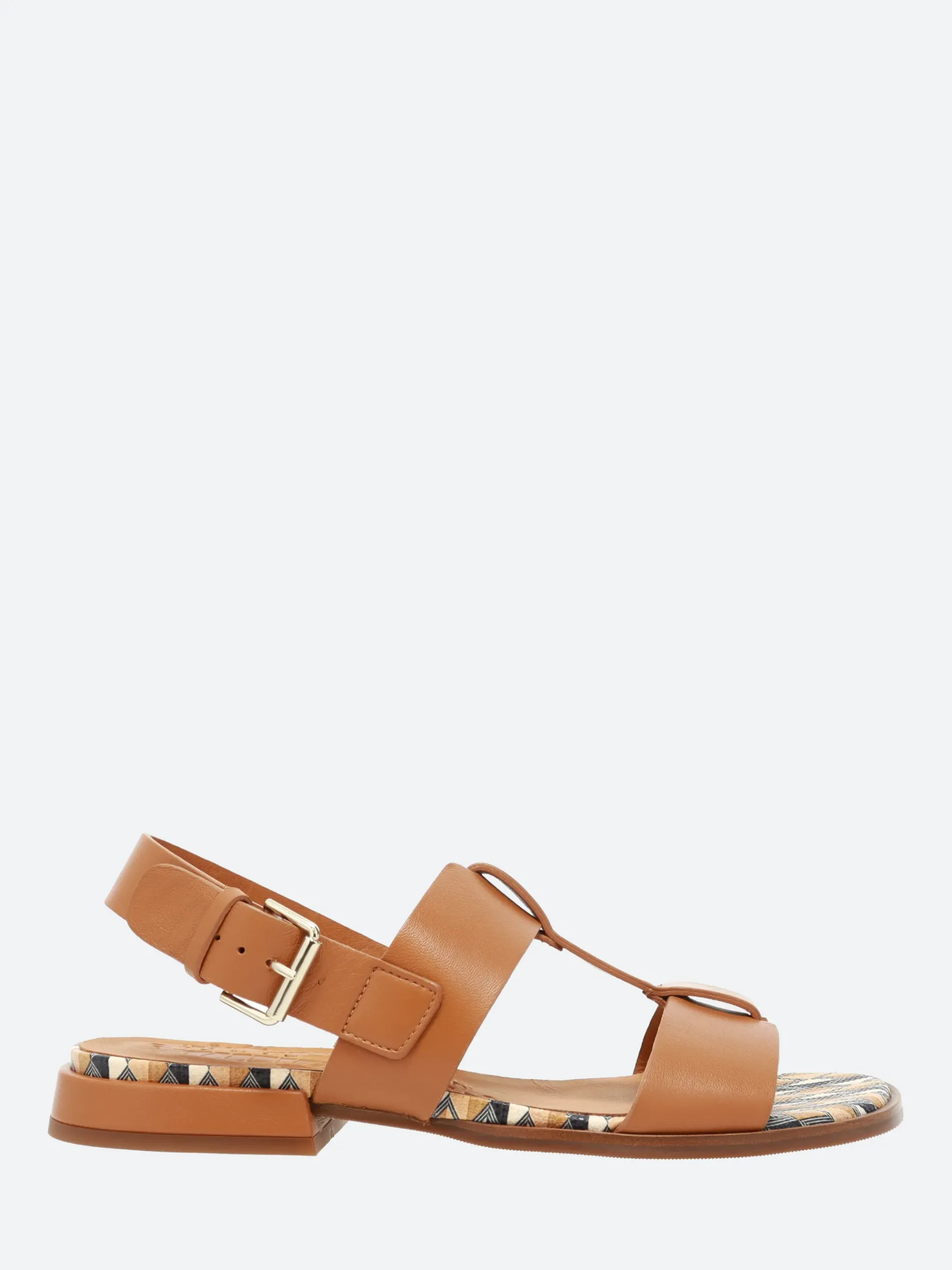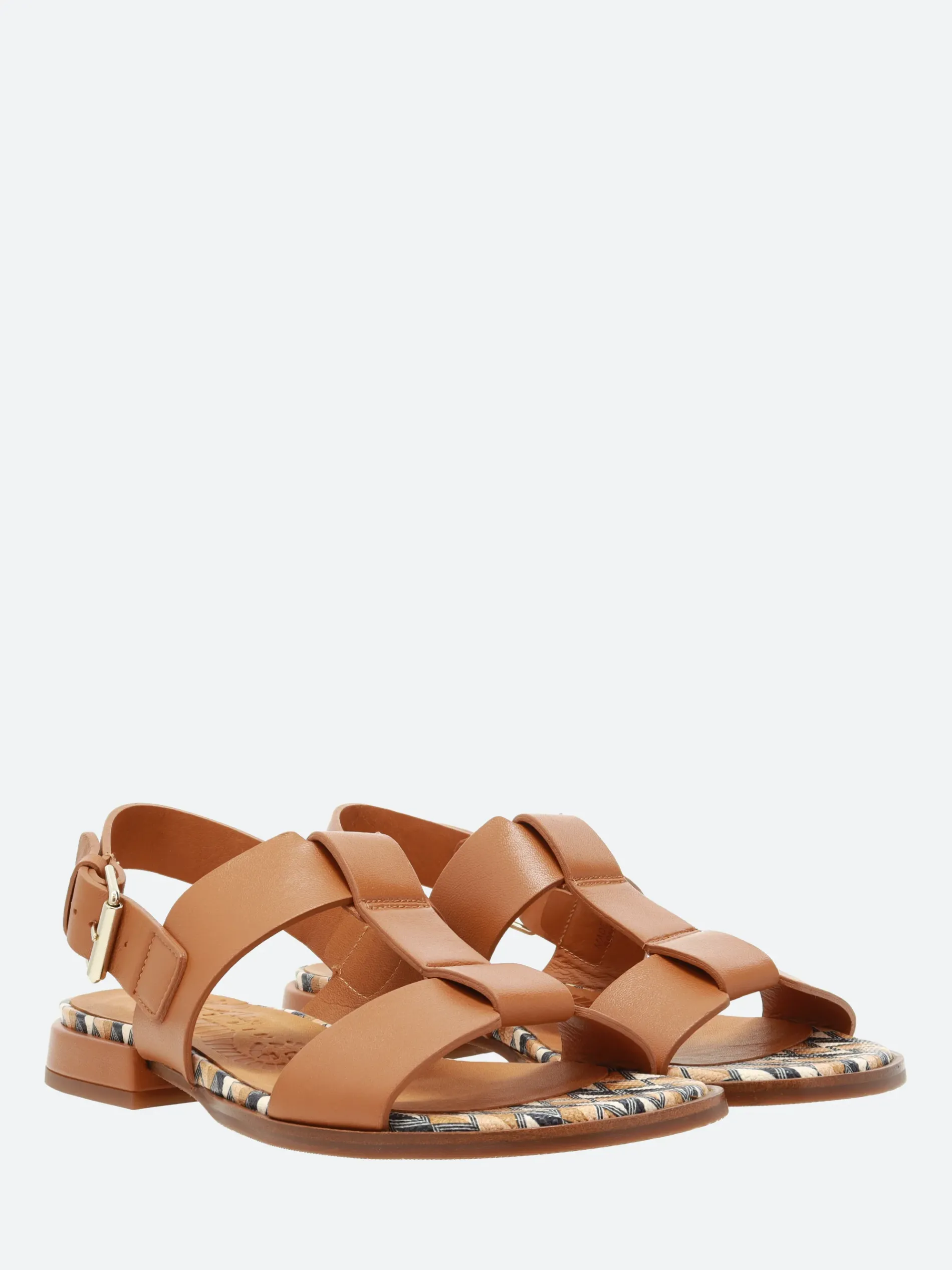 Chie Mihara Wayway flat sandal with a geometric printed leather.