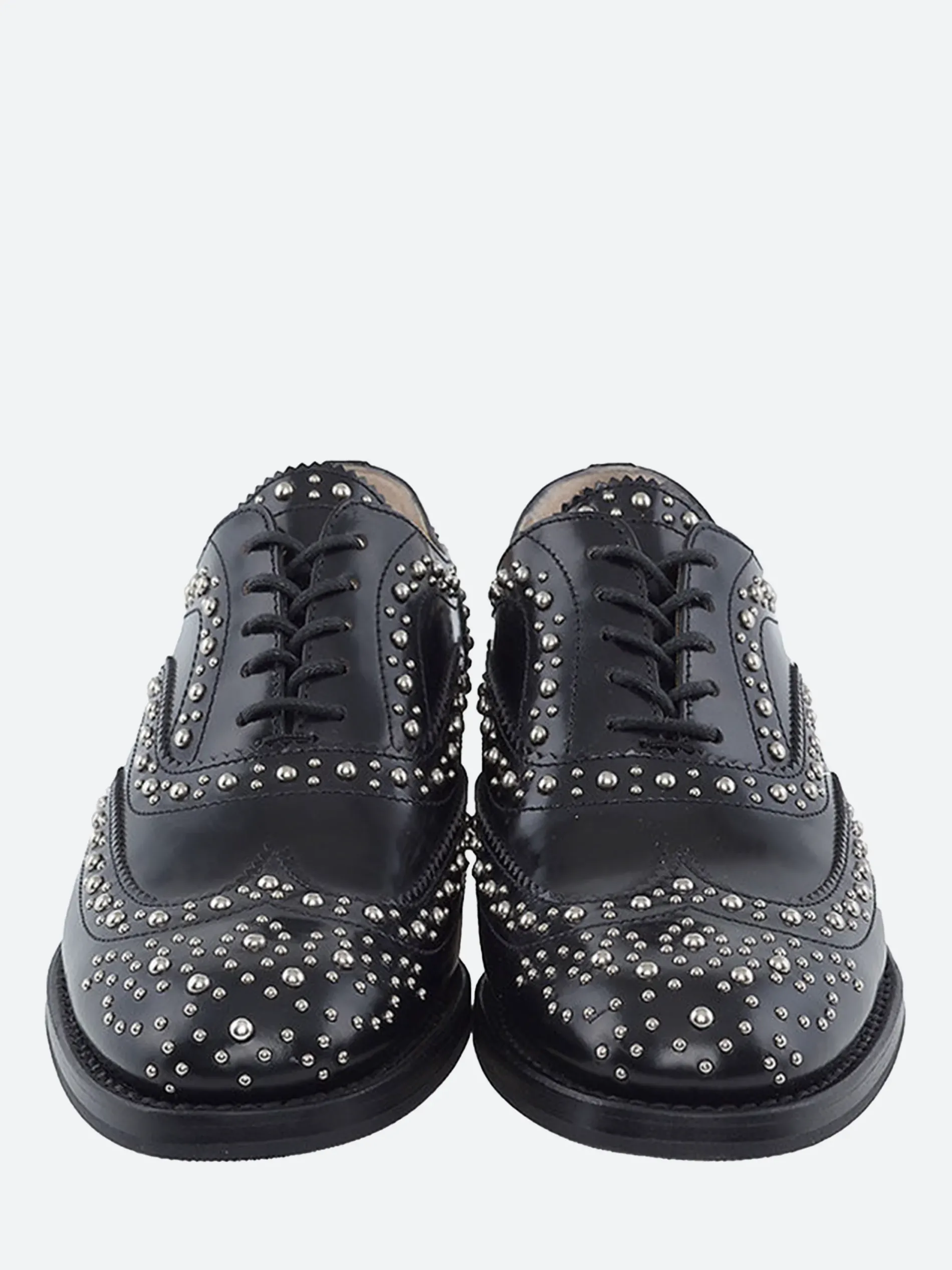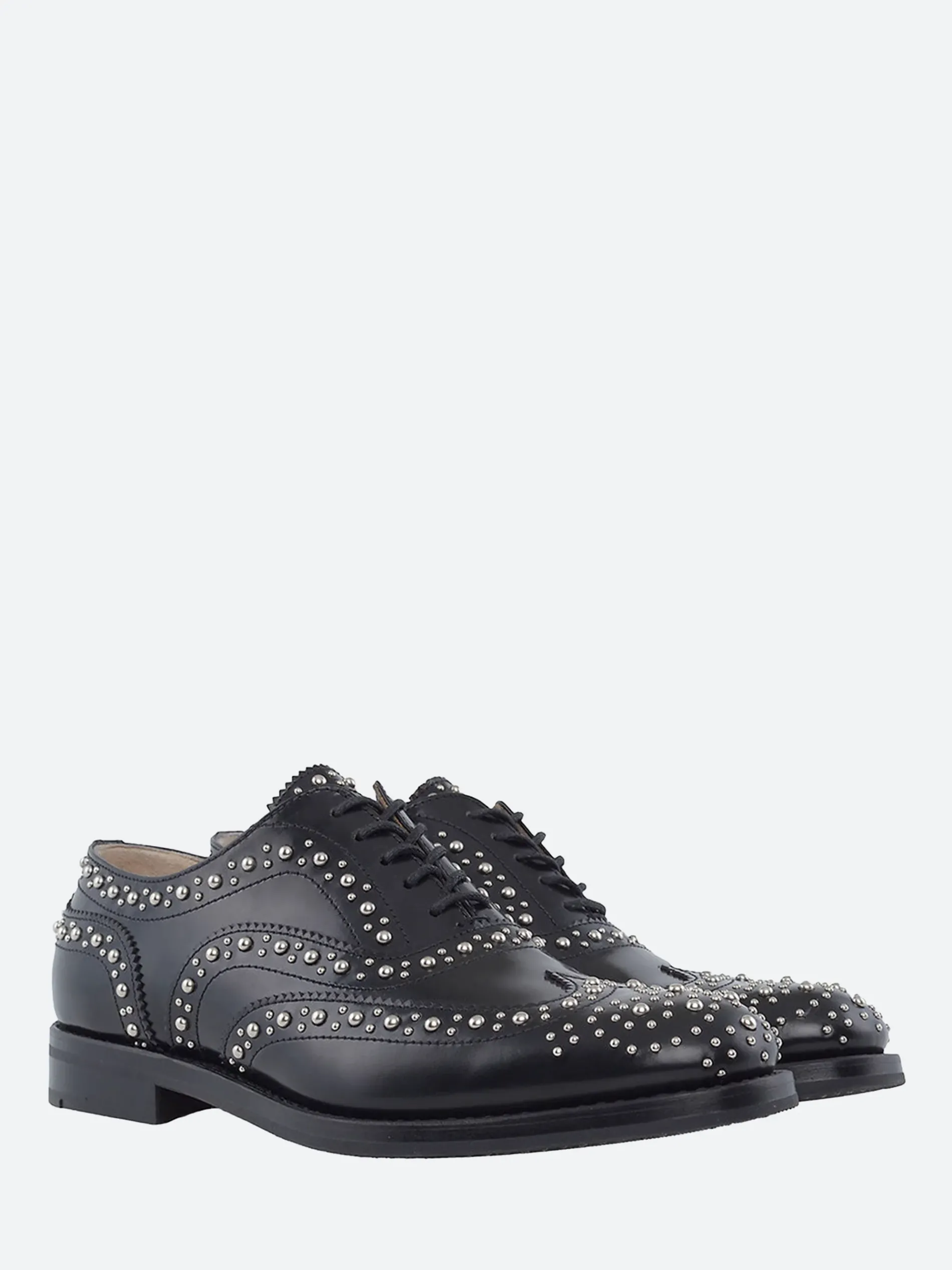 The ‘Burwood Met’ is a contemporary, feminine take on the men’s eponymous classic Oxford. The brogue perforations have been replaced by elegant studs and offset by delicate gimping throughout. A polished calf leather finish complements the stud detailing exhibiting a refined stand-out style.