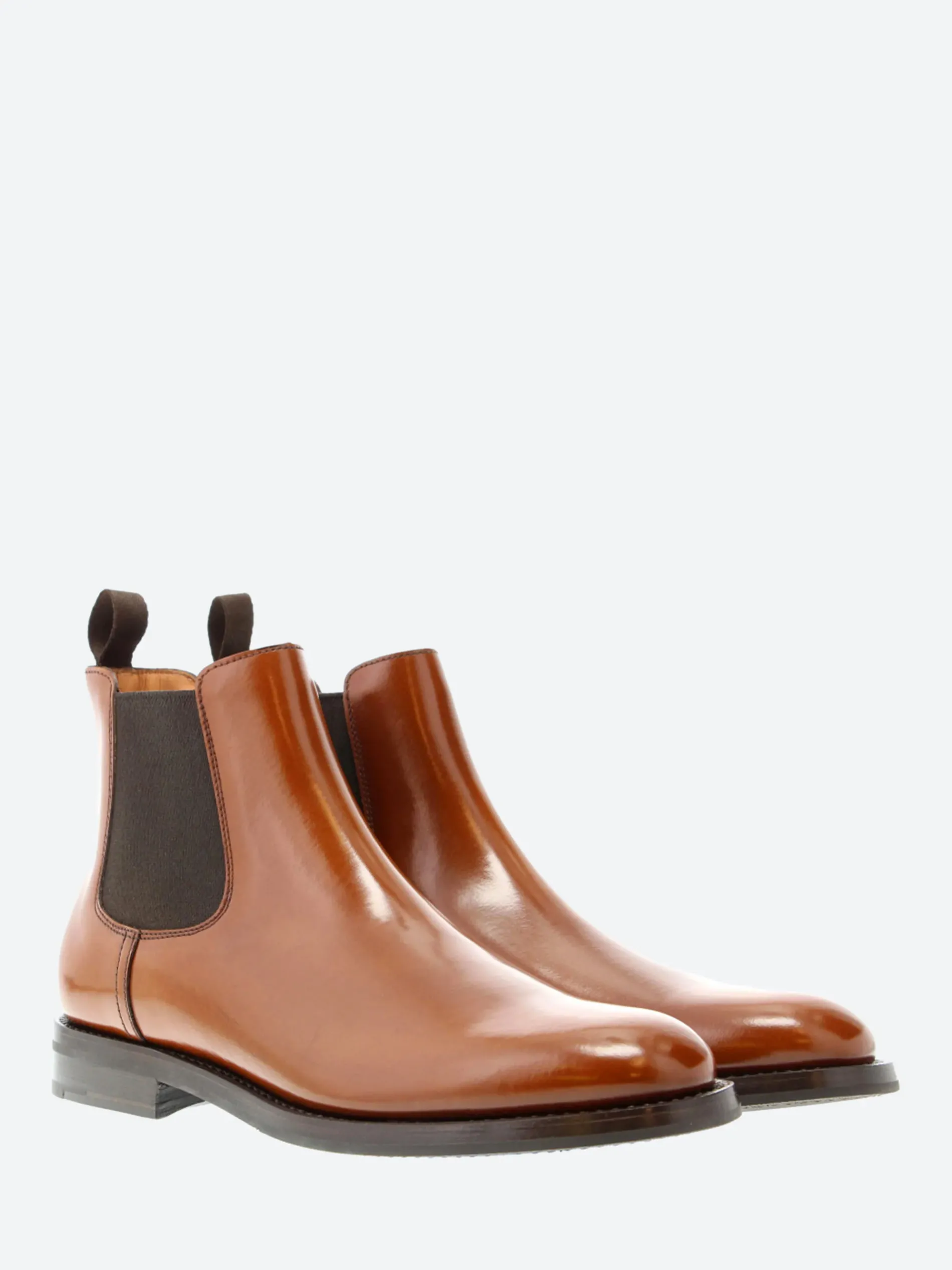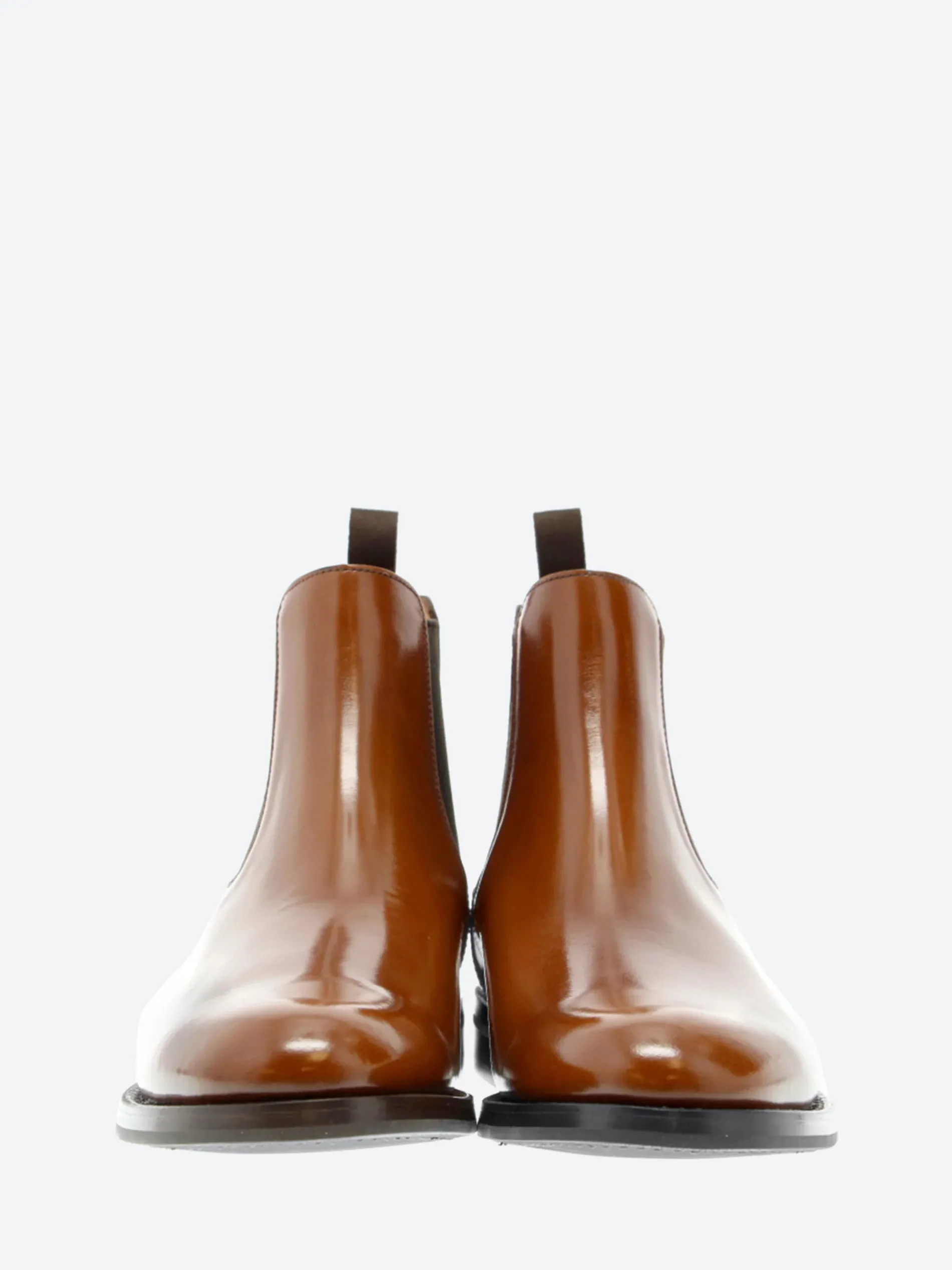 Church’s Monmouth is an ultra-classic Chelsea ankle boot with a rounded toe, low heel and a stitched leather and rubber sole. The boot is made of a high-quality matte calf leather.