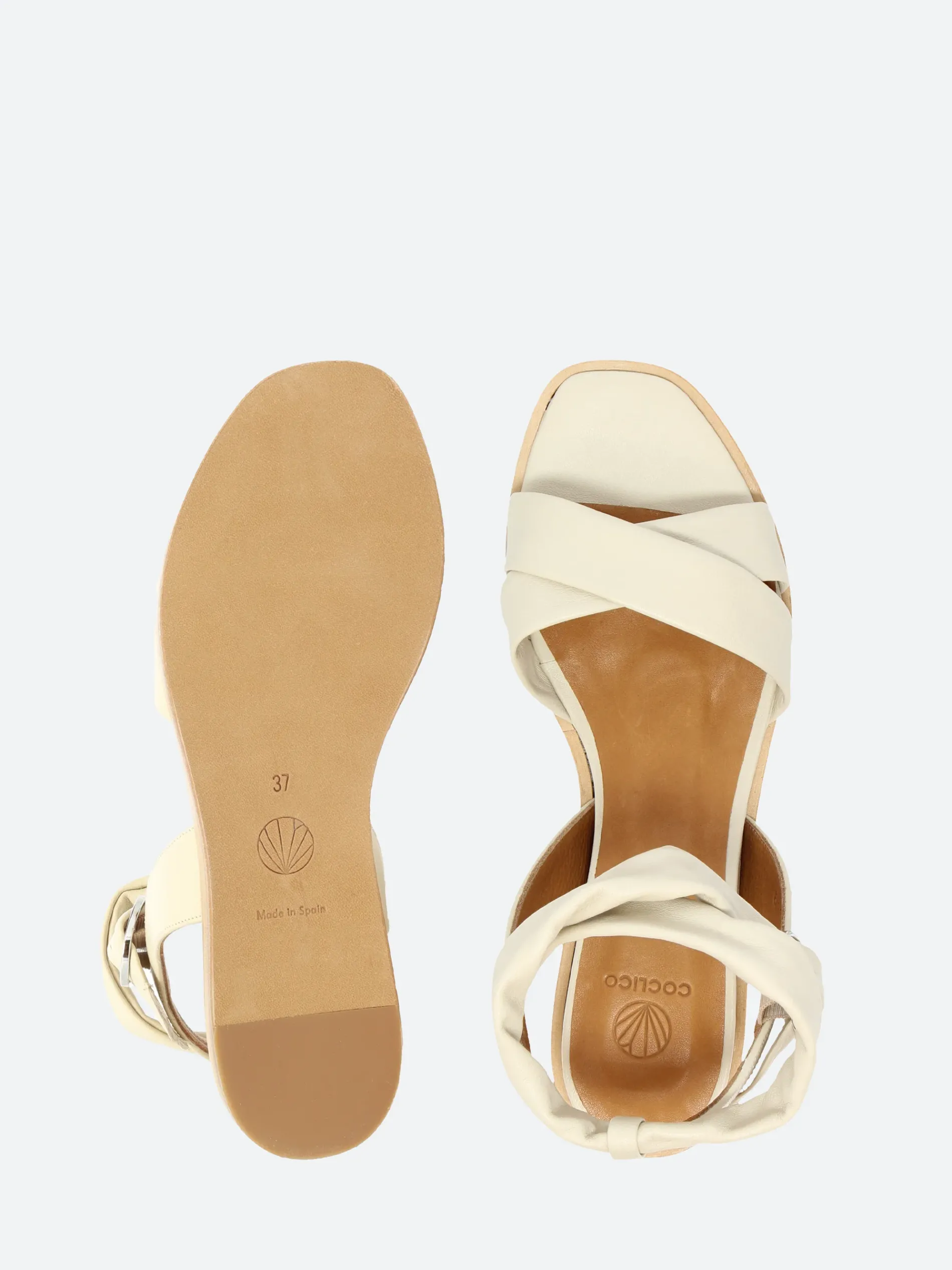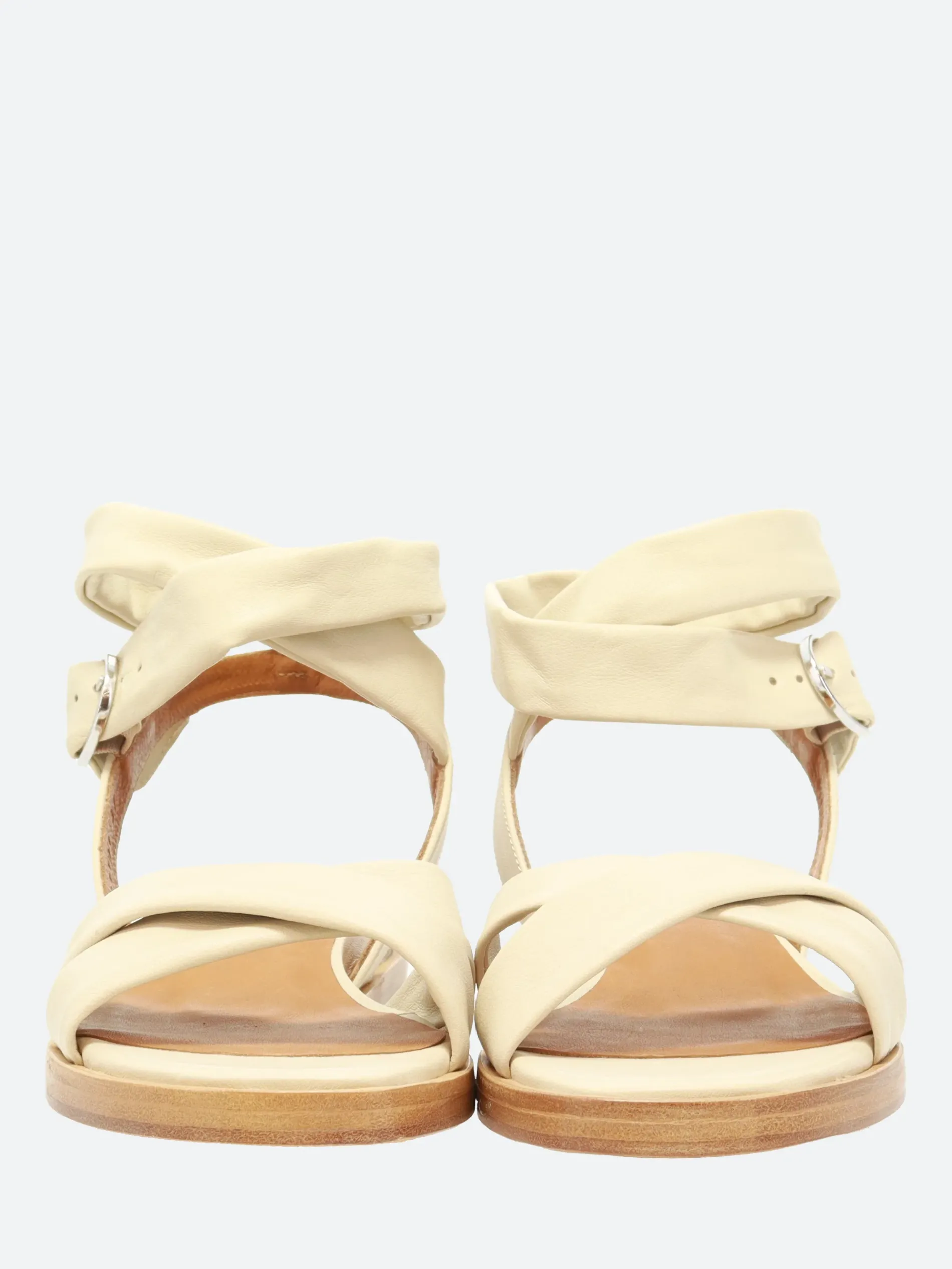 Supple tubular straps cross and support the foot and ankle. Inset leather wrapped wedge and a layered leather sole for urban style and durability.
