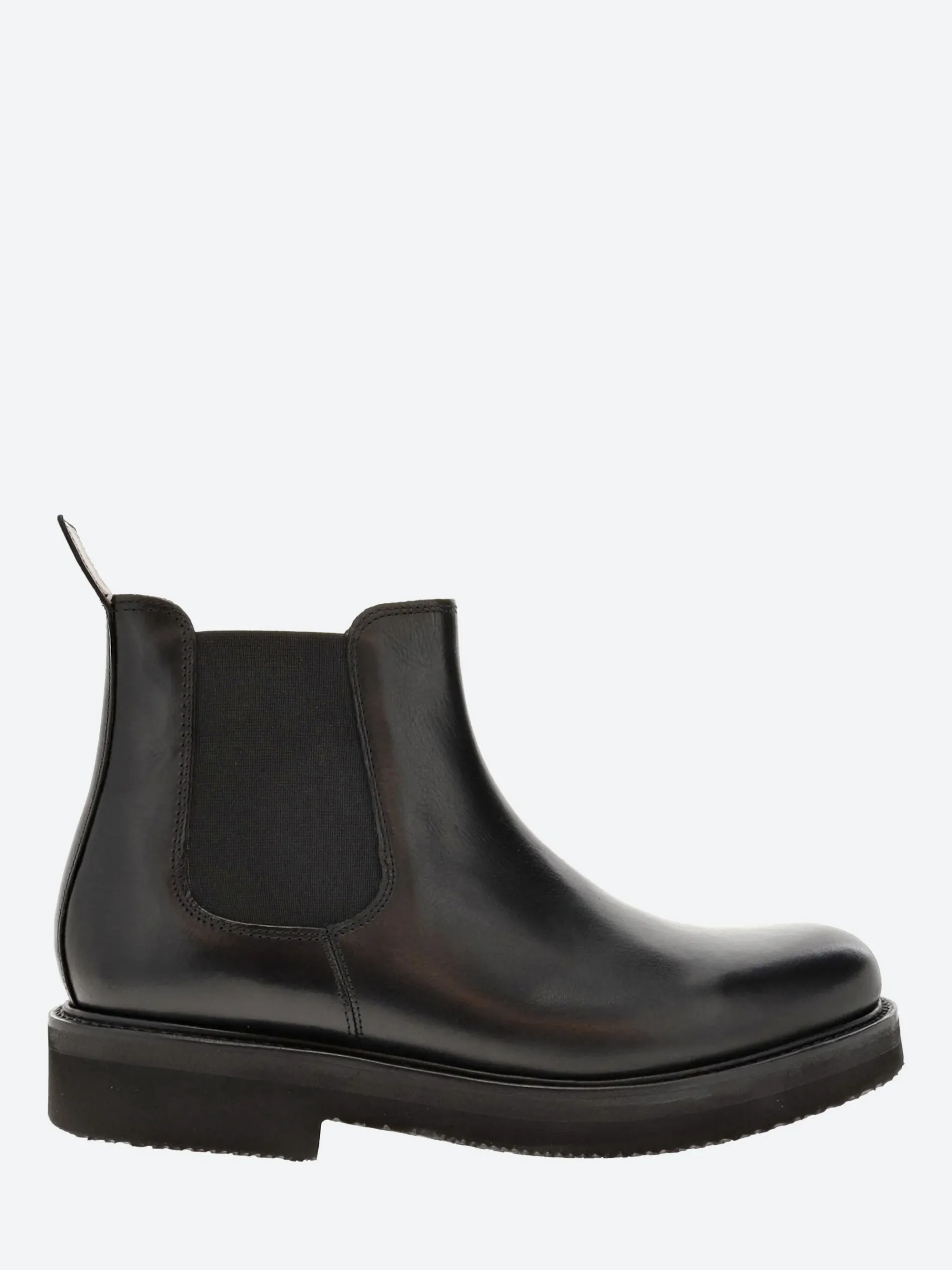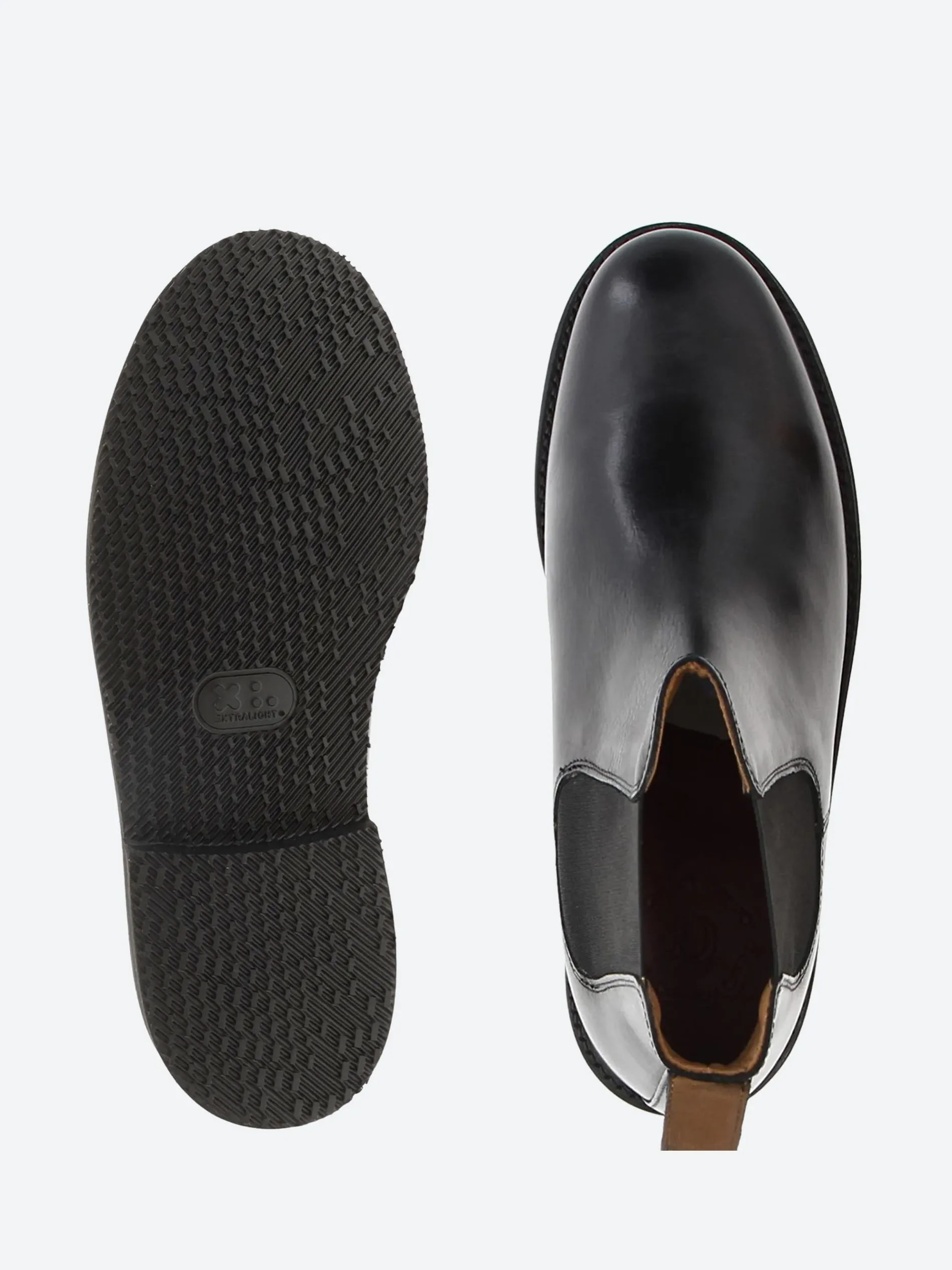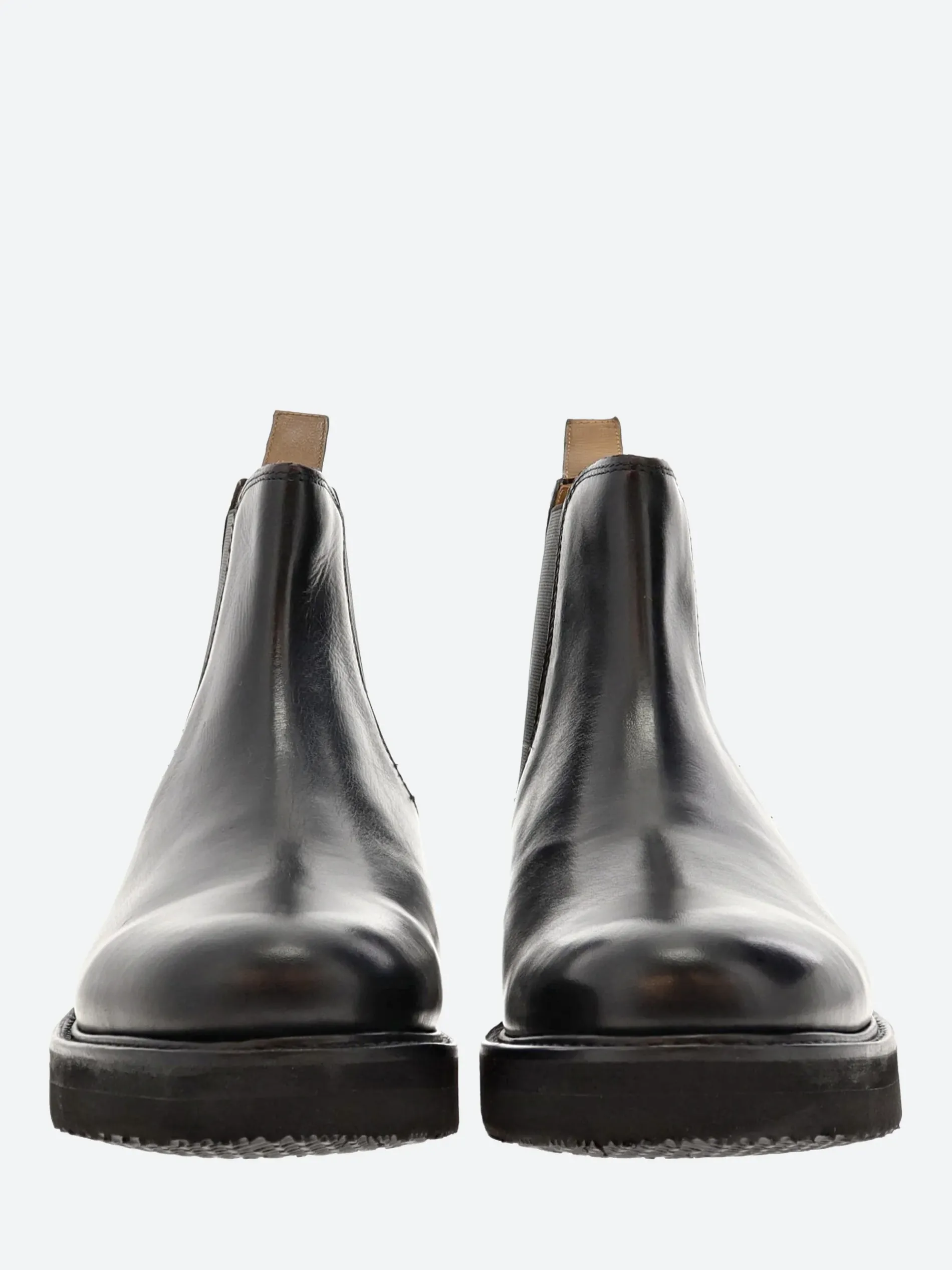 Grenson Colin is a classic, super sleek Chelsea boot made from a classic black calf leather with tonal welt and sole. Sits on a hardwearing Dainite sole with a leather waist for grip and performance.