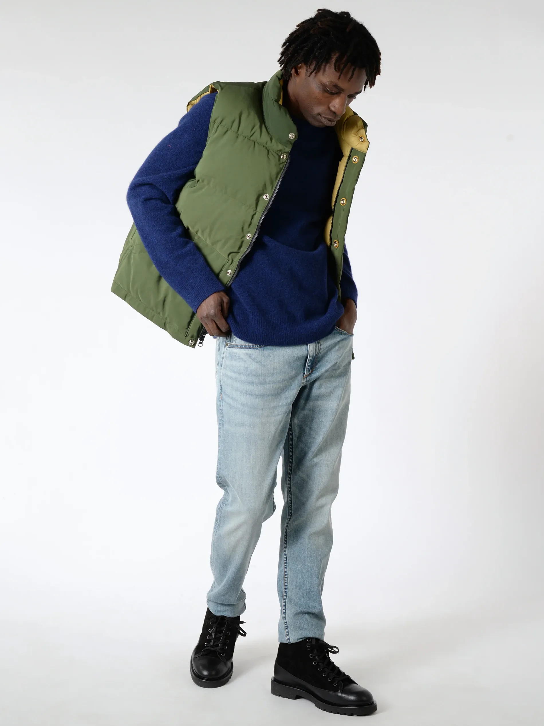 Crescent Down Works Italian Vest is THAT vest. That throw-on over a tee shirt to take out the trash vest; that wallet/keys/phone always in the pocket vest; that ball up and use as a pillow on the plane vest. Less a statement more a standard, the Italian Vest will be your constant companion.