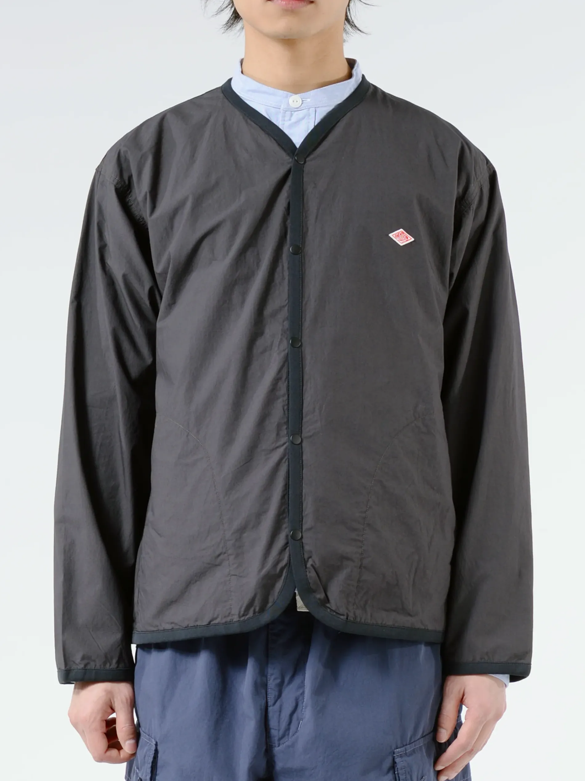 Danton shirt cardigan made from a broadcloth cotton woven with ultra-high density 80 thread.