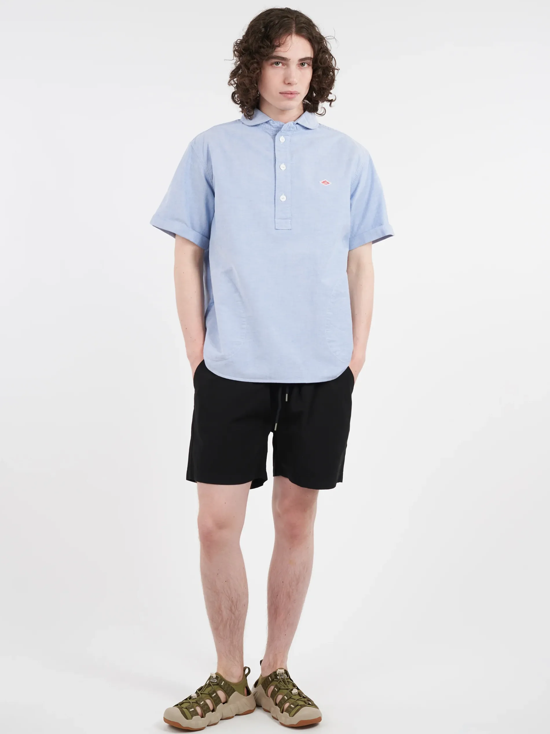 Danton pullover short-sleeved shirt made from a soft cotton oxford. The curved collar lends a casual and traditional workwear look.