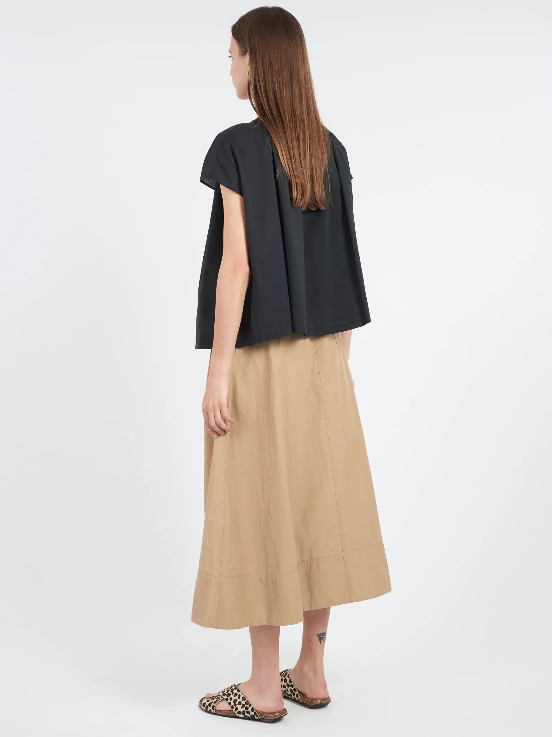 Sleeveless smock shirt with airy impression. Lawn fabric made of organic cotton. Fluffy texture provided by washer process.