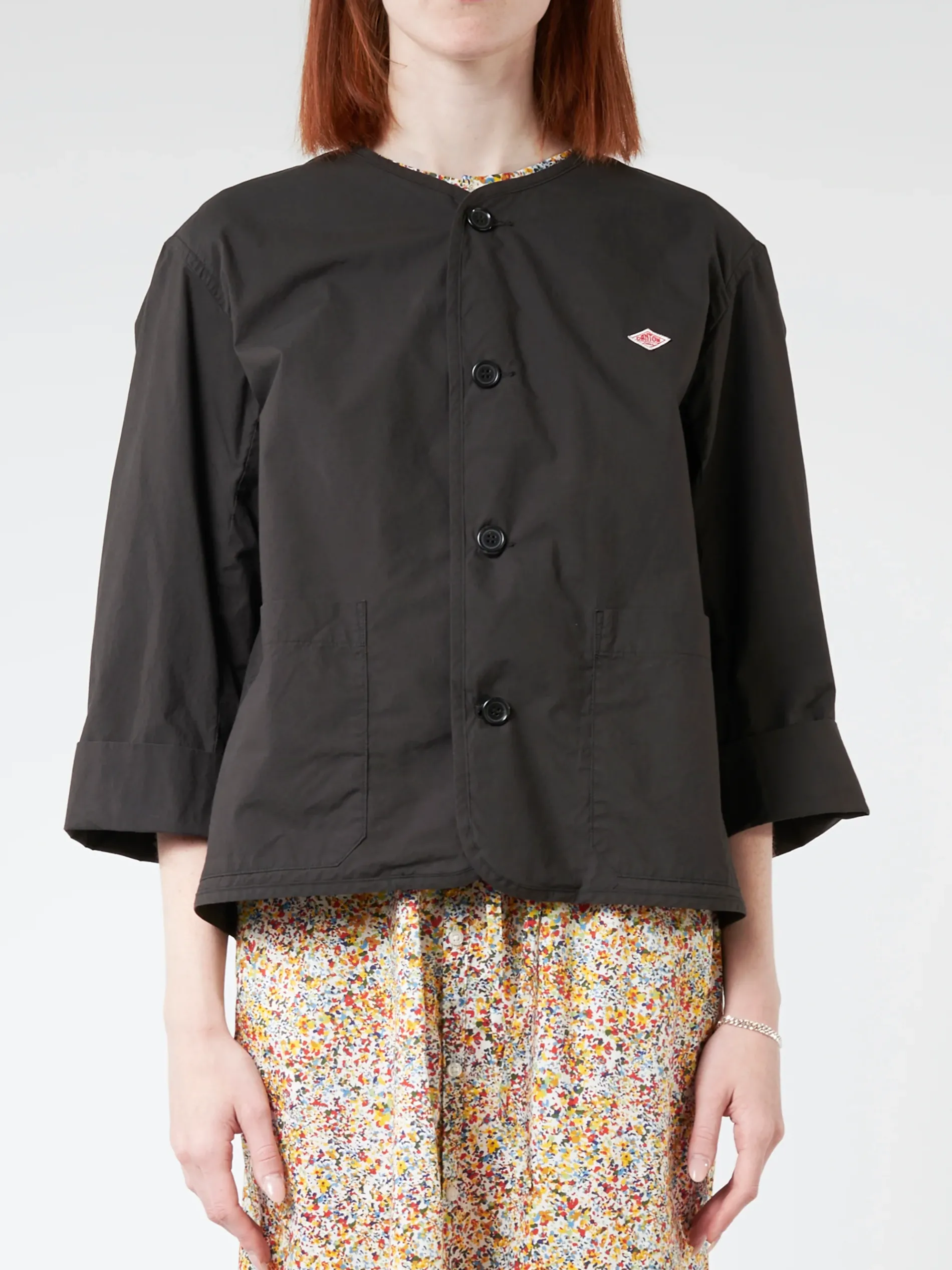 Danton signature collarless jacket made from a high-density cotton fabric with firmness and flexibility. Washed for a natural worn texture and wrinkled finish.
