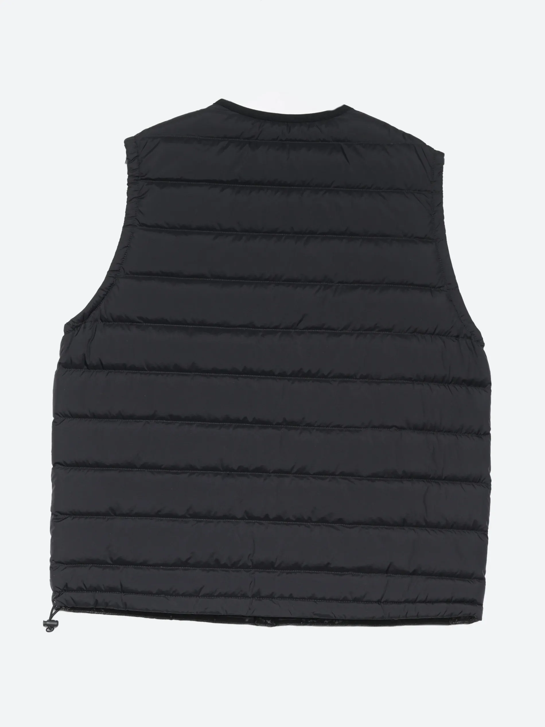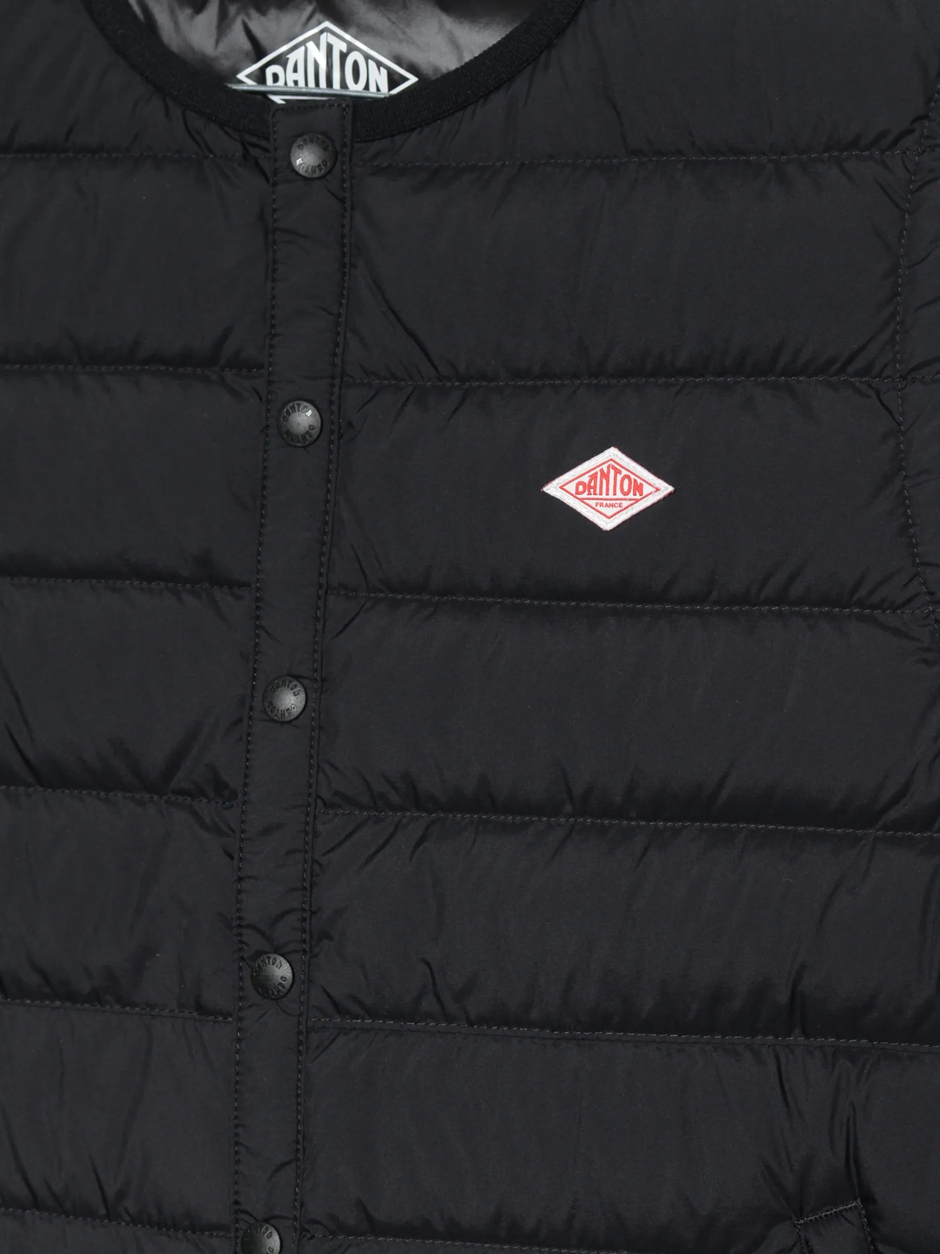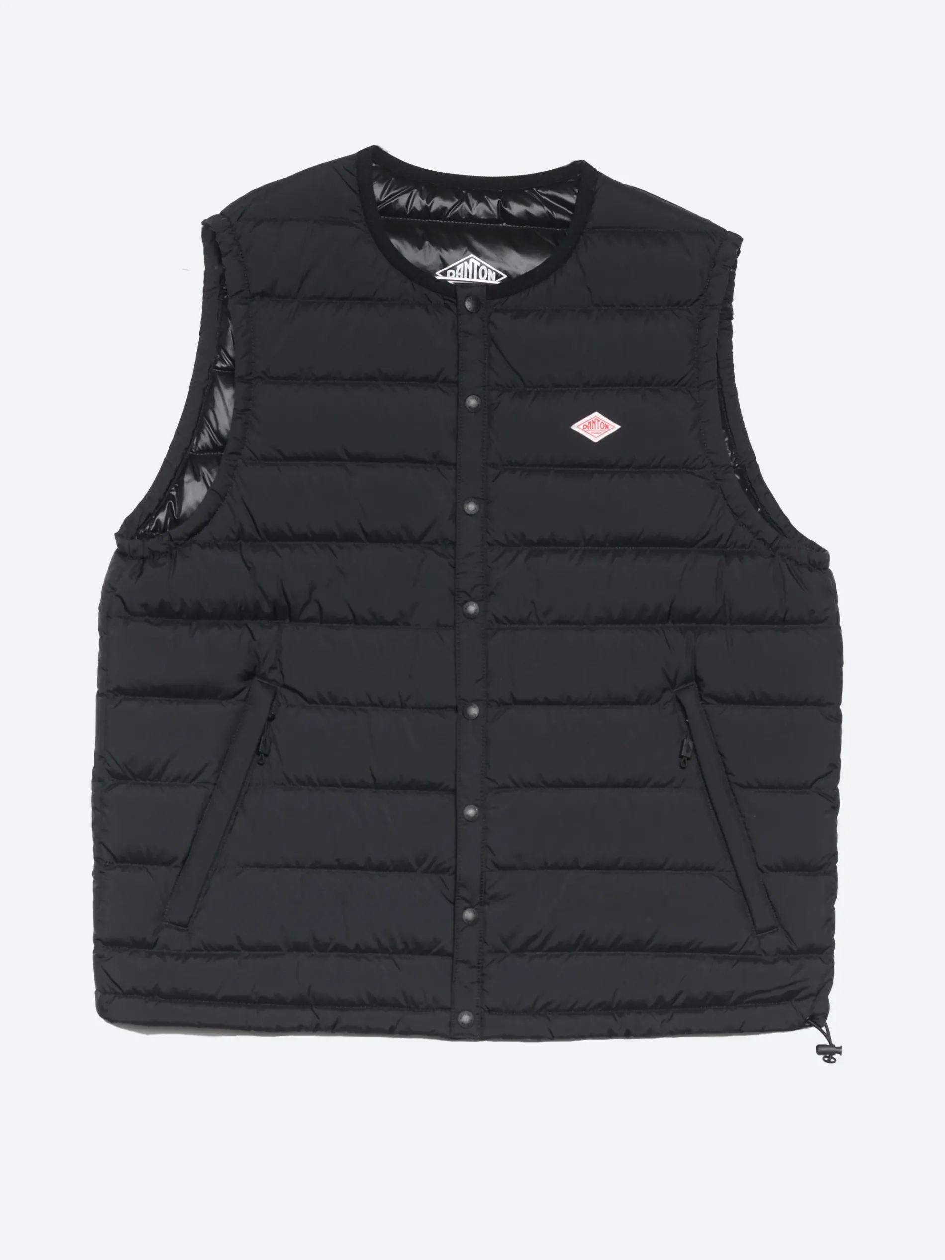 Danton Inner Down Vest crafted from high density nylon fabric with a low-gloss surface finish. A clean round neck and suitable to be worn alone or under a jacket for added warmth.