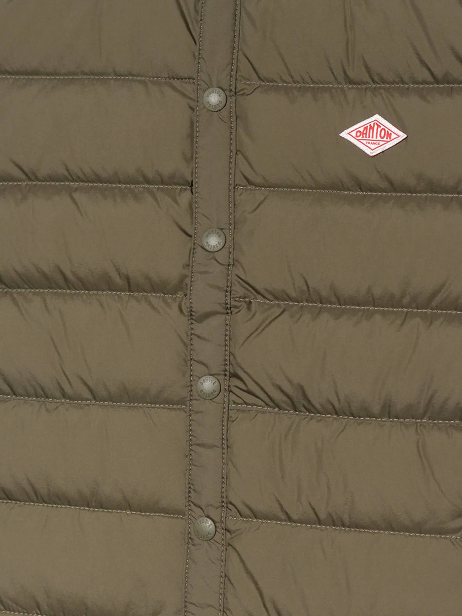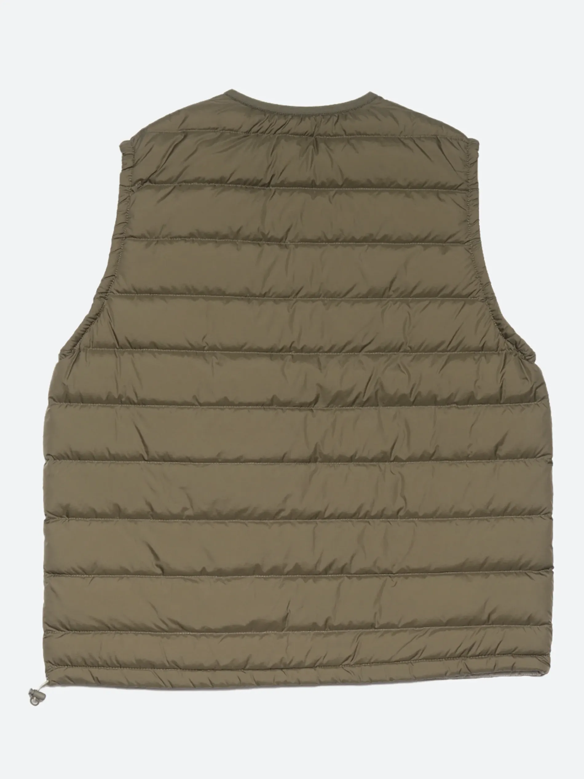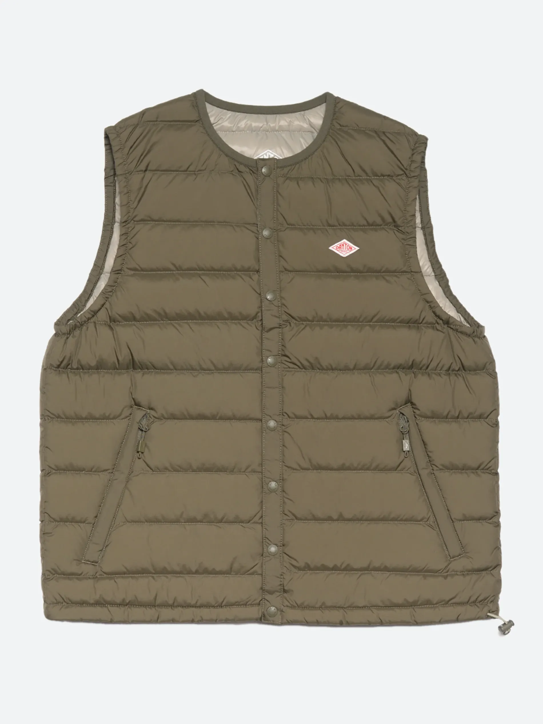 Danton Inner Down Vest crafted from high density nylon fabric with a low-gloss surface finish. A clean round neck and suitable to be worn alone or under a jacket for added warmth.