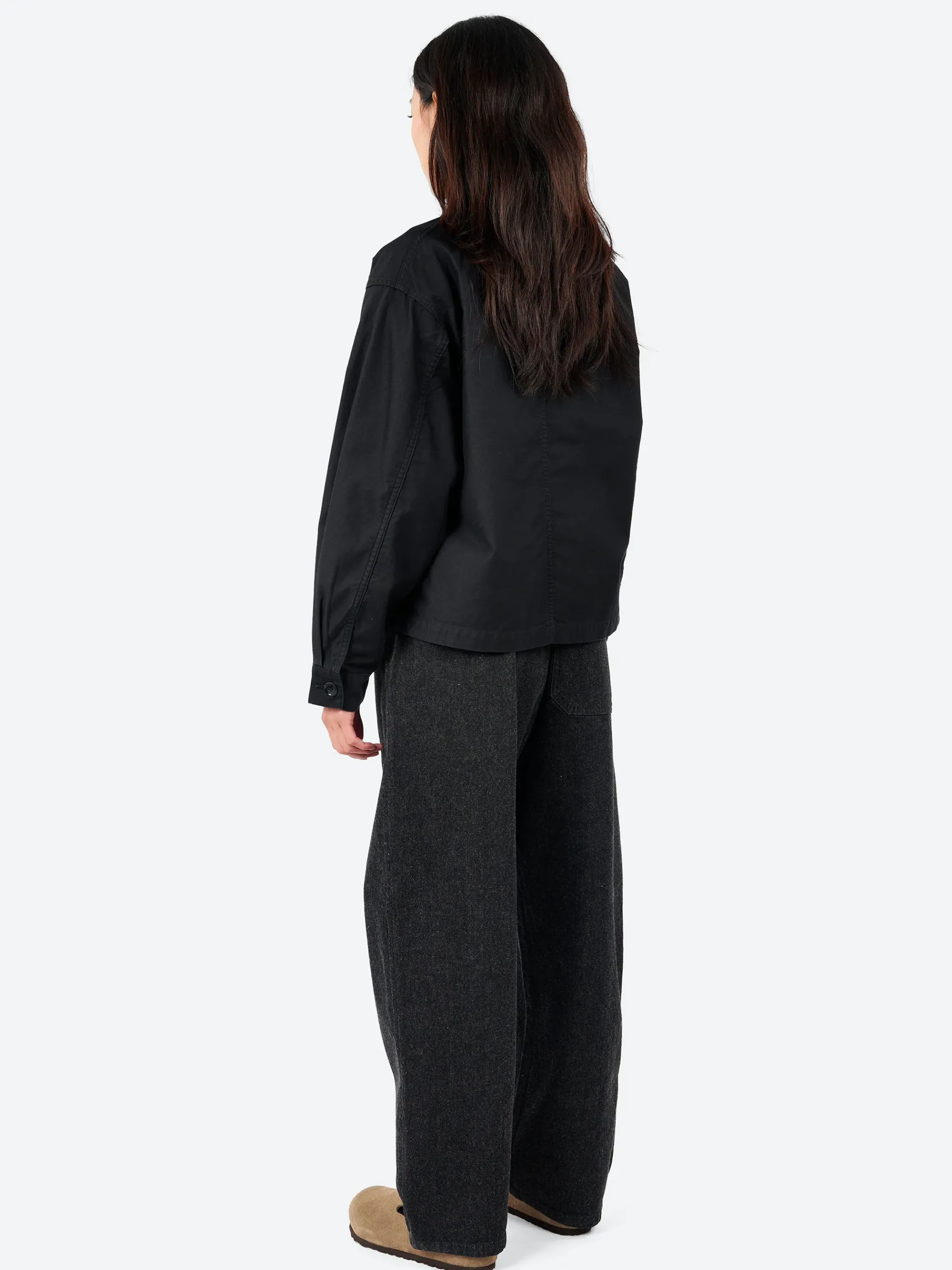 The Danton French coverall jacket is crafted from thick moleskin fabric with a subtle sheen, offering a sophisticated yet durable feel. It features classic details throughout, with a gently tapered silhouette towards the hem for a modern touch. The jacket boasts a relaxed fit through the body and sleeves, combining comfort with a refined, stylish look.