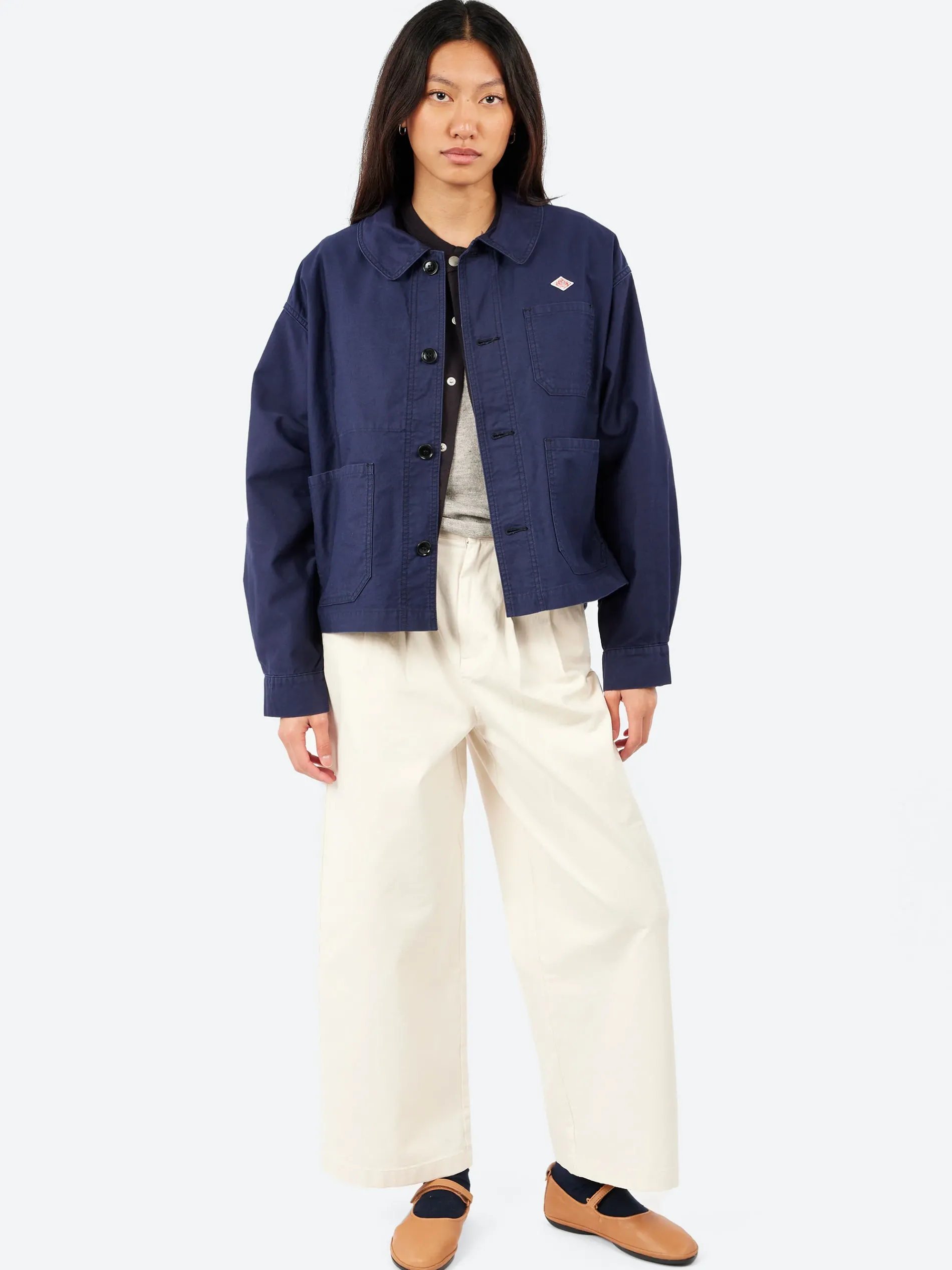 The Danton French coverall jacket is crafted from thick moleskin fabric with a subtle sheen, offering a sophisticated yet durable feel. It features classic details throughout, with a gently tapered silhouette towards the hem for a modern touch. The jacket boasts a relaxed fit through the body and sleeves, combining comfort with a refined, stylish look.