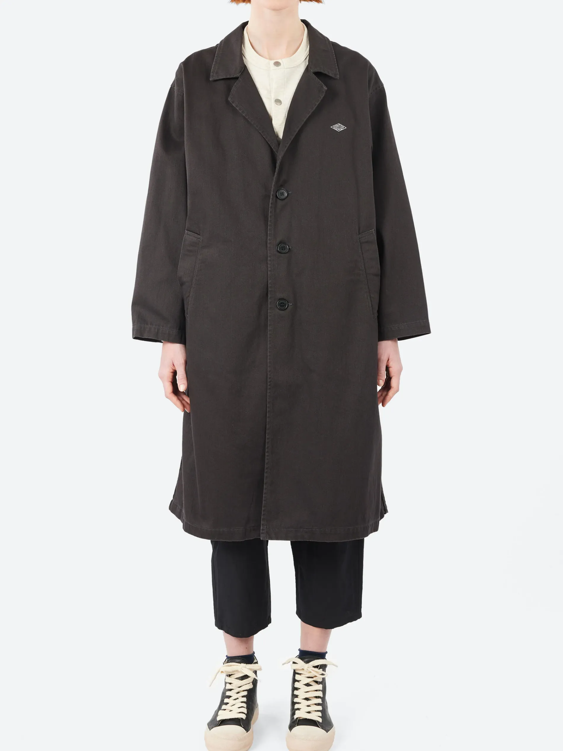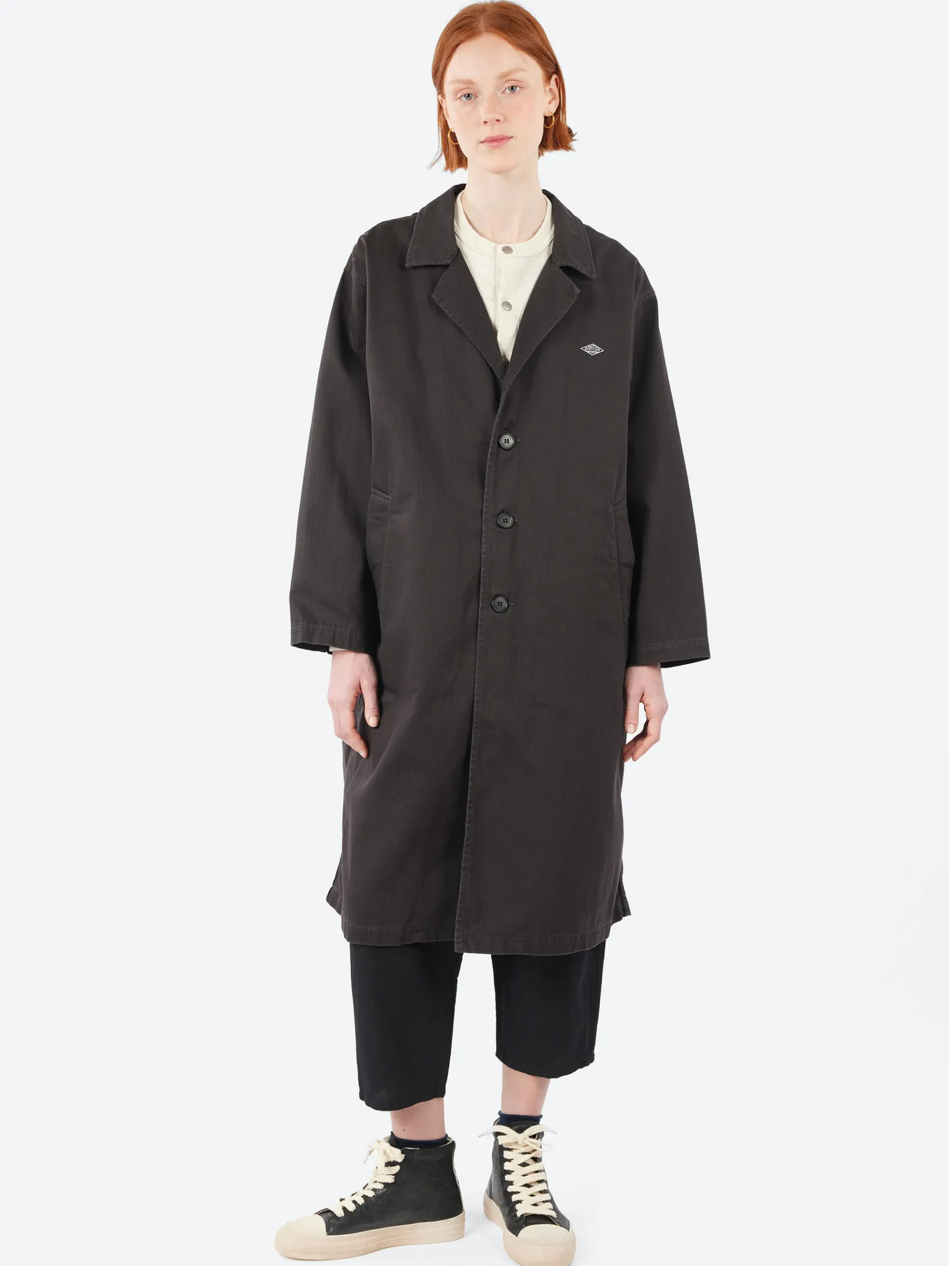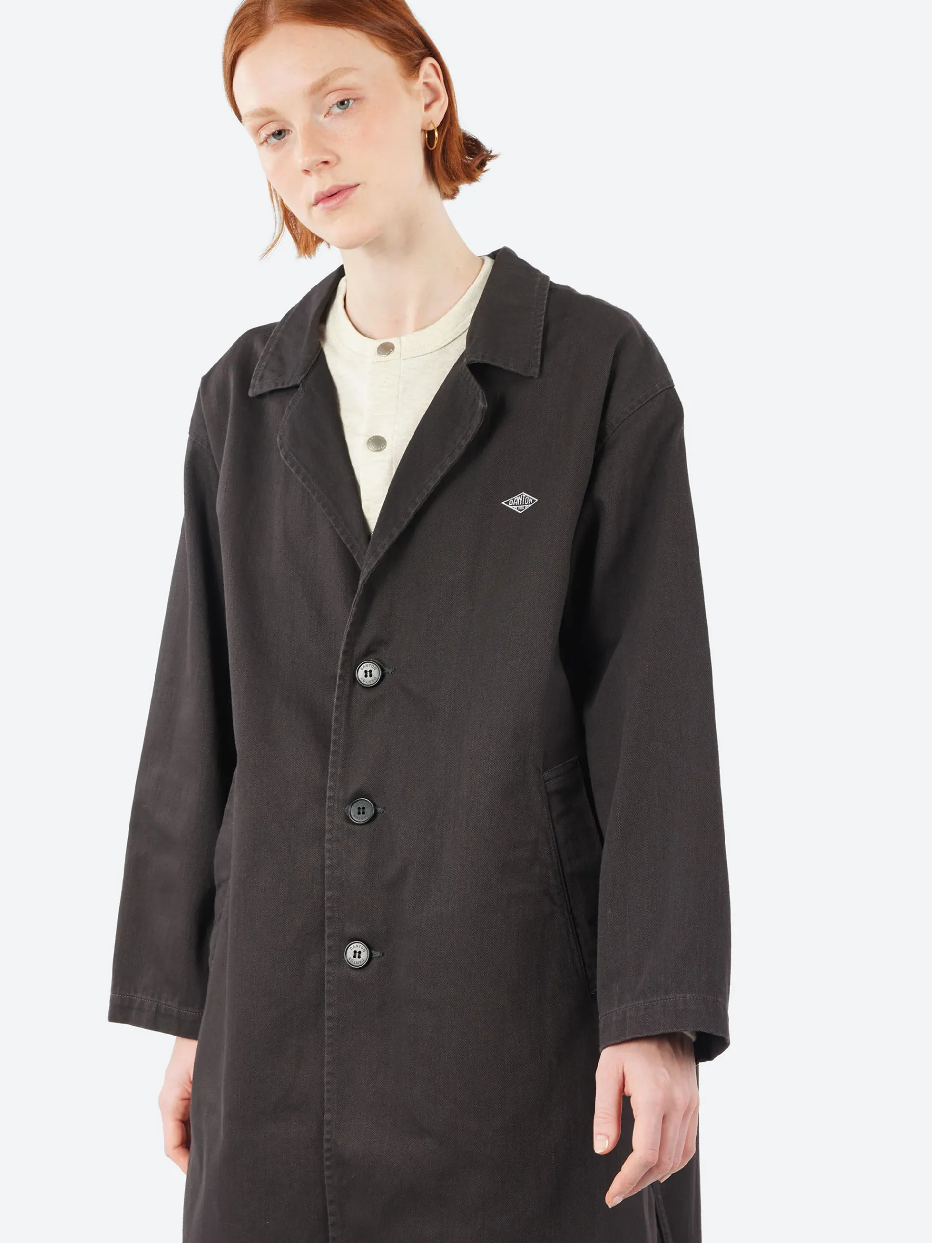 The Danton Women’s Shop Coat features a relaxed silhouette with a roomy fit. Crafted from Katsuragi fabric, known for its durable diagonal weave, it uses cotton slub yarn for a soft, natural texture. The coat offers an effortlessly comfortable feel and is finished with buttons engraved with the DANTON logo for a signature touch.