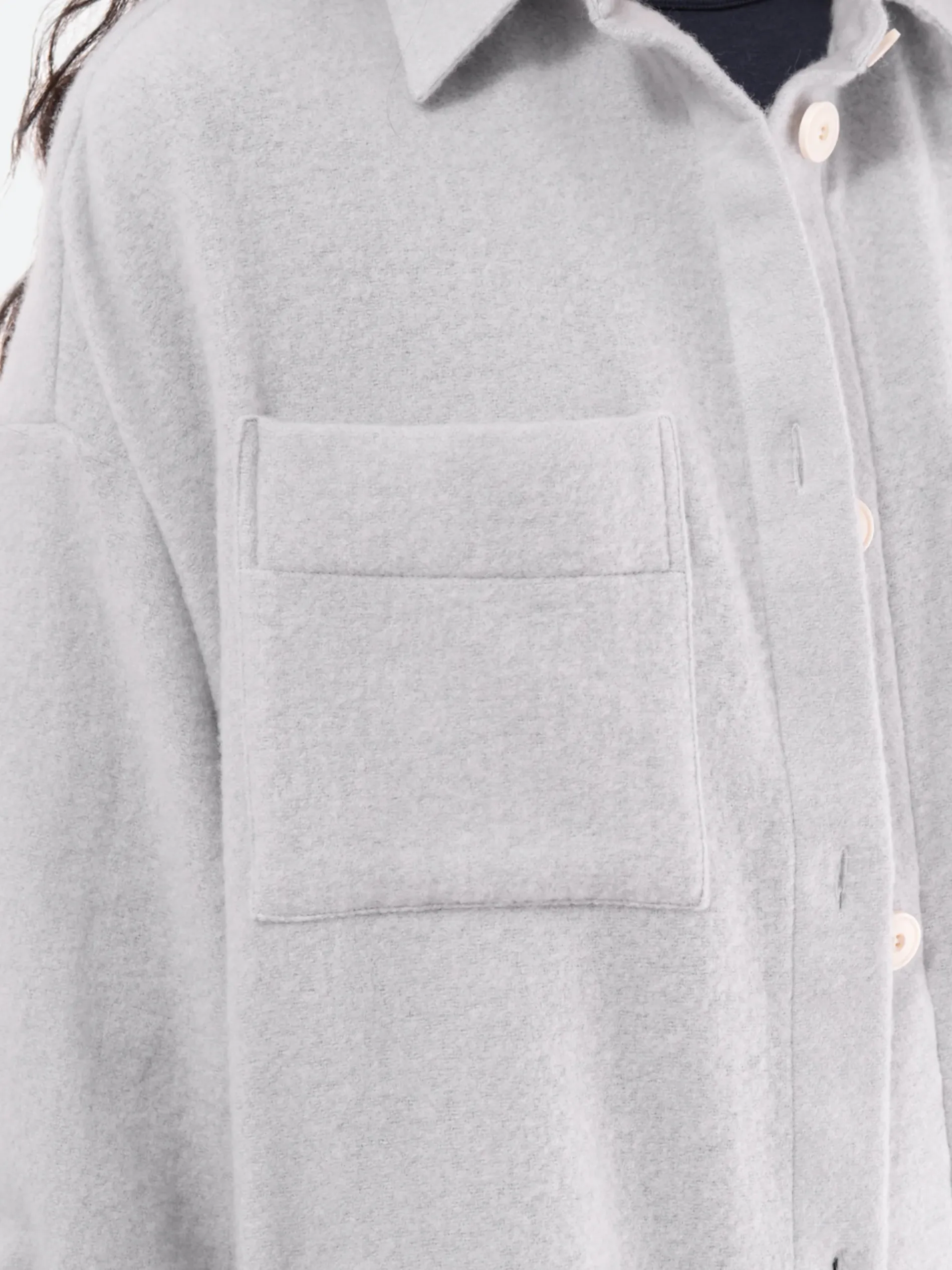 Shirt jacket cut with an oversized fit, slightly longer at the back. Made from a warm, sustainable cashmere and wool-blend fabric.