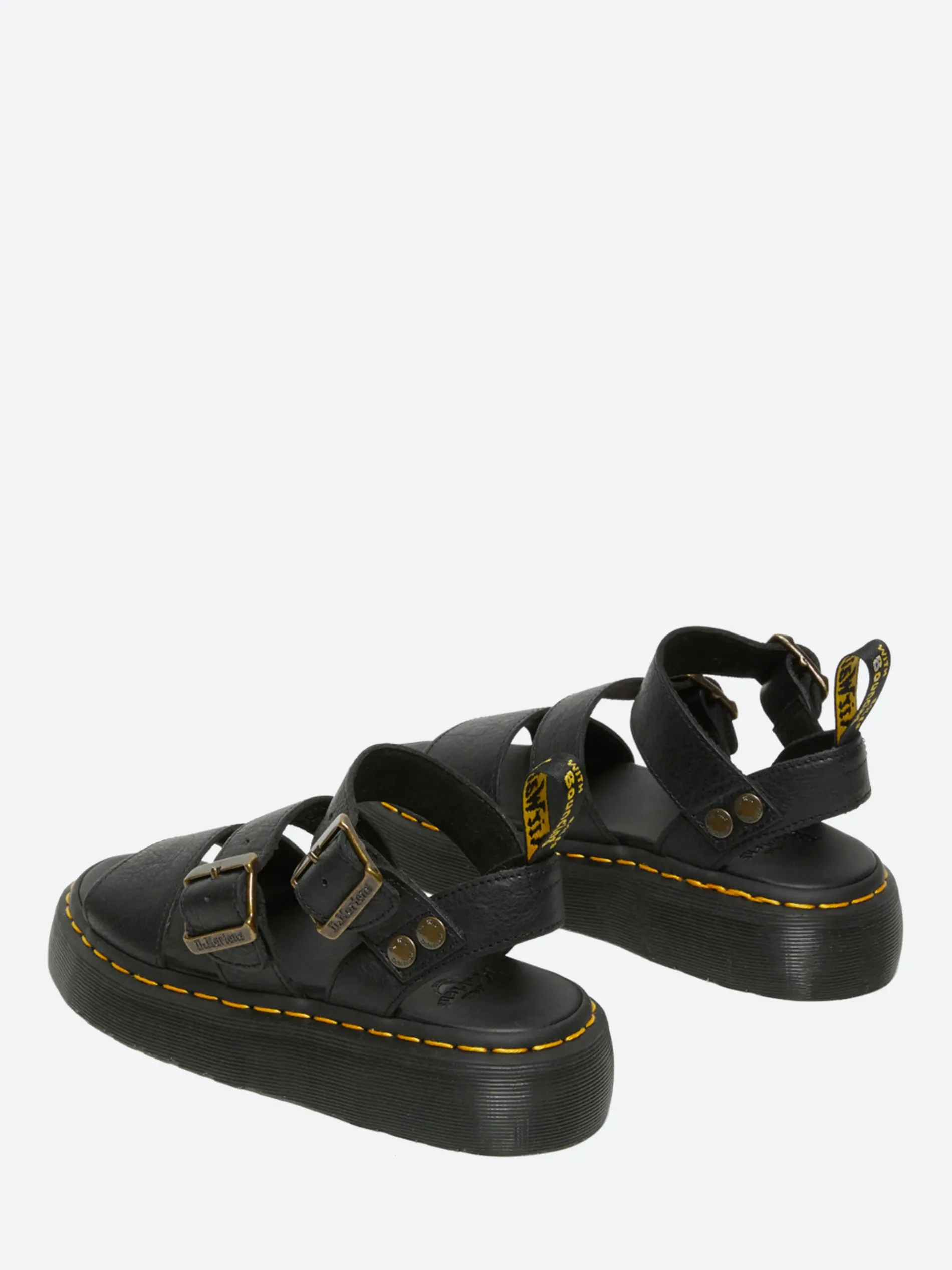 Now standing on a high-rise Quad sole, the Gryphon Quad is manufactured from soft Pisa leather with rugged brass hardware. Welted, well-engineered and packed with Docs DNA — the sandals are finished with yellow welt stitching and an AirWair heel loop.