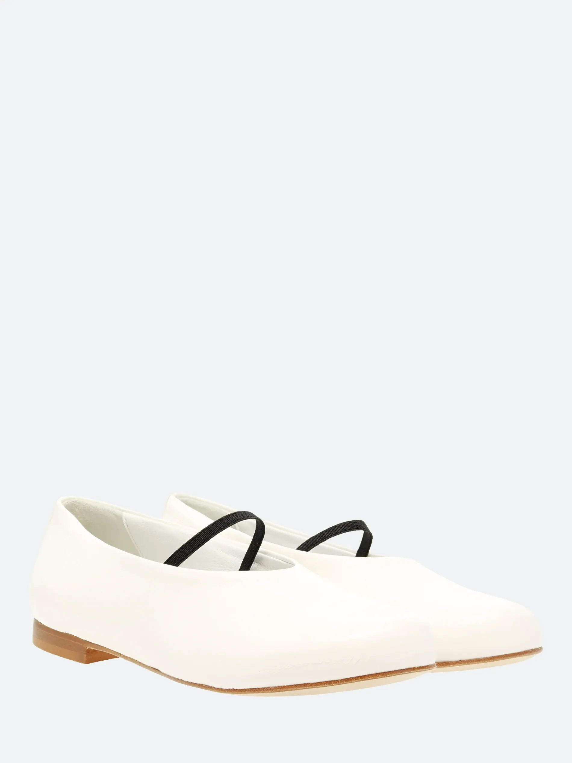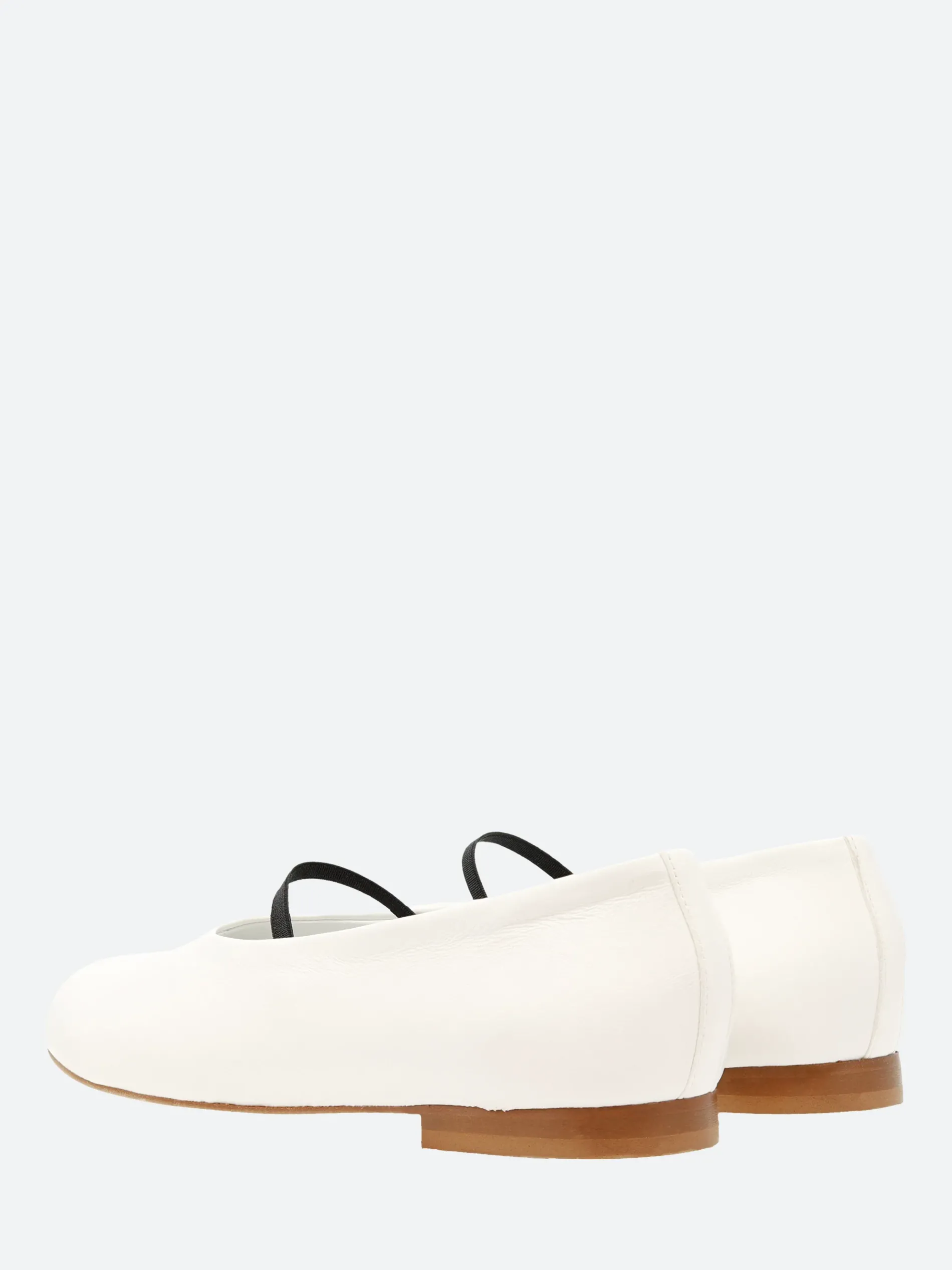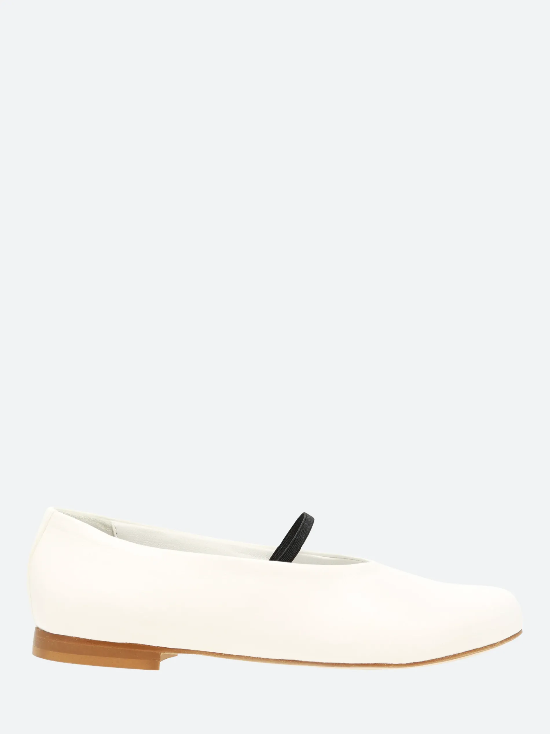 This leather ballet flat with an elastic strap is a comfortable, timeless choice that pairs perfectly with any outfit.