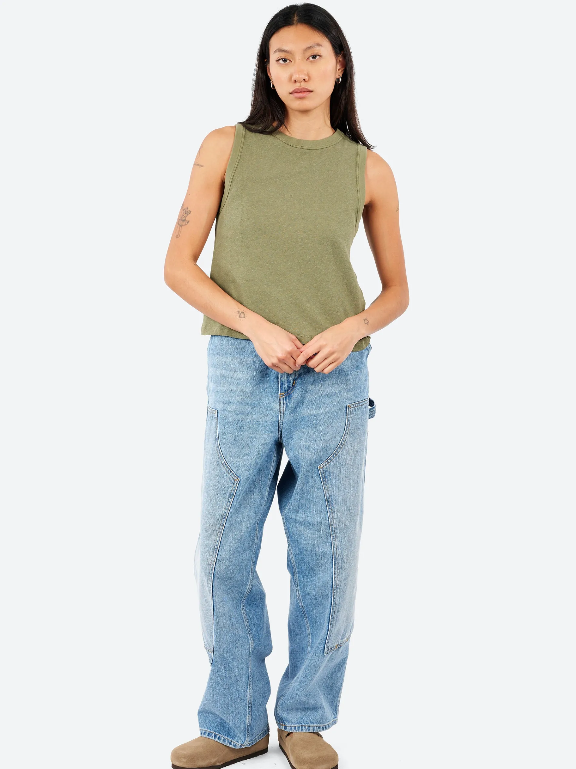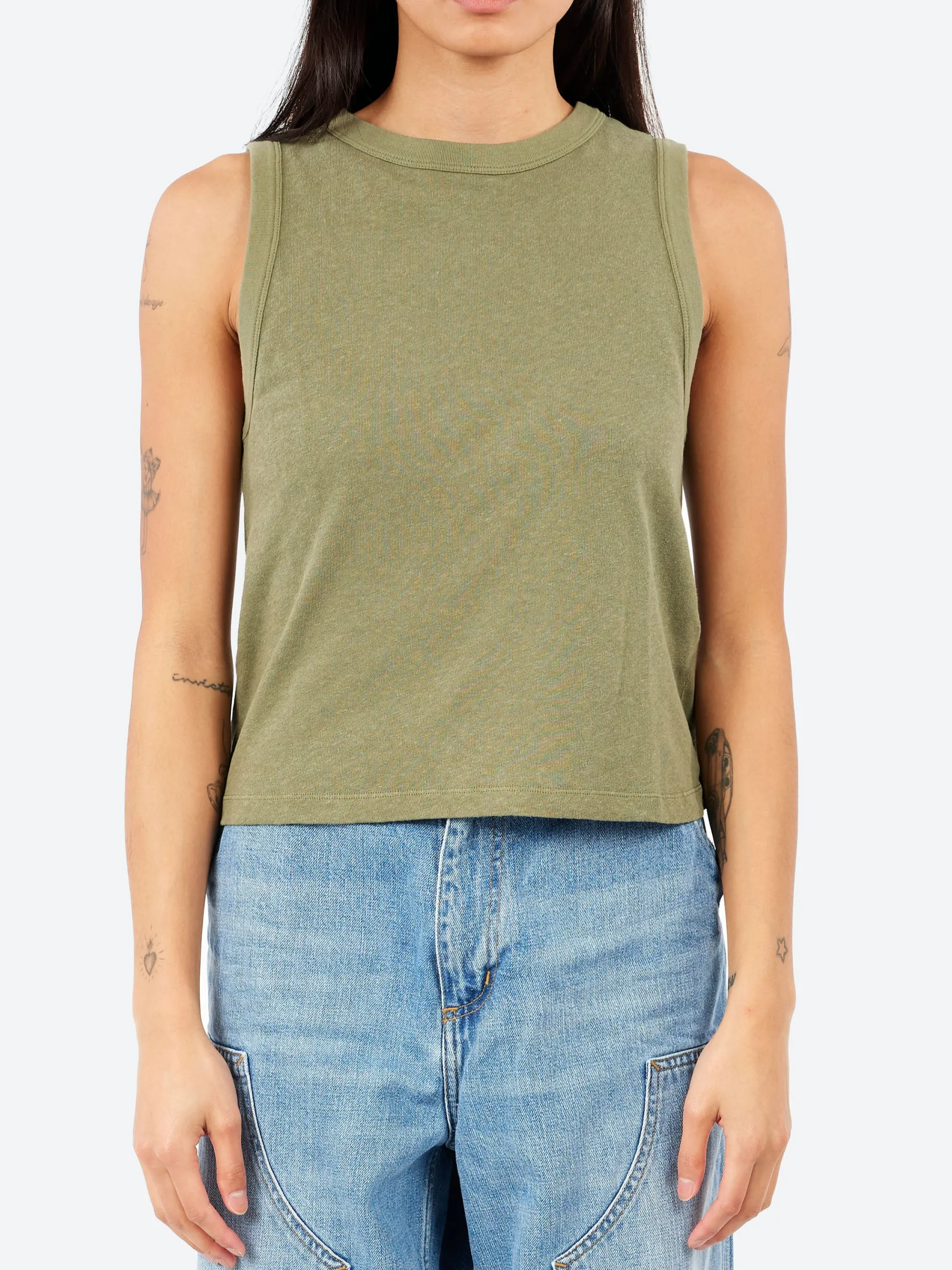 This sleeveless crewneck tank top will always come in handy, whether you’re combining it with denim, shorts or a skirt. Made from a season cotton hemp mélange.