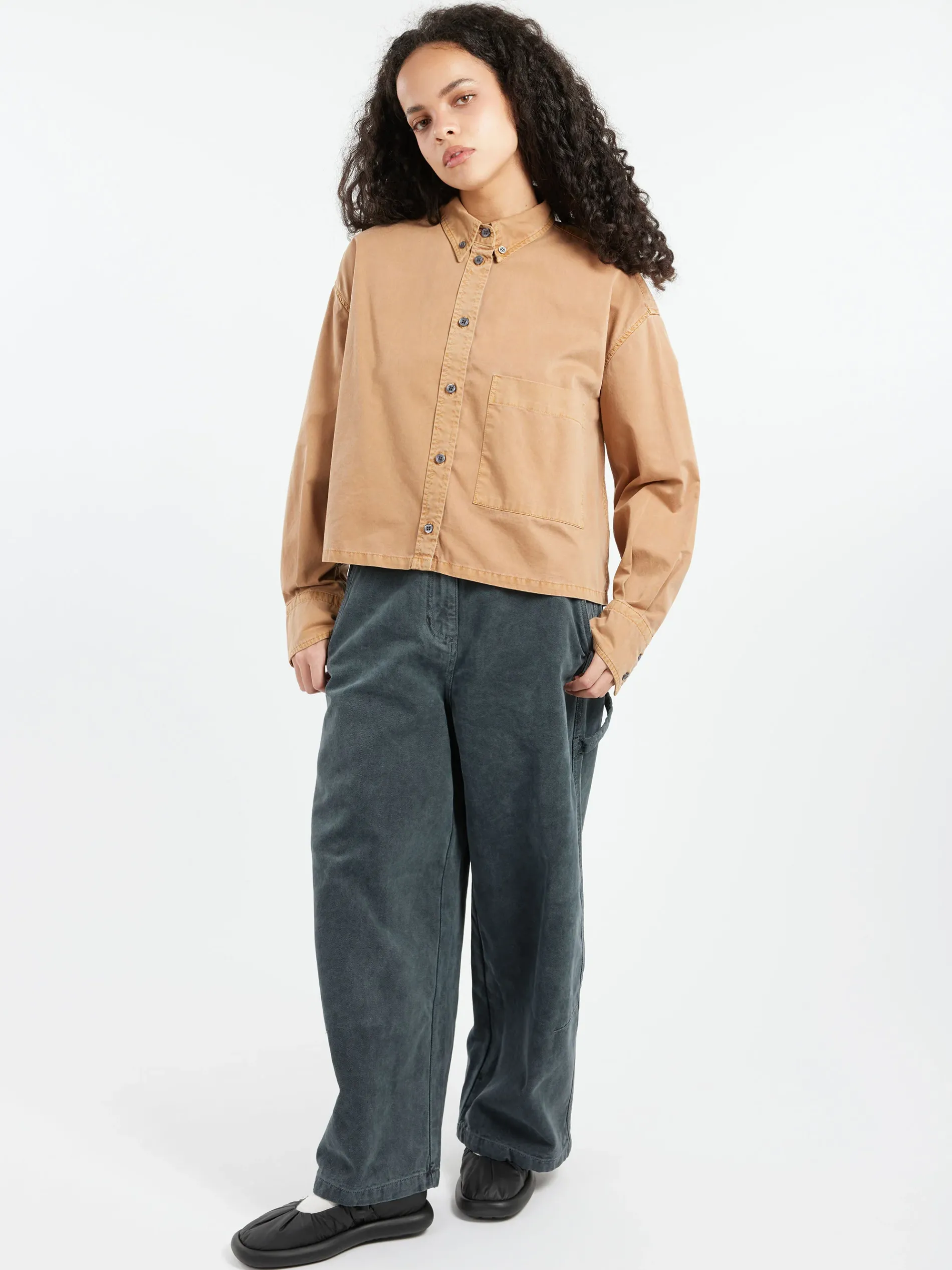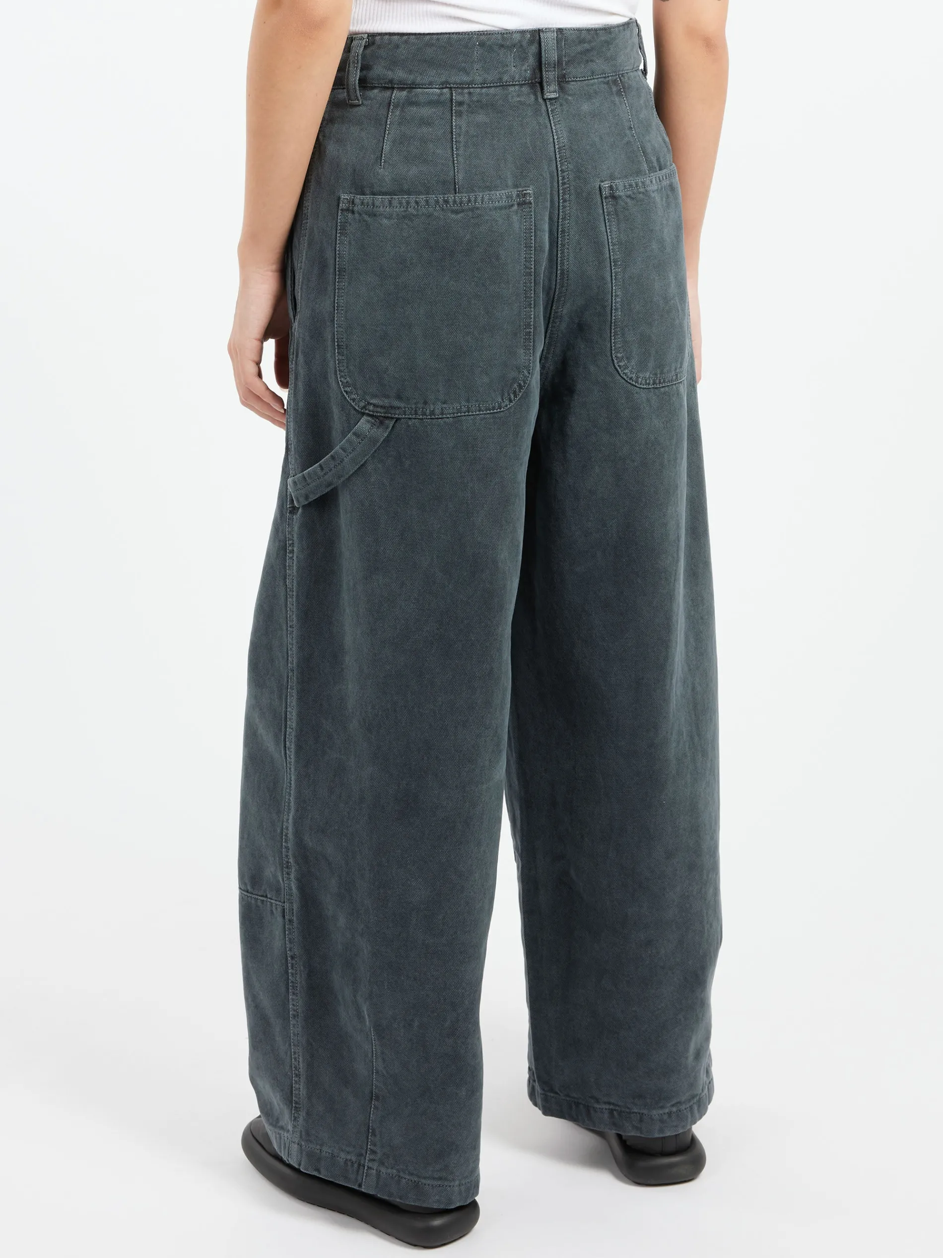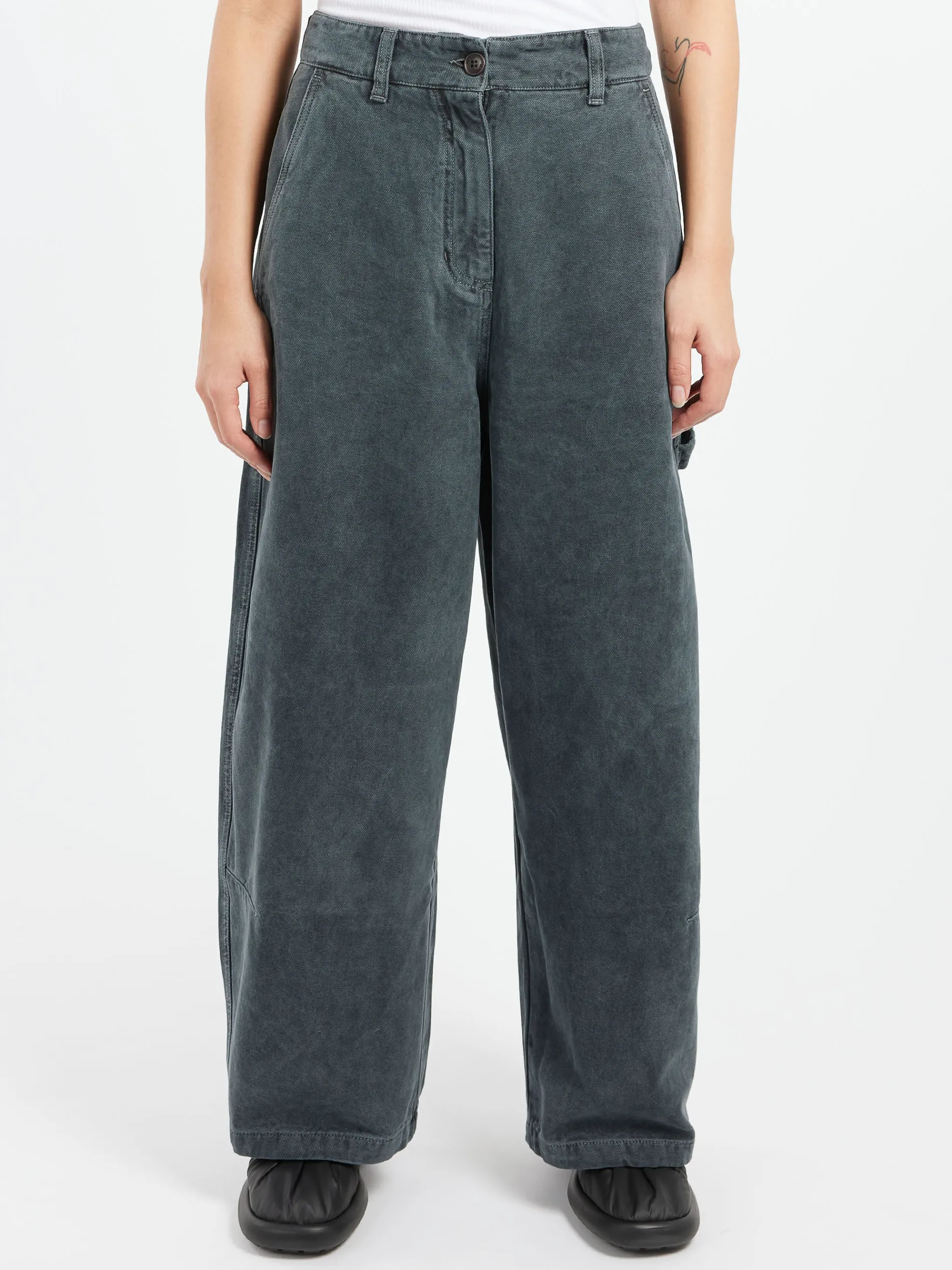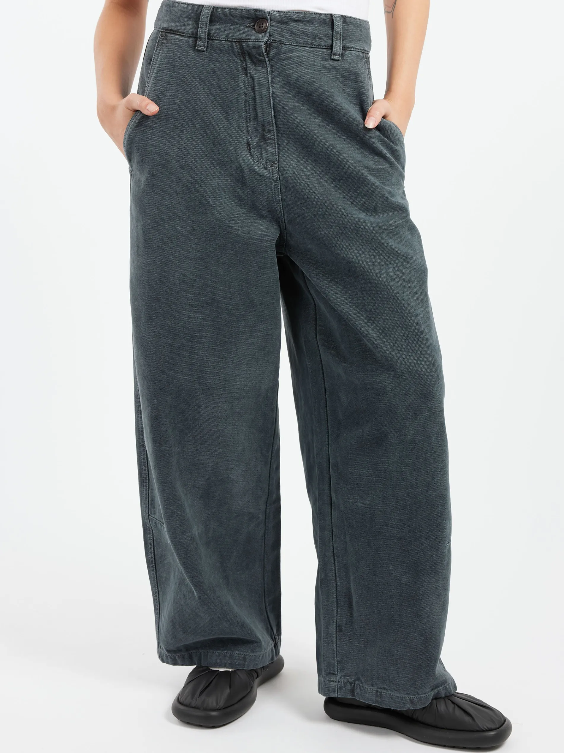 - Wide, straight leg
