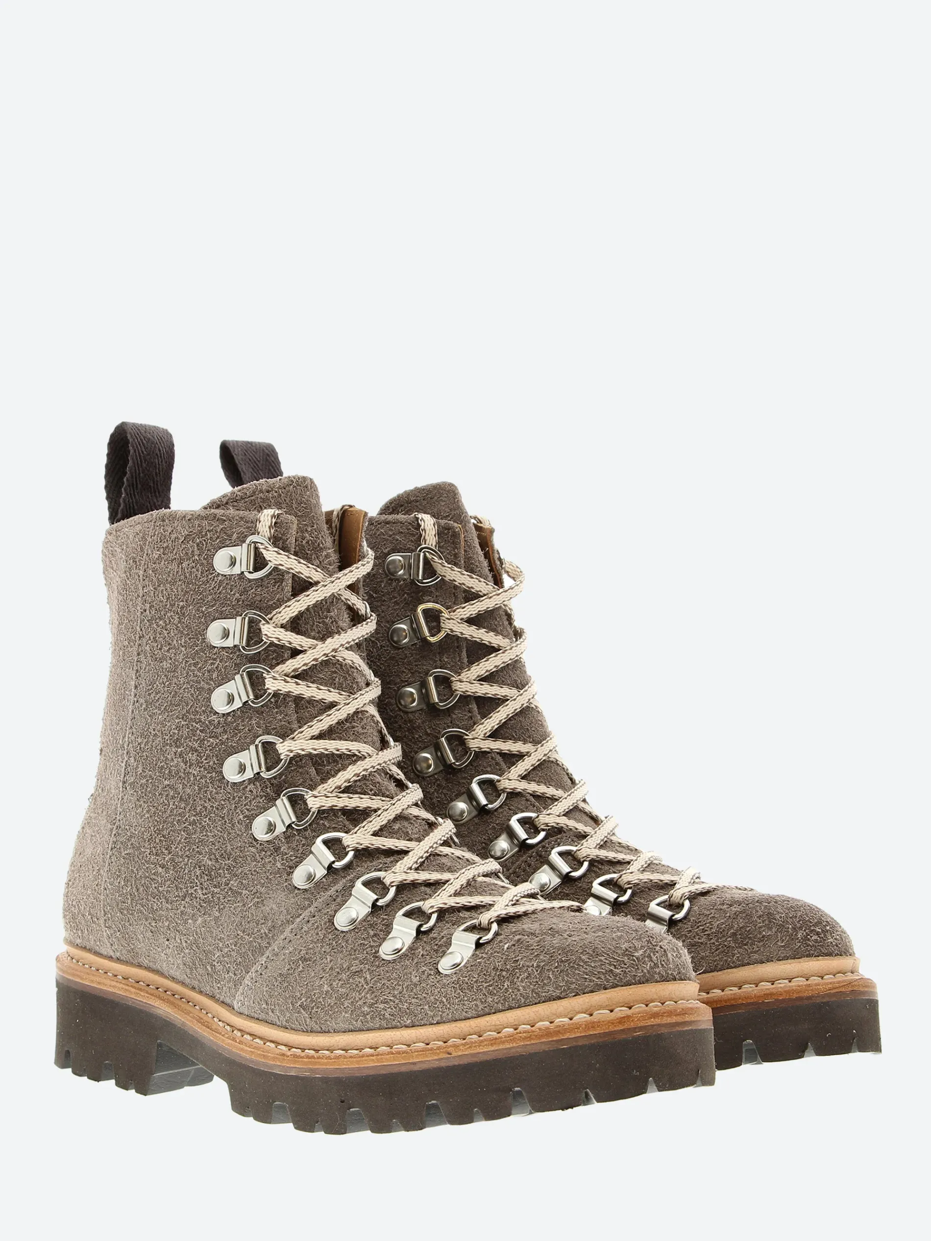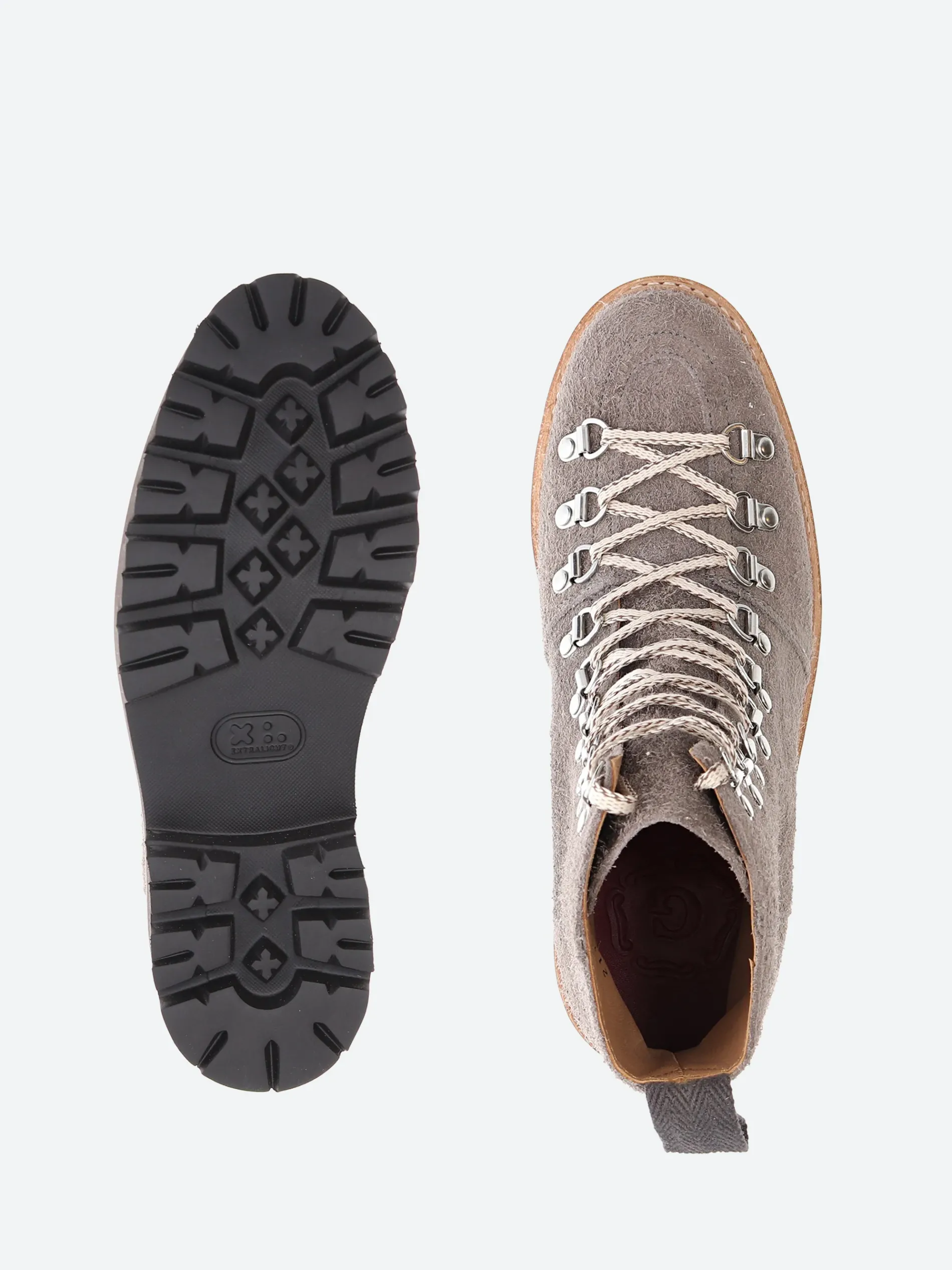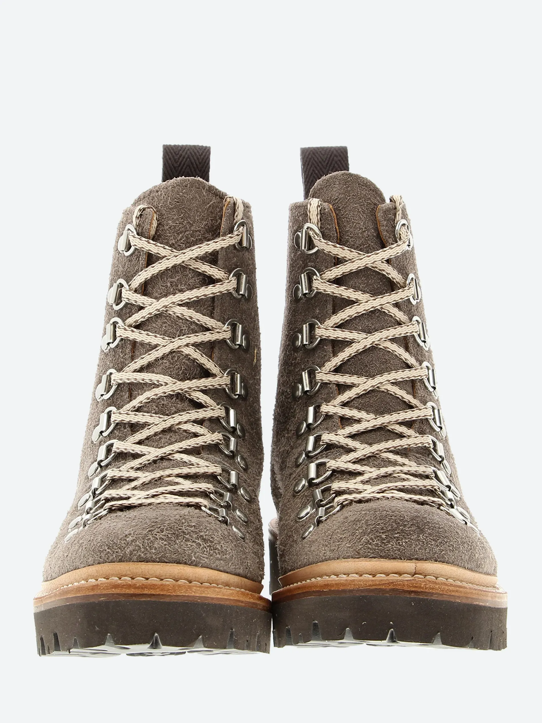 Grenson Nanette is a chunky, but lightweight and inspired by hiker boot styling with striking cross over lacing. Made in maple suede with natural split welt and chunky commando sole.