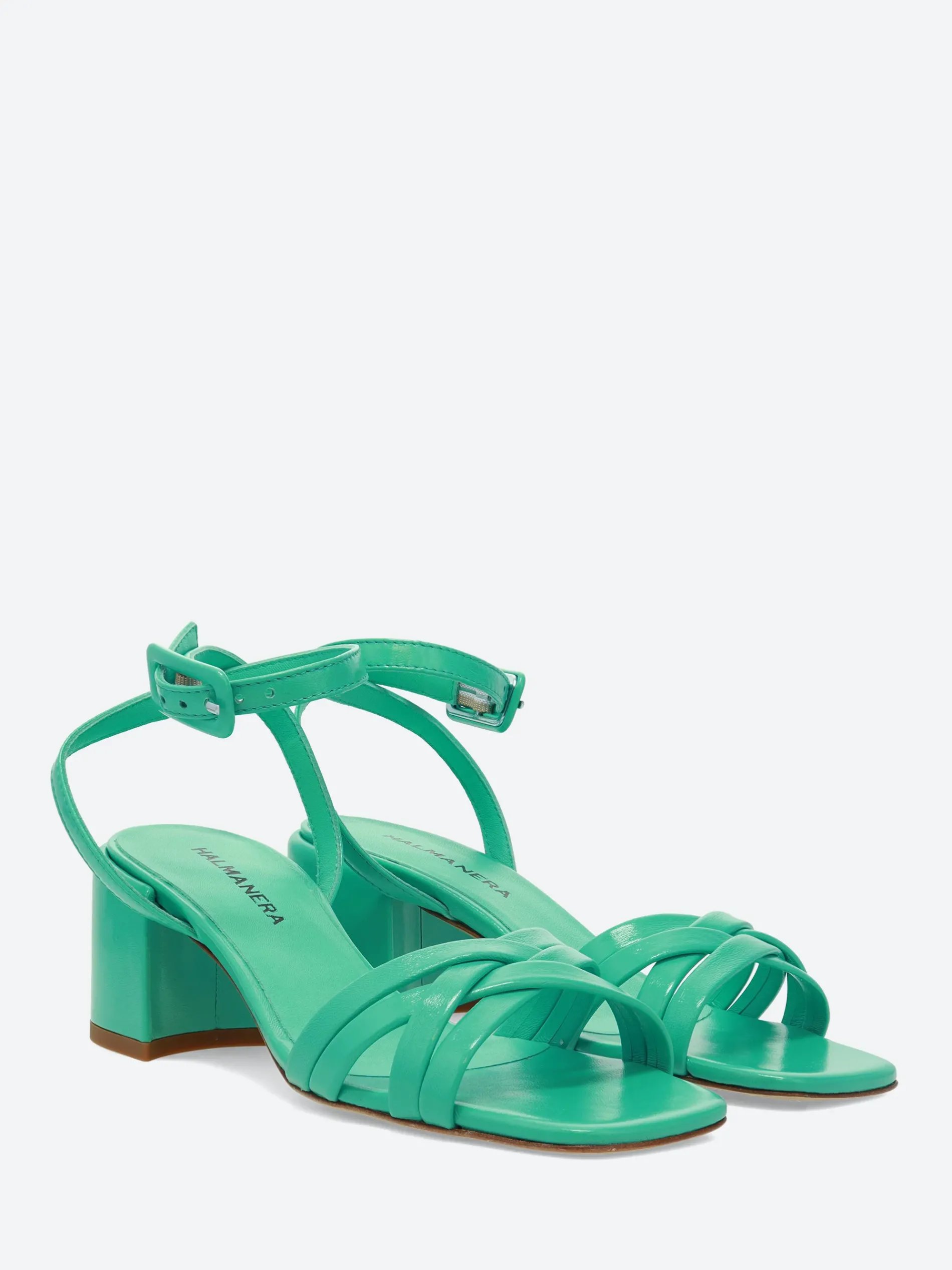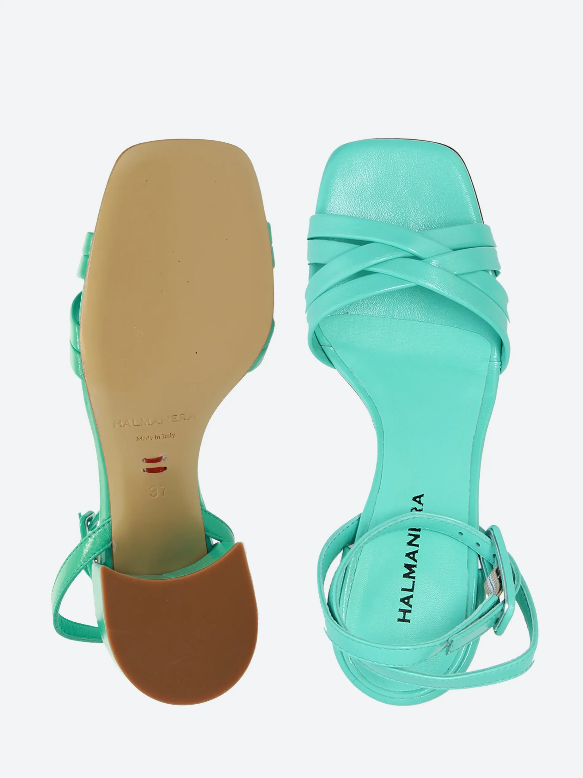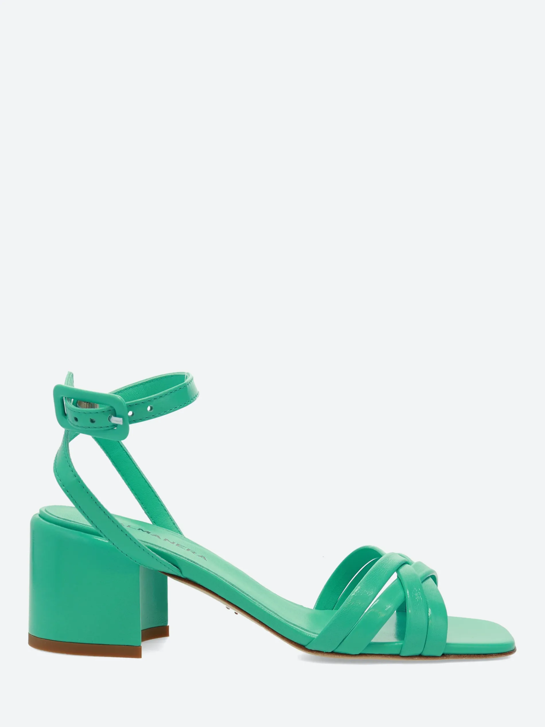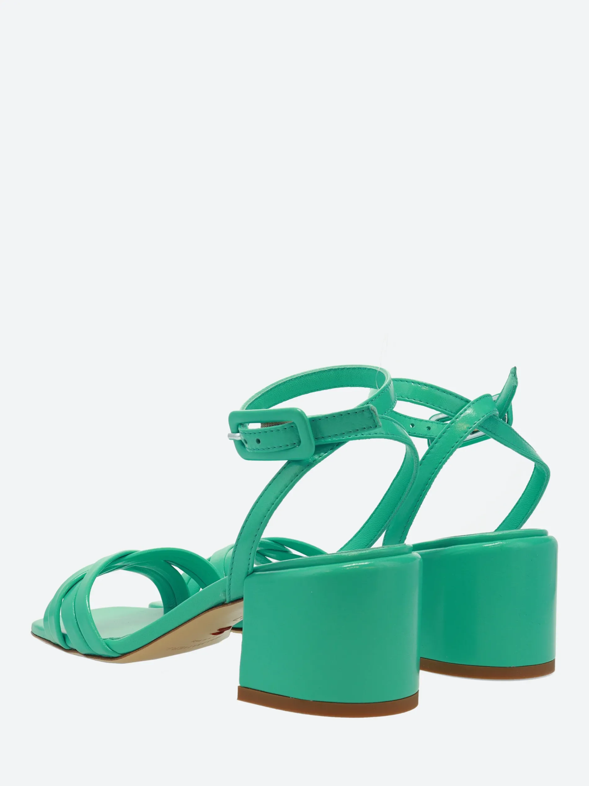 Crafted with a block heel and subtle square toe, this sandal features slender straps for an elegant silhouette.