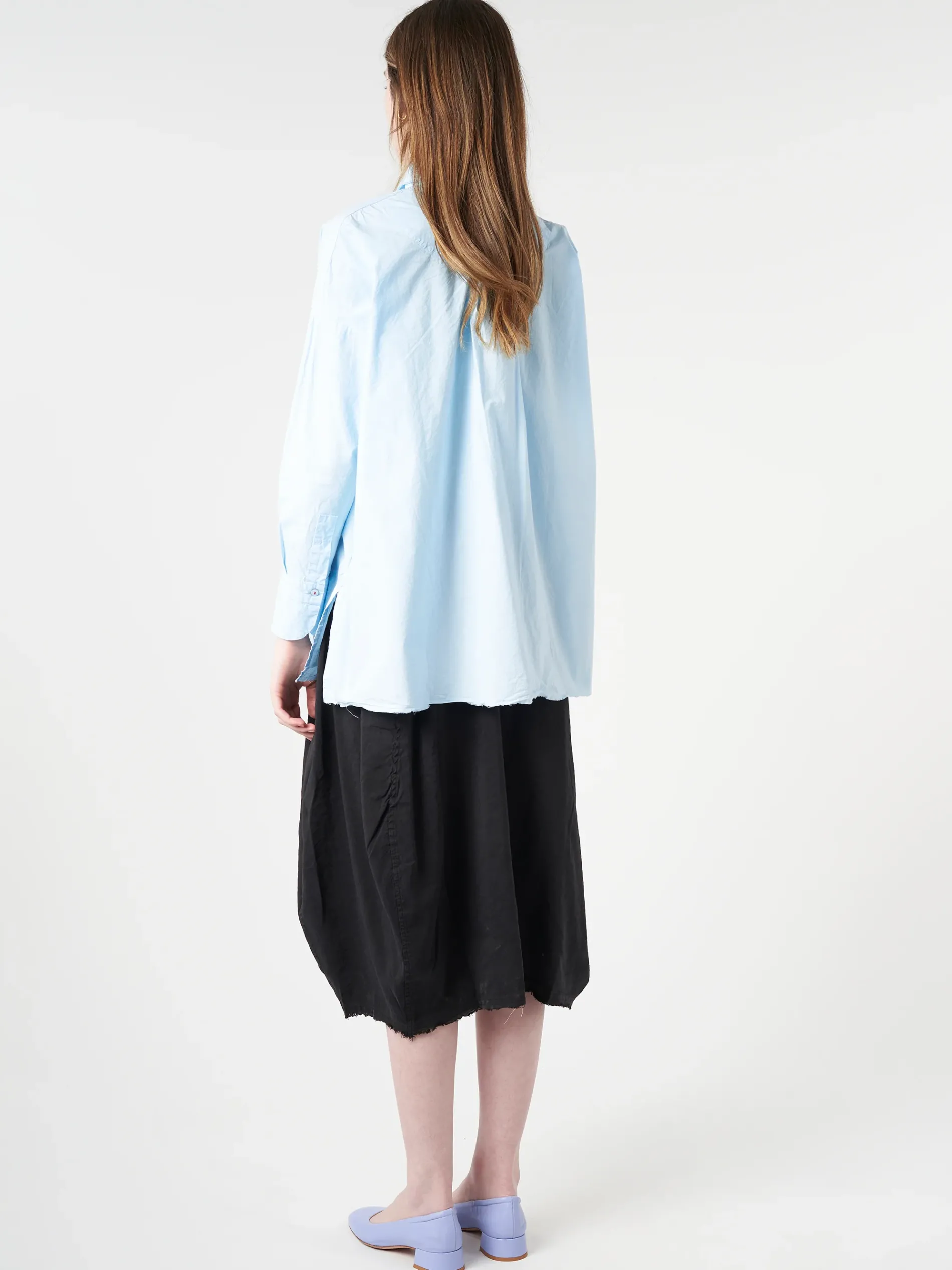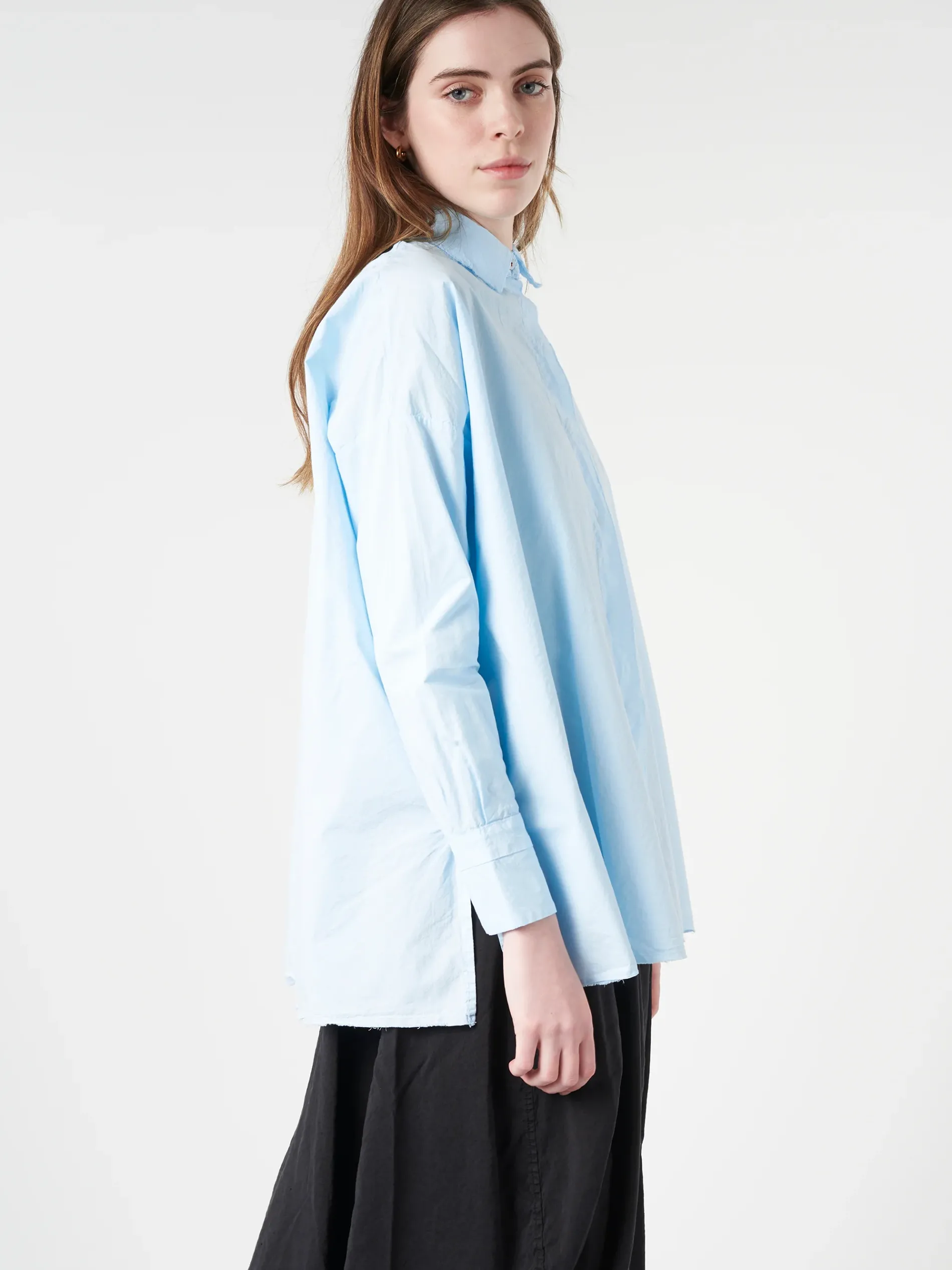 An oversized shirt from Hannoh Wessel made from a crisp poplin cotton. Side vents for various styling options.