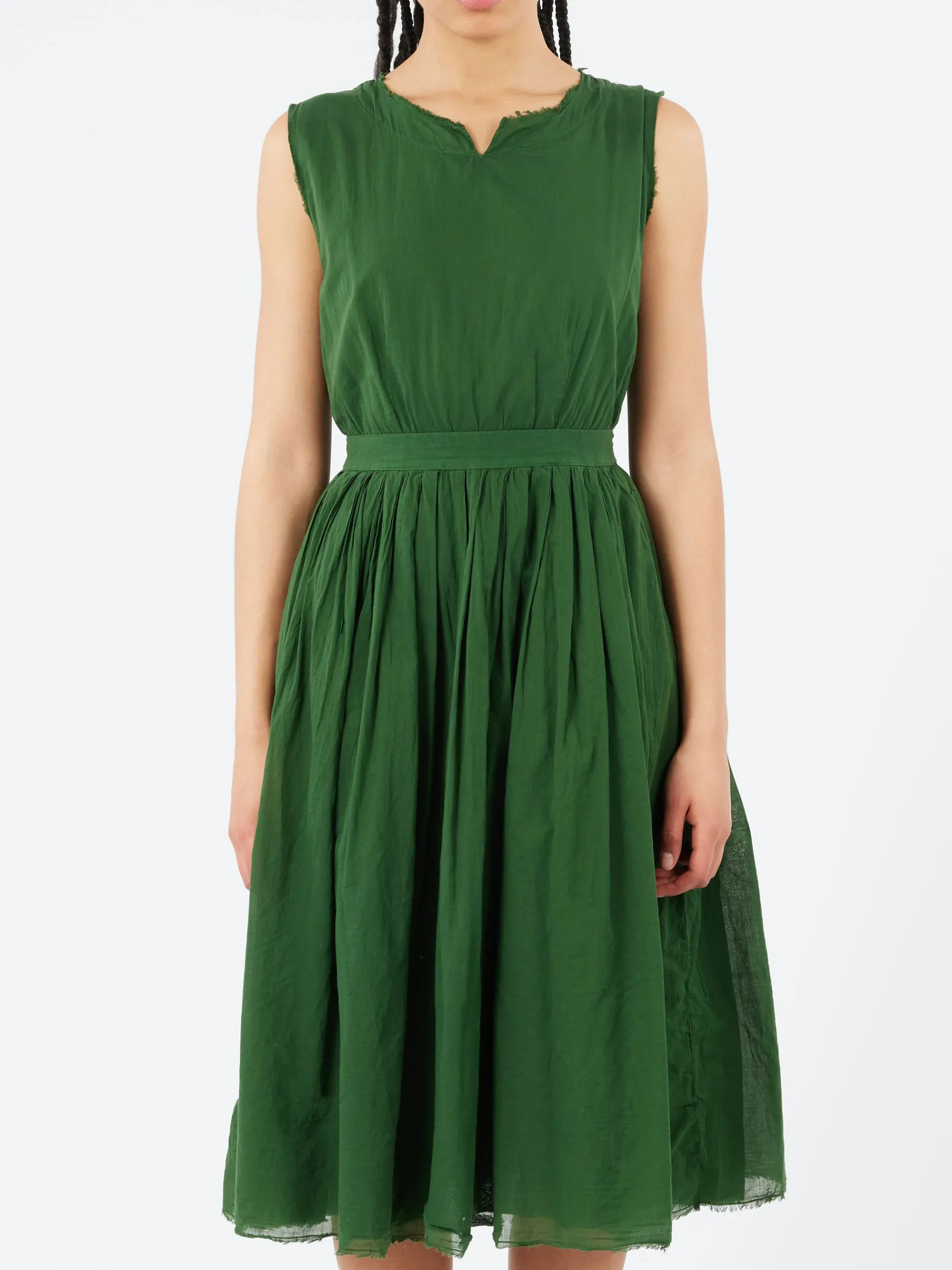 The Hannoh Wessel Darnette is a cotton sleeveless dress featuring a pleated skirt for a flowy, elegant look. It includes side pockets for practicality and a concealed zipper closure for a sleek, seamless finish. Perfect for a refined yet comfortable style.