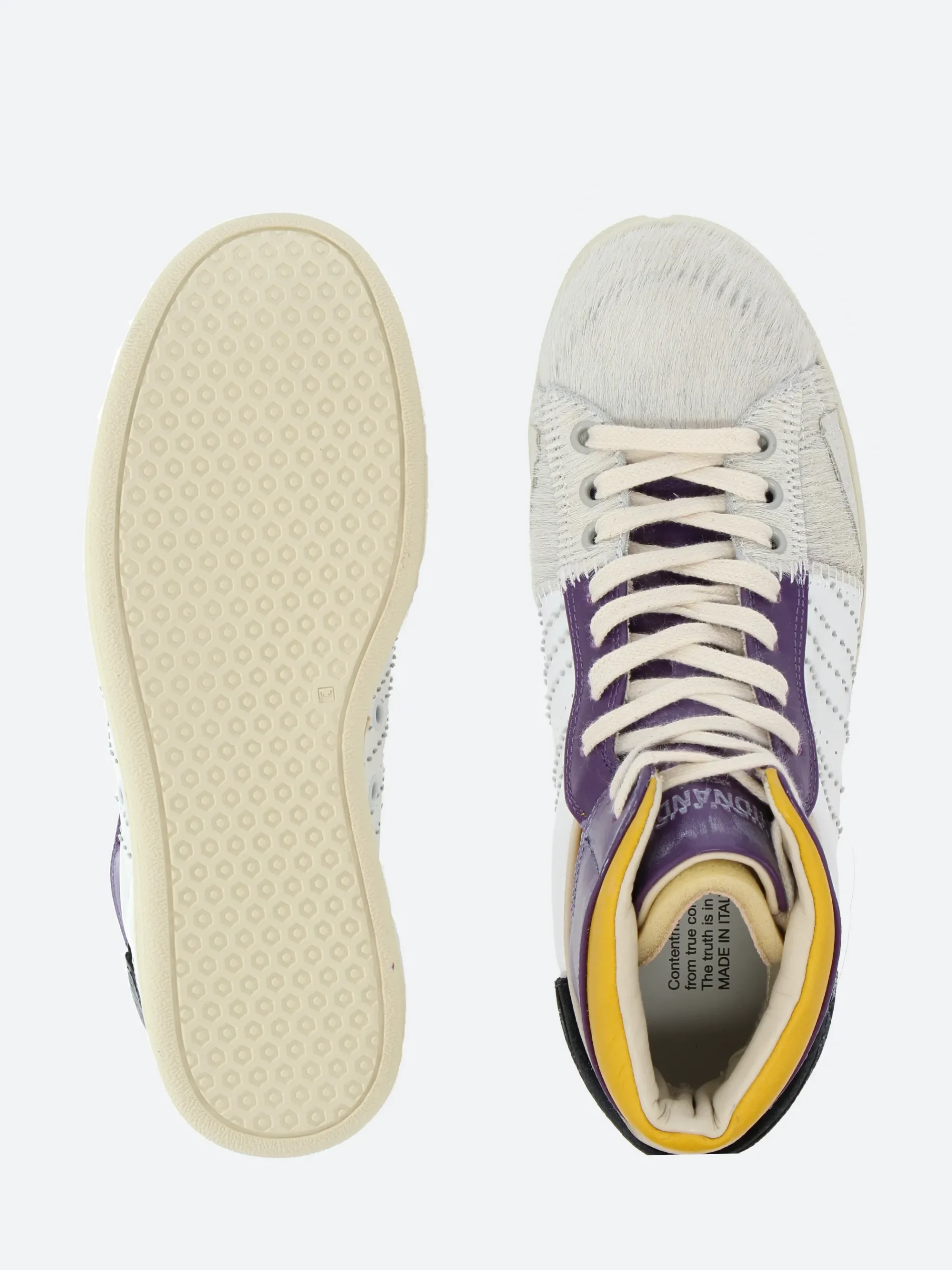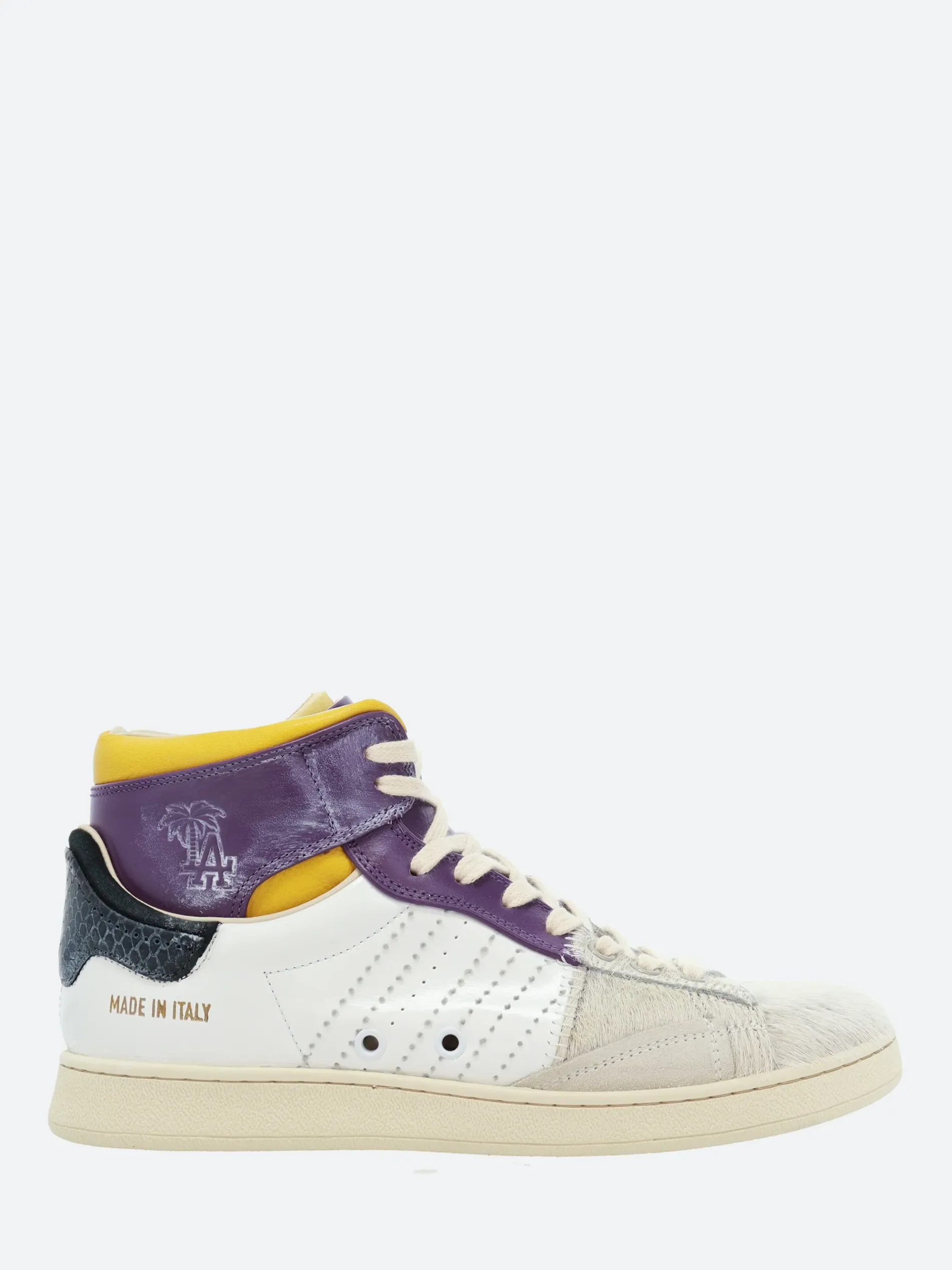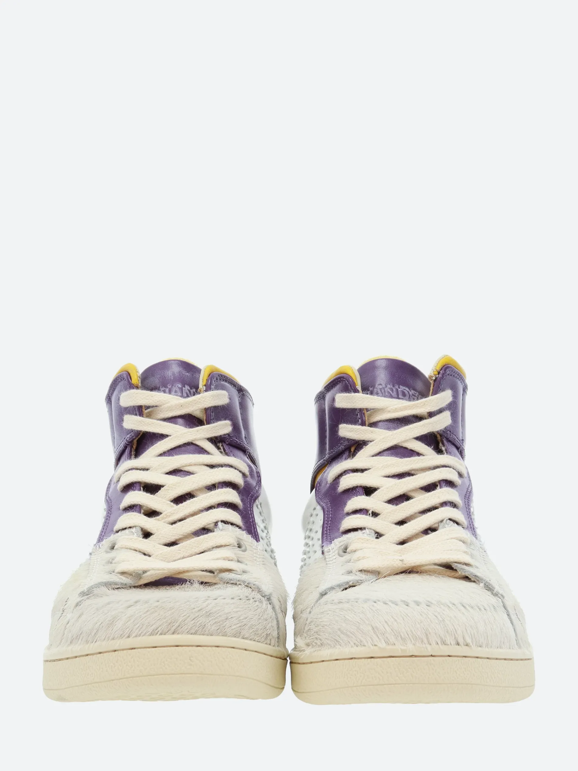 The mash-up of tennis and basketball creates Hidn-ander’s Italian-made hi-top, The Cage. The tennis shoe base is fused with a basketball-inspired collar that encases the ankle. Named for the inner city basketball courts that pepper the USA, from New York to Chicago to Los Angeles.