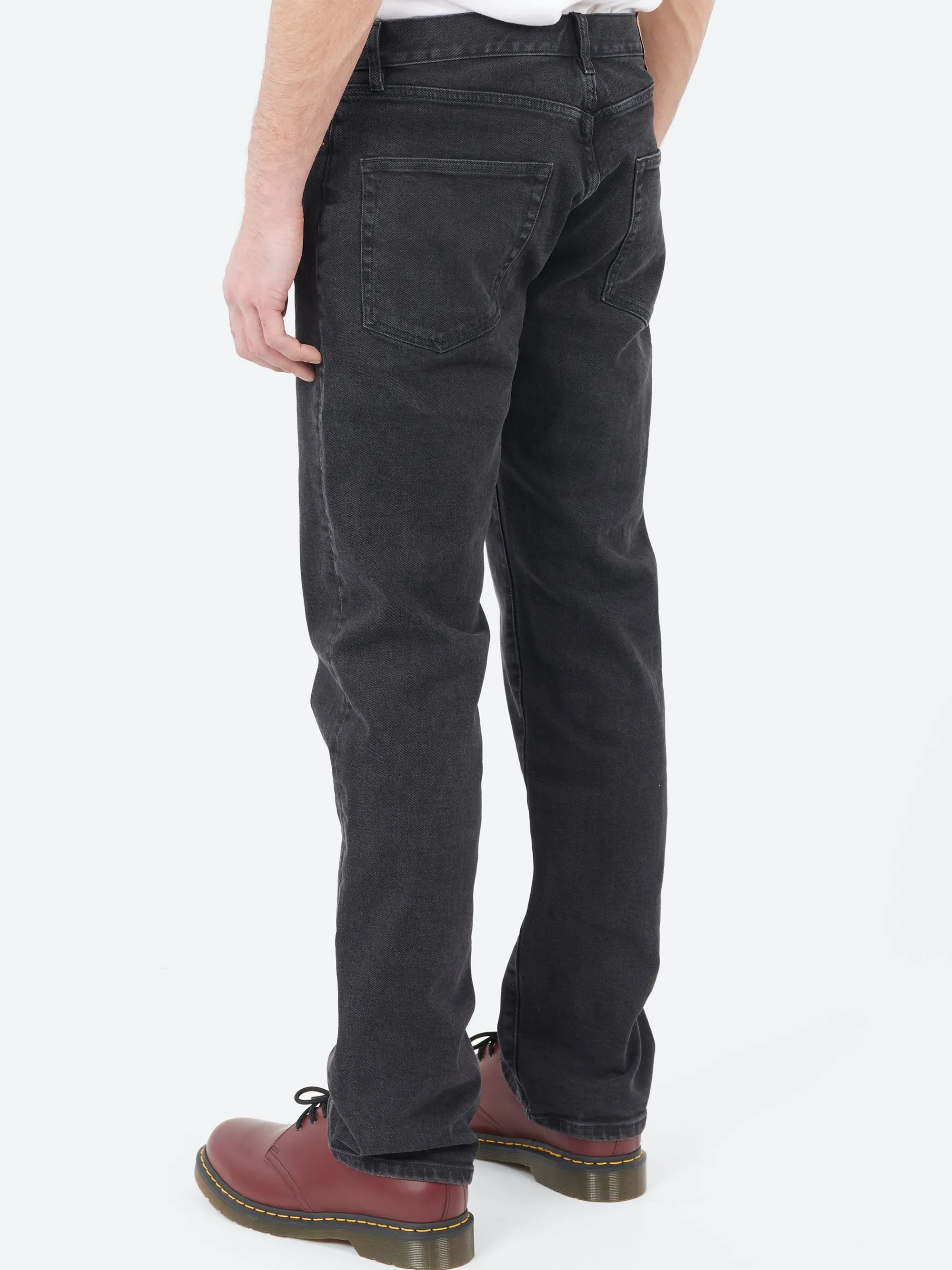 Jeanerica CM002 is the classic no fuzz straight, relaxed fit. Features a mid-rise, loose thigh and straight leg from the knee. Made in gently faded black organic denim, combining the robust texture of classic jeans with a hint of stretch.