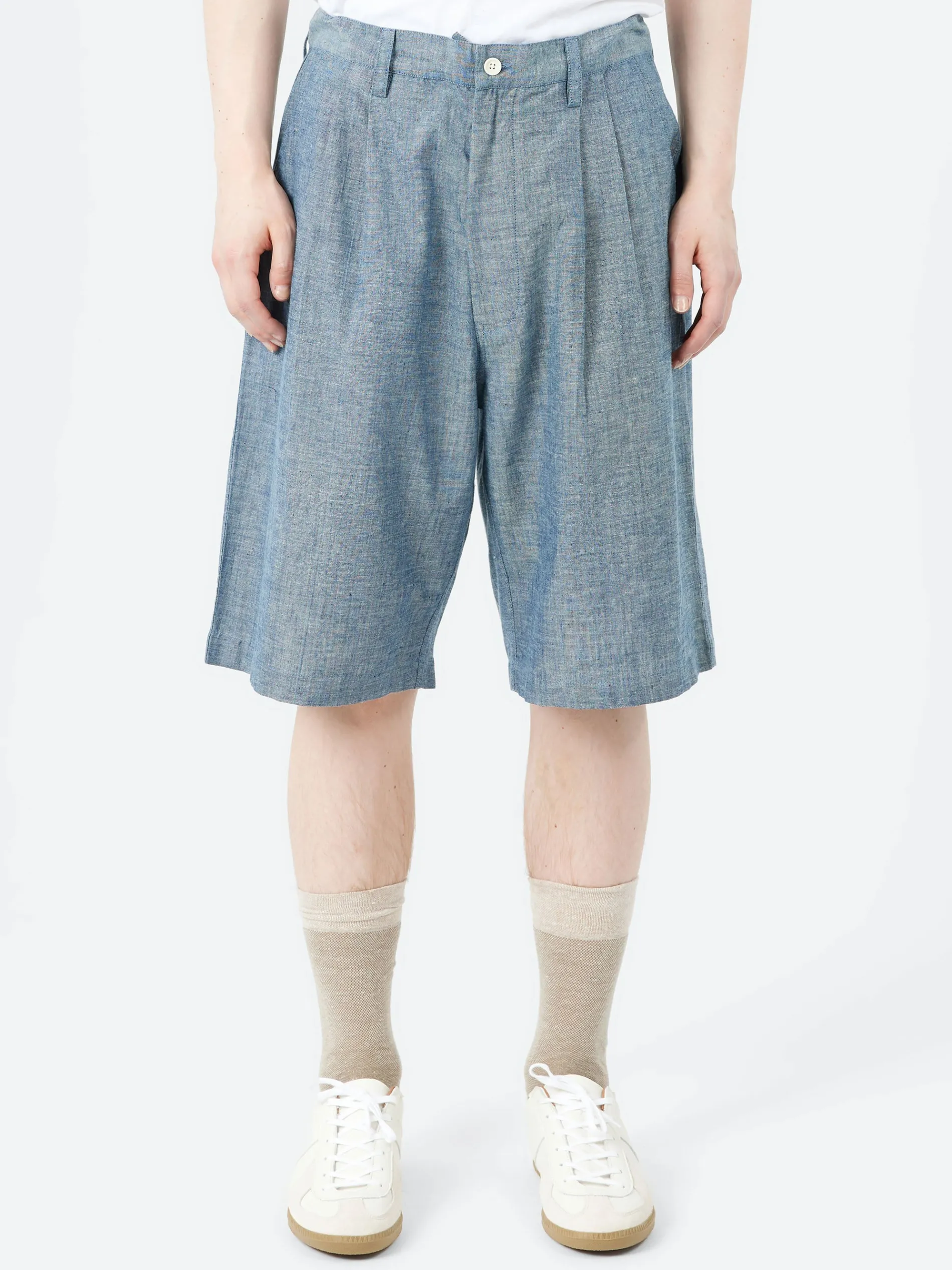The Kardo Armaan is an oversized pair of pleated shorts crafted from 100% handloom cotton. This khadi was woven by Udyog Bharti, a handloom weaving collective that supports over 2000 families in sustainable textile production.
